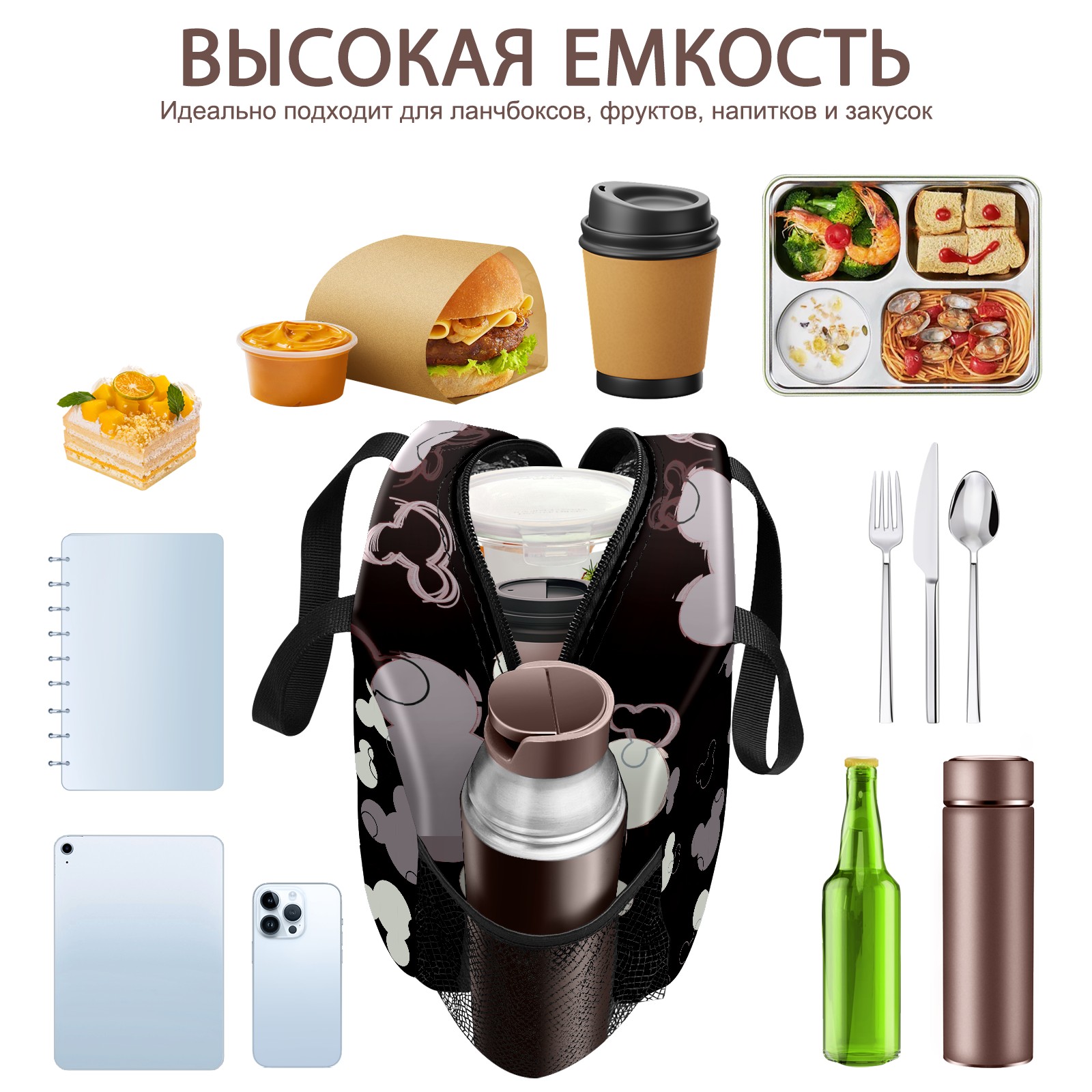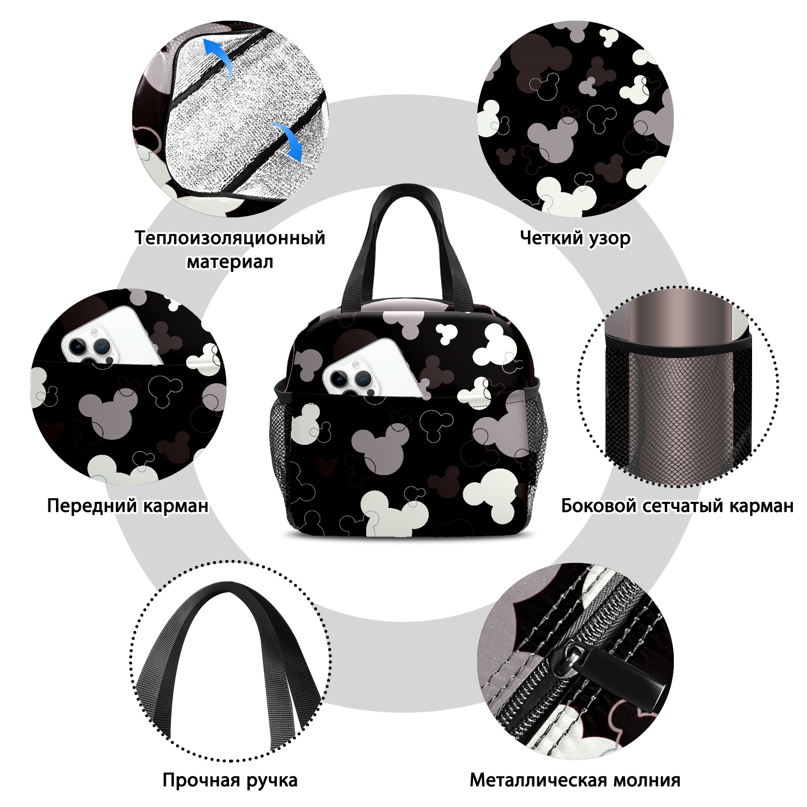 Lunch Bag,Lunch Box for Women Men,Mouse Reusable Insulated Lunch Tote,Small Leakproof Cute Lunch Cooler with High Capacity for Work,Picnic,Camping