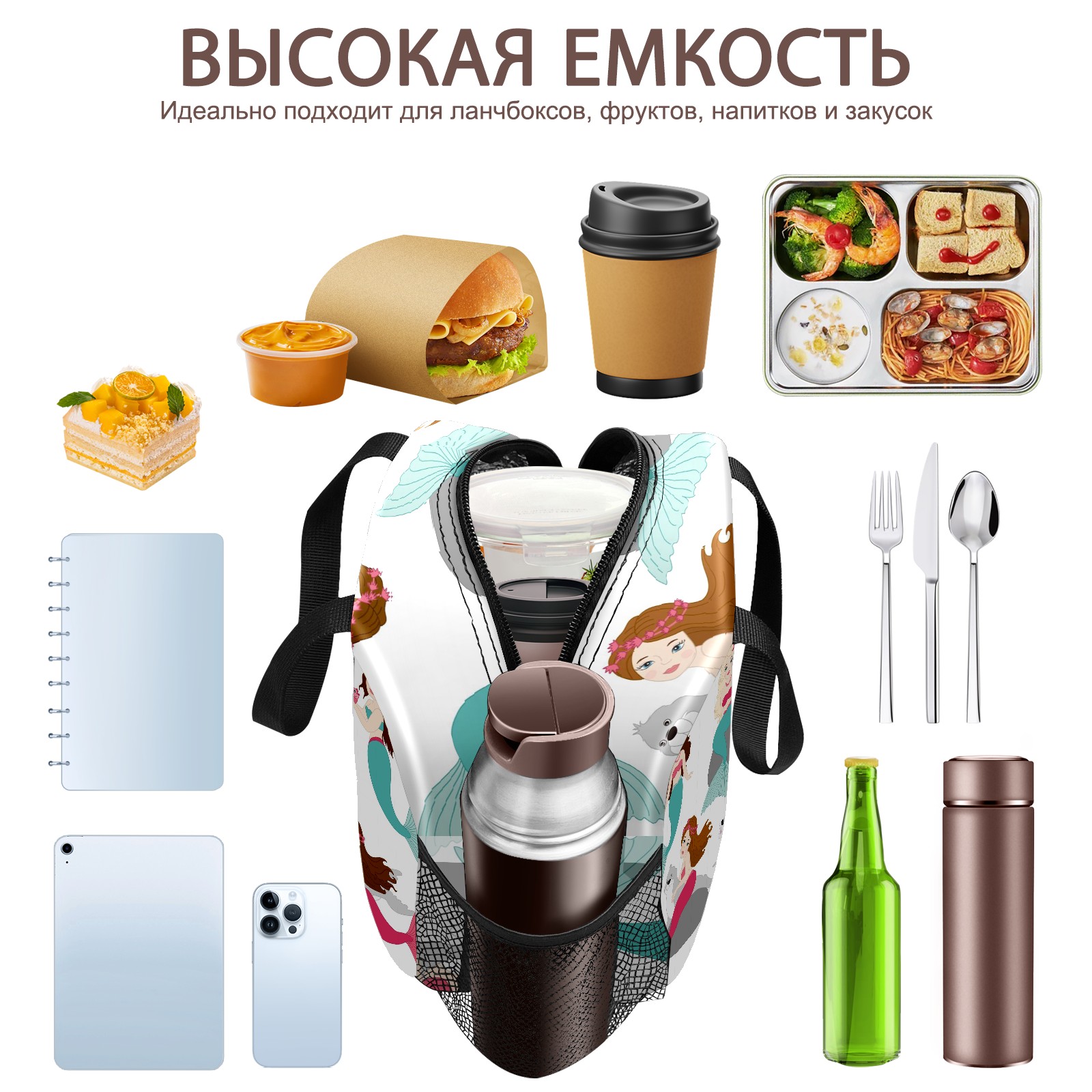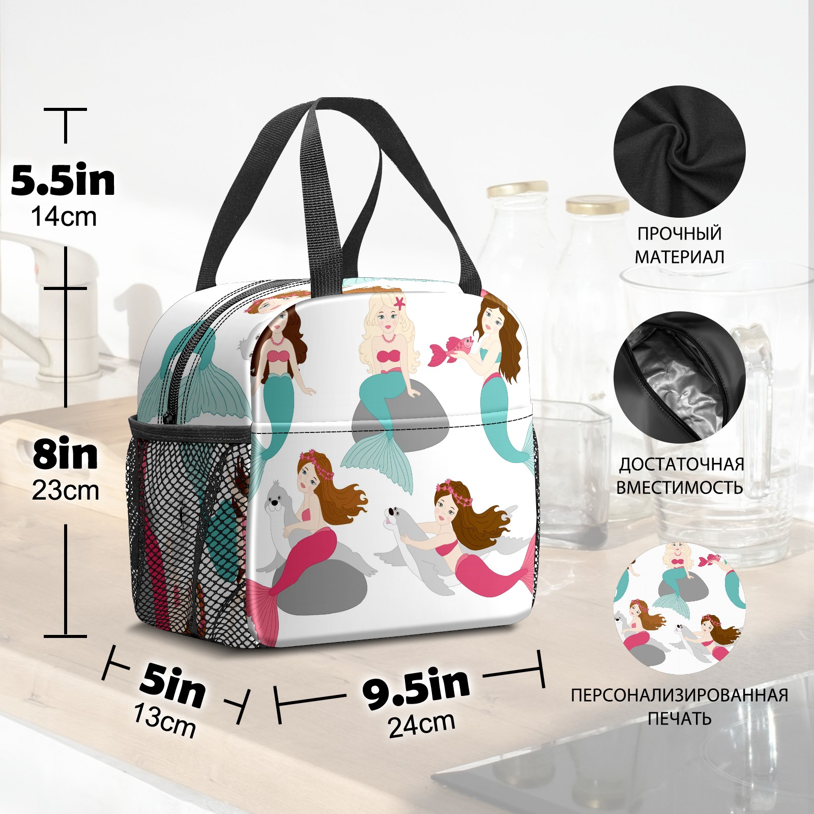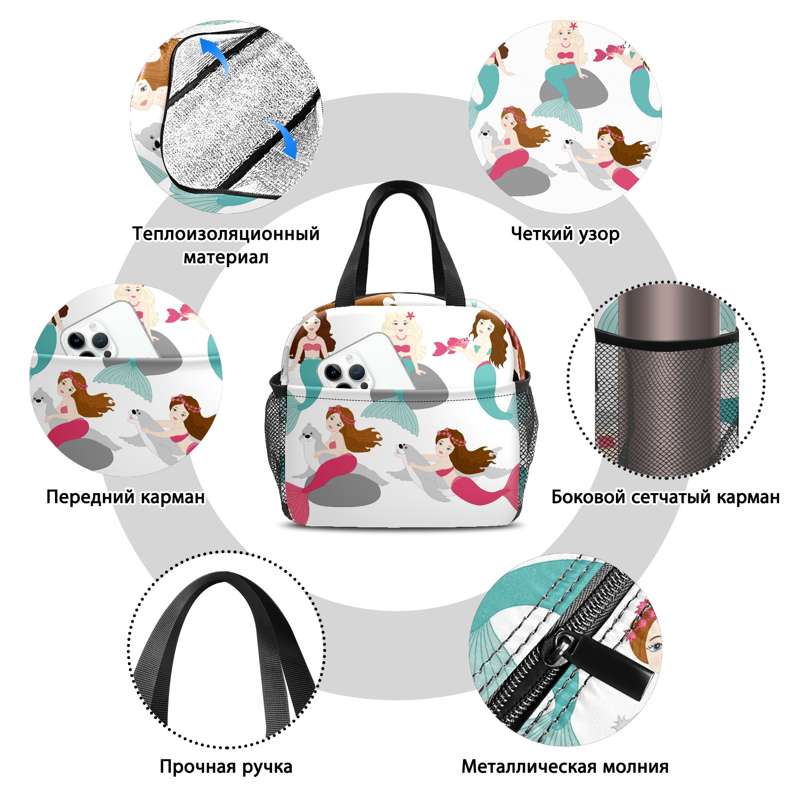 Lunch Bag,Lunch Box for Women Men,Five Mermaids Reusable Insulated Lunch Tote,Small Leakproof Cute Lunch Cooler with High Capacity for Work,Picnic,Camping