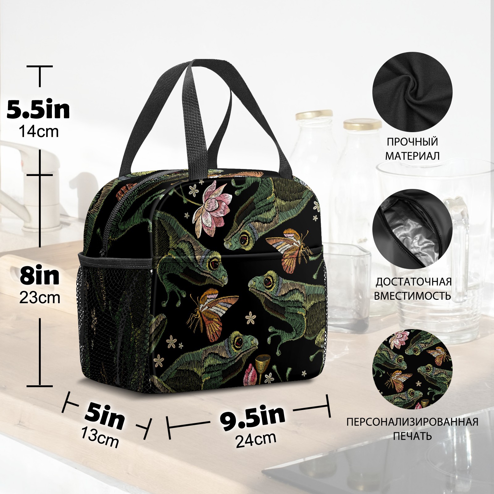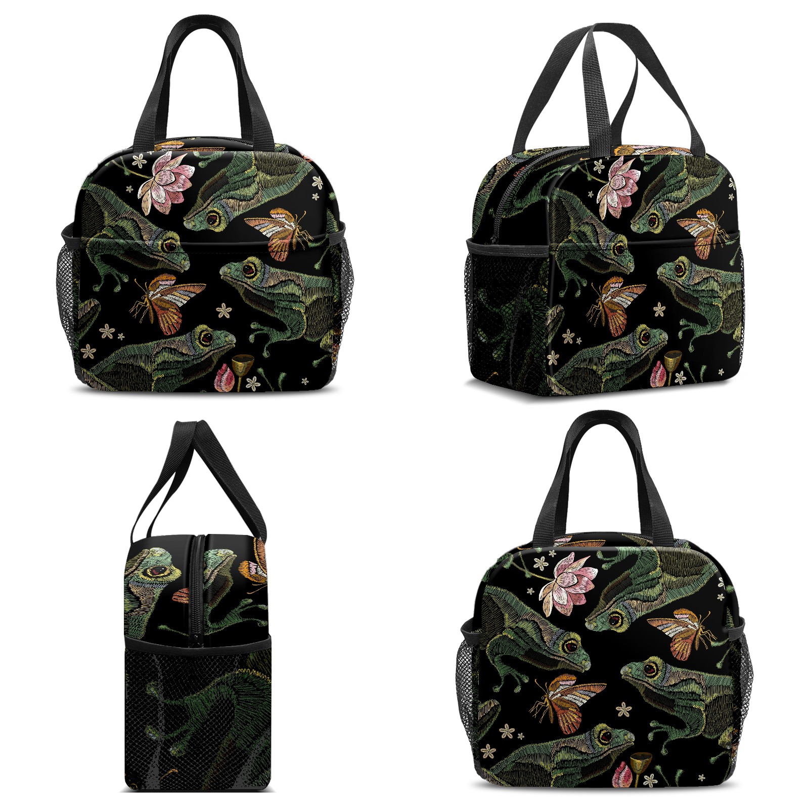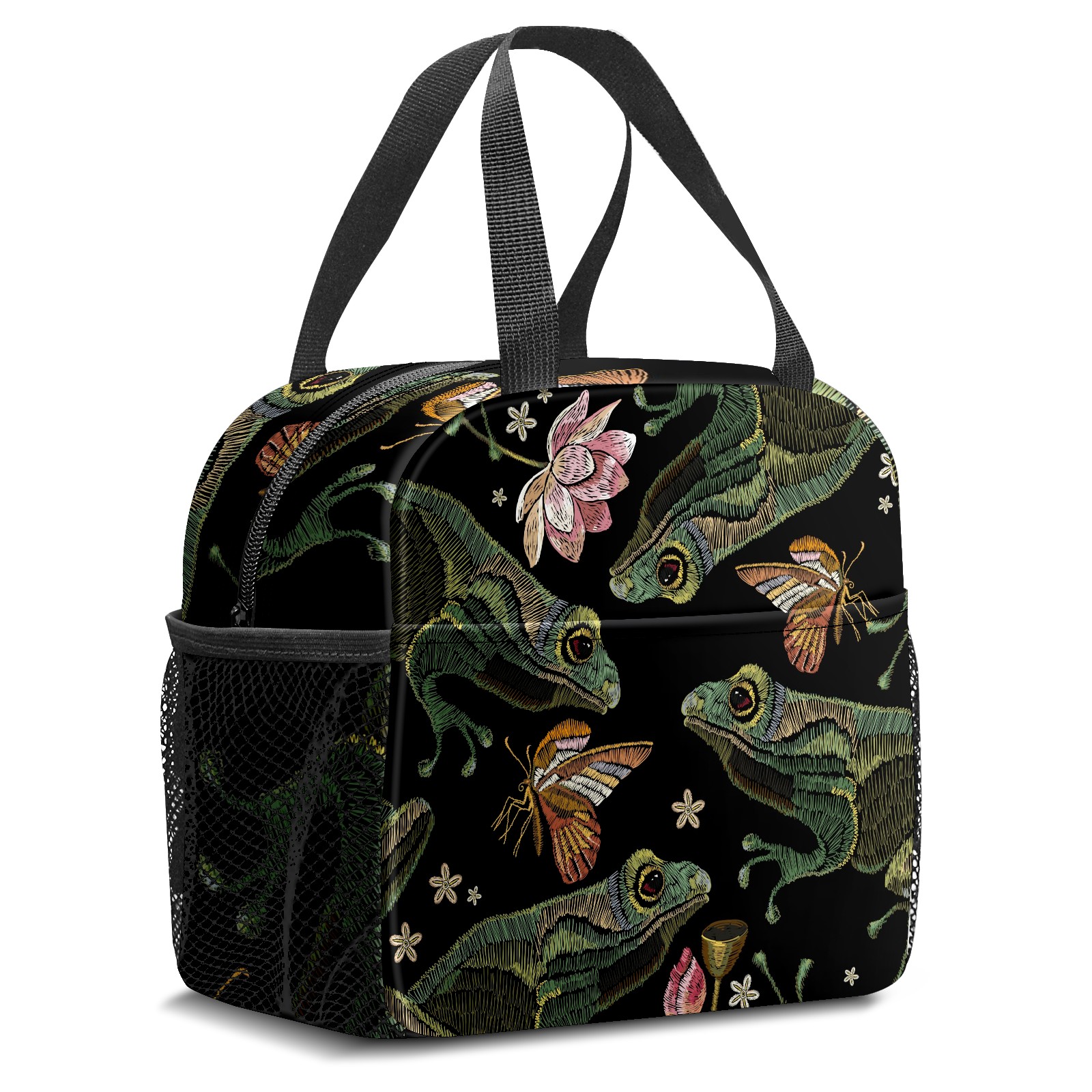 Lunch Bag,Lunch Box for Women Men,Embroidered Frog Design Reusable Insulated Lunch Tote,Small Leakproof Cute Lunch Cooler with High Capacity for Work,Picnic,Camping