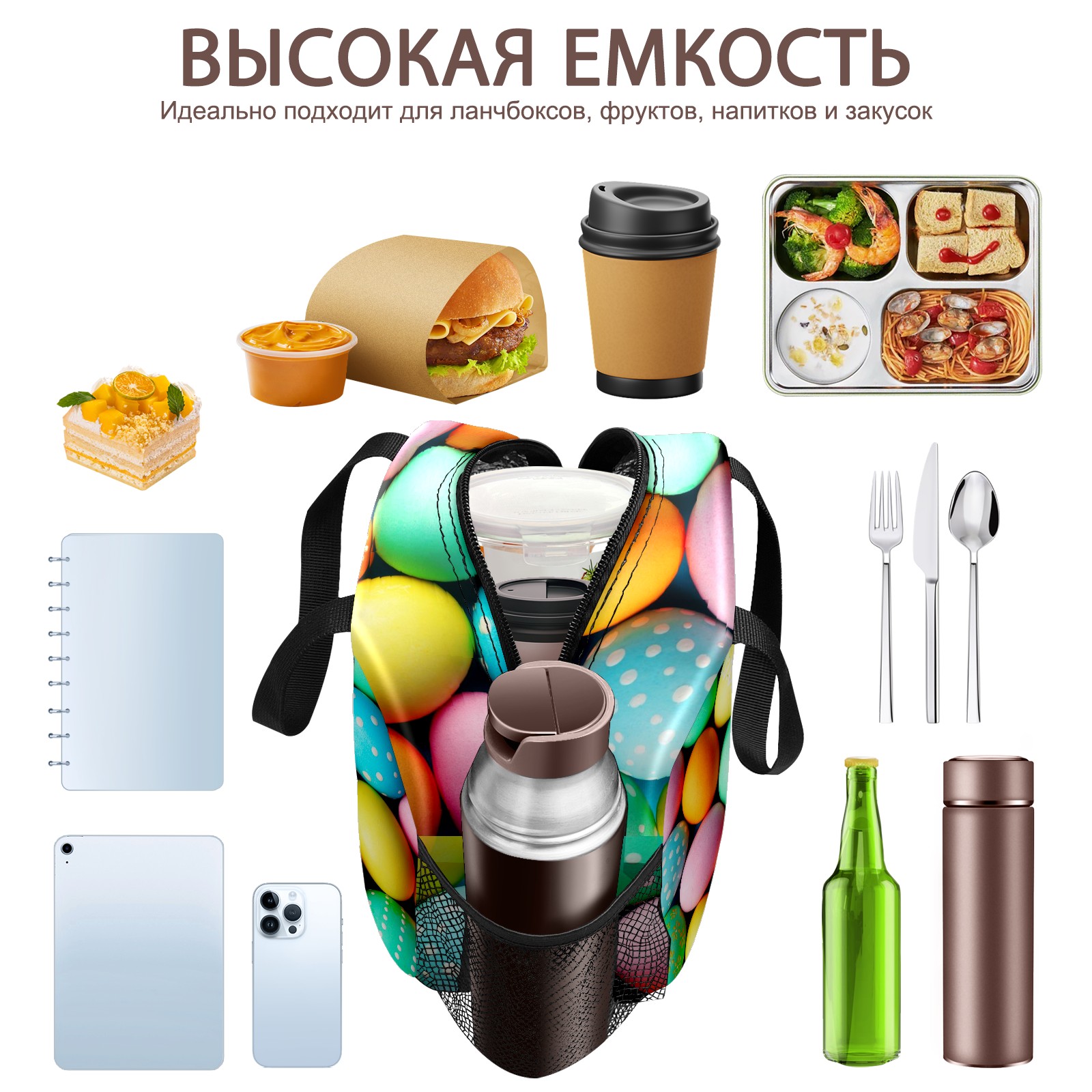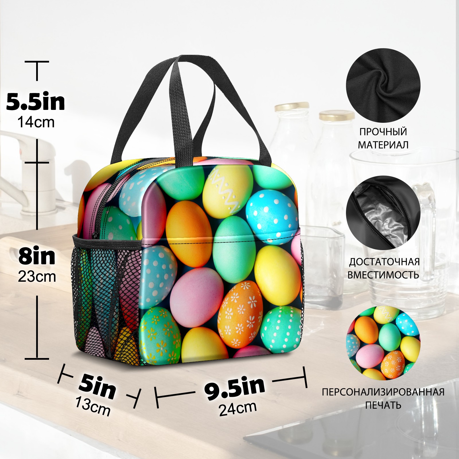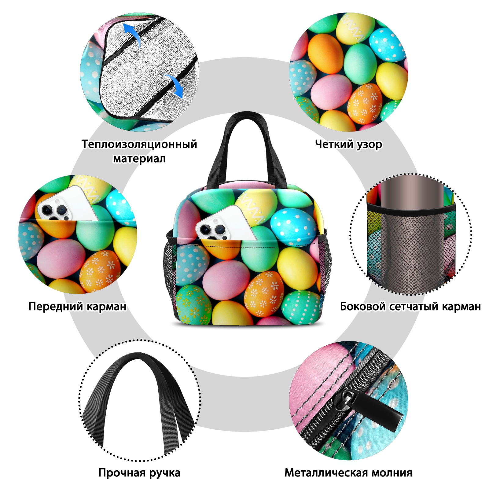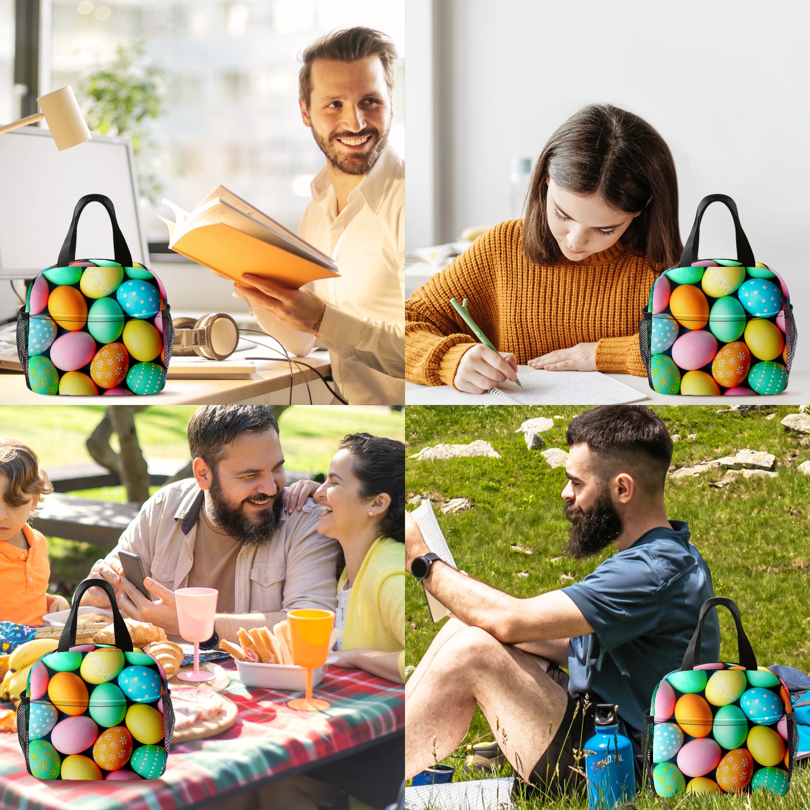 Lunch Bag,Lunch Box for Women Men,Dot Colourful Eggs Reusable Insulated Lunch Tote,Small Leakproof Cute Lunch Cooler with High Capacity for Work,Picnic,Camping