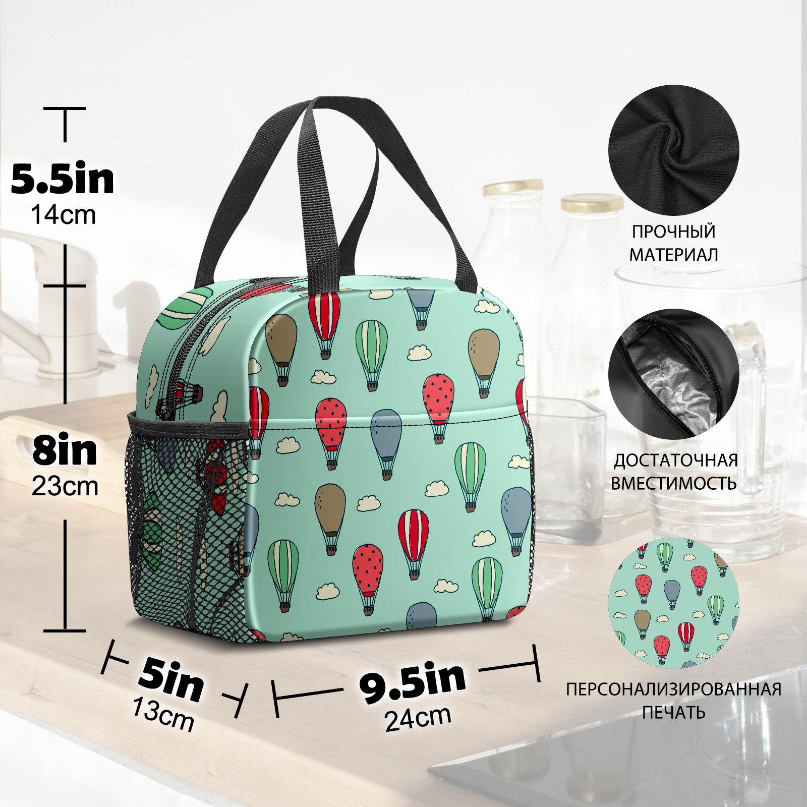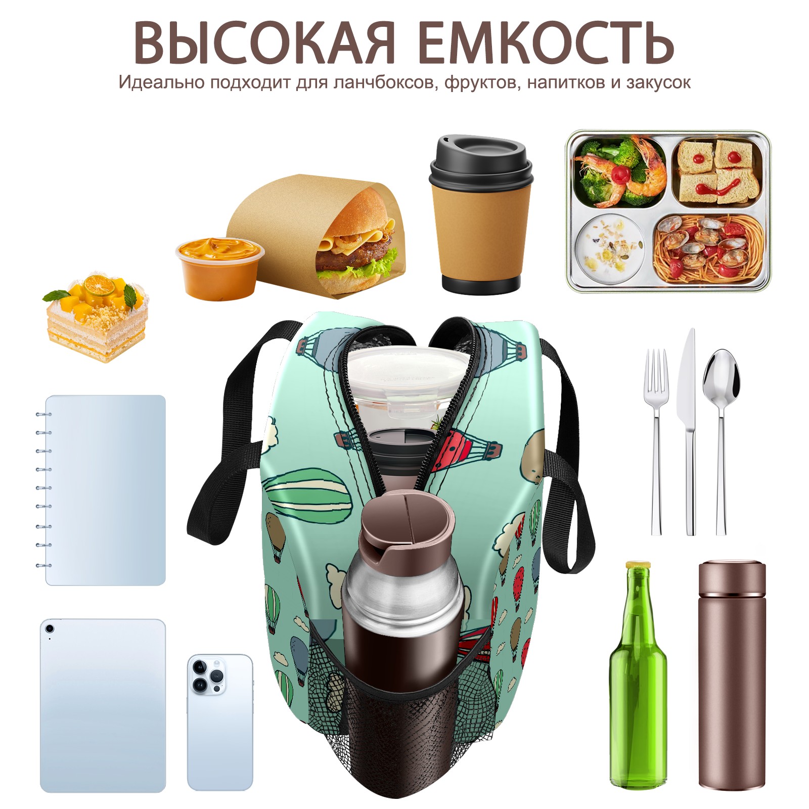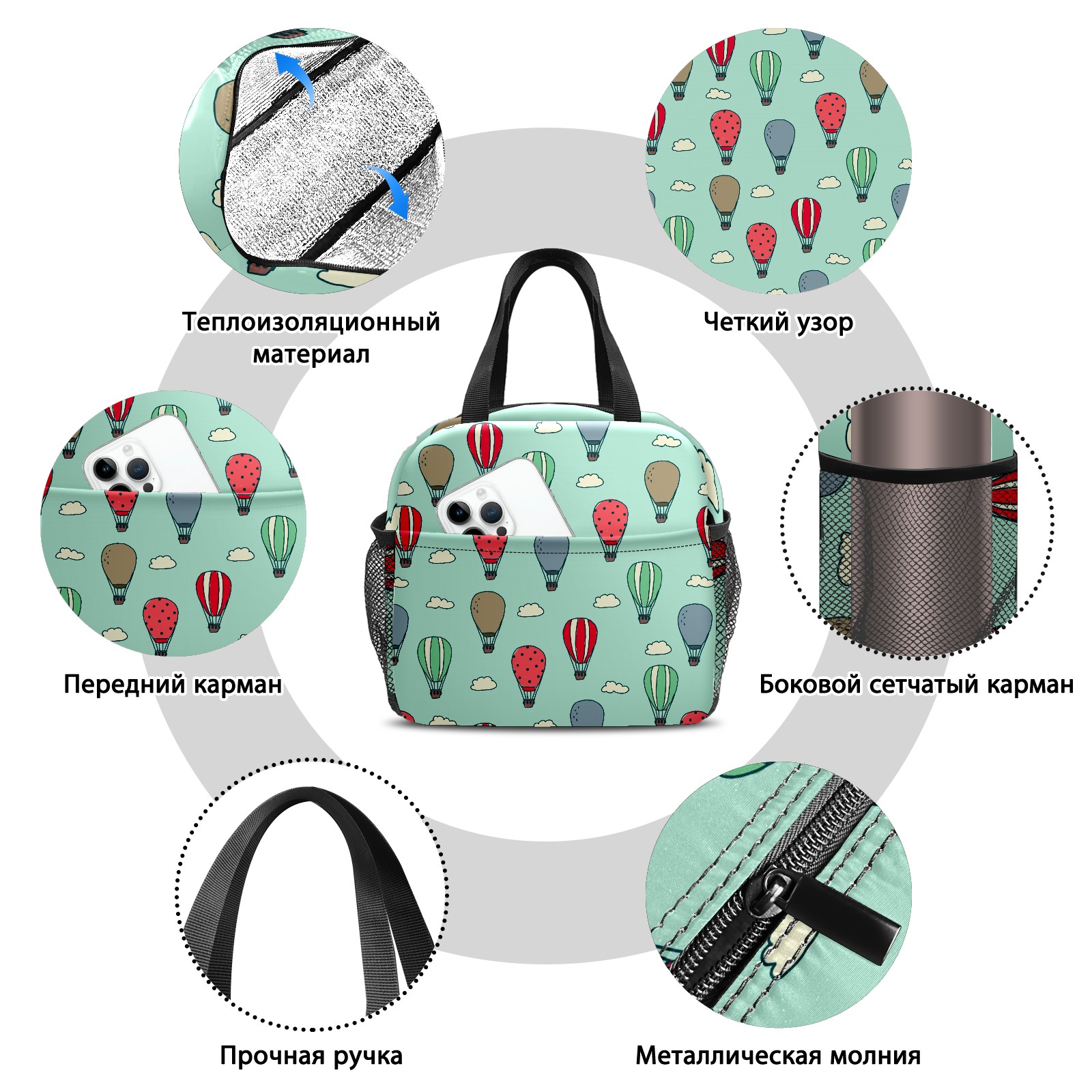 Lunch Bag,Lunch Box for Women Men,Doodled Air Balloons Reusable Insulated Lunch Tote,Small Leakproof Cute Lunch Cooler with High Capacity for Work,Picnic,Camping