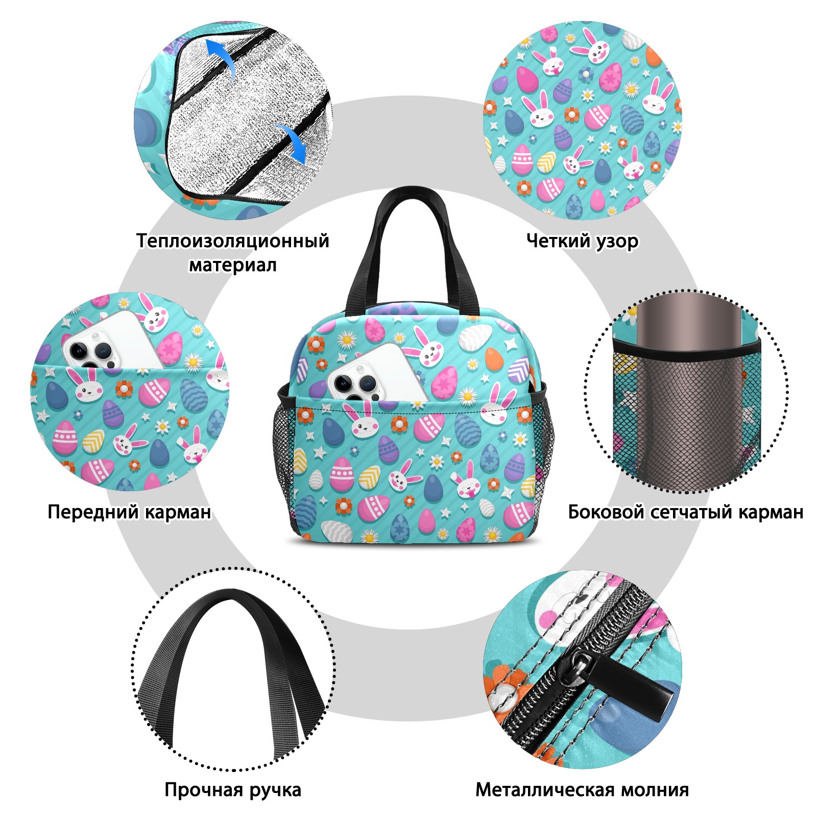 Lunch Bag,Lunch Box for Women Men,Decorative Easter Background Reusable Insulated Lunch Tote,Small Leakproof Cute Lunch Cooler with High Capacity for Work,Picnic,Camping