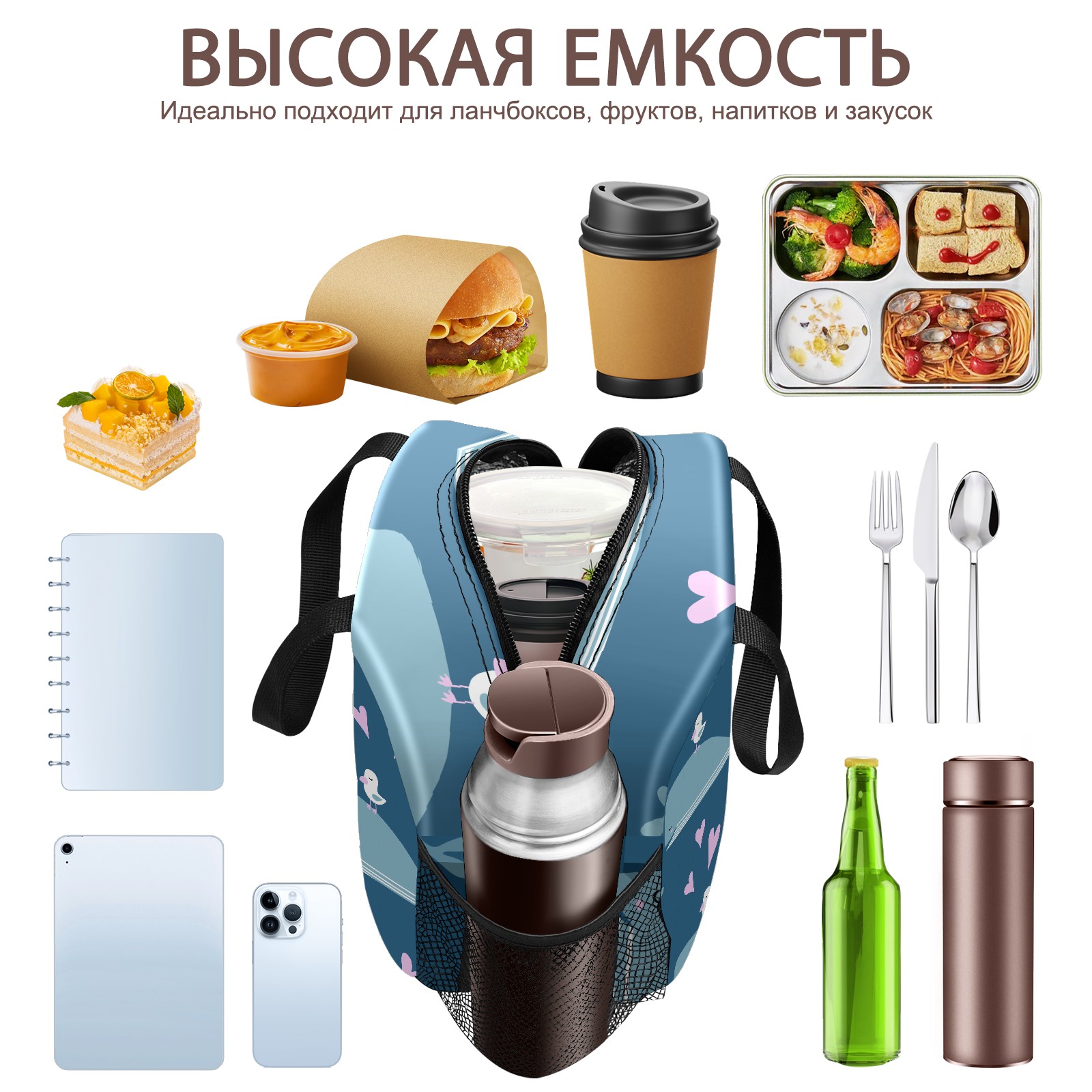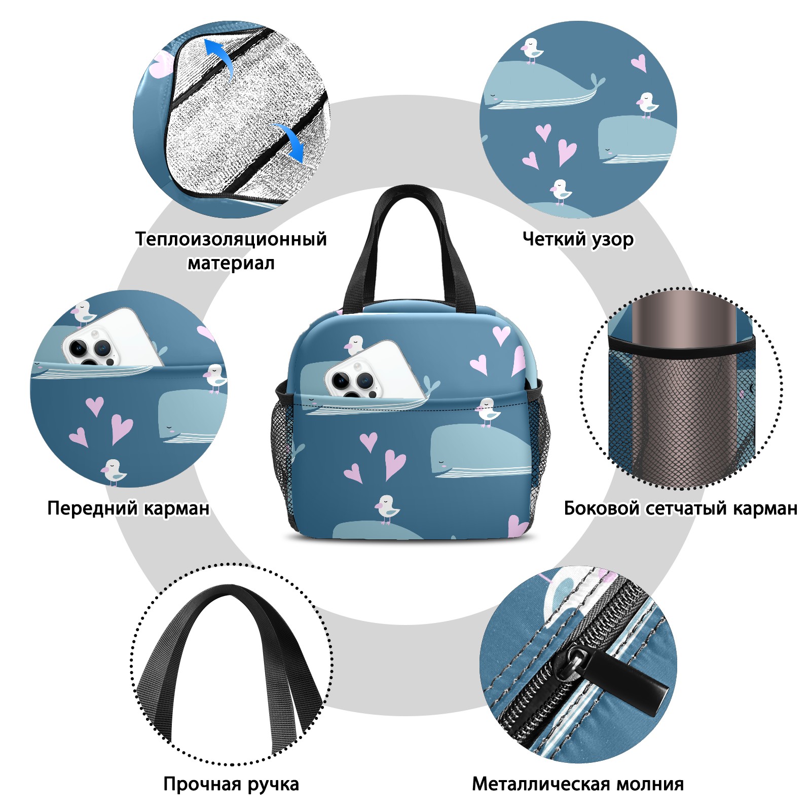 • <p>This stylish lunch bag is made of premium 600D waterproof Oxford cloth with thick insulating pearl foam lining and smooth, durable zippers, combining an attractive look with long-lasting daily use. Measuring 9.8*6.7*8.7, it offers ample space with a main zippered compartment and a front pocket to organize containers, food and snacks neatly for easy access. Boasting an extra-thick aluminum foil lining and heat-welded seams, it delivers reliable leak-proof performance and strong insulation to keep food hot or cold for hours, ideal for sandwiches, salads, fruits and more. Lightweight and portable with a sturdily stitched upgraded handle, this reusable lunch bag is a perfect companion for work, camping, picnics, beach trips and outdoor travel, helping you enjoy fresh homemade meals on the go.</p>