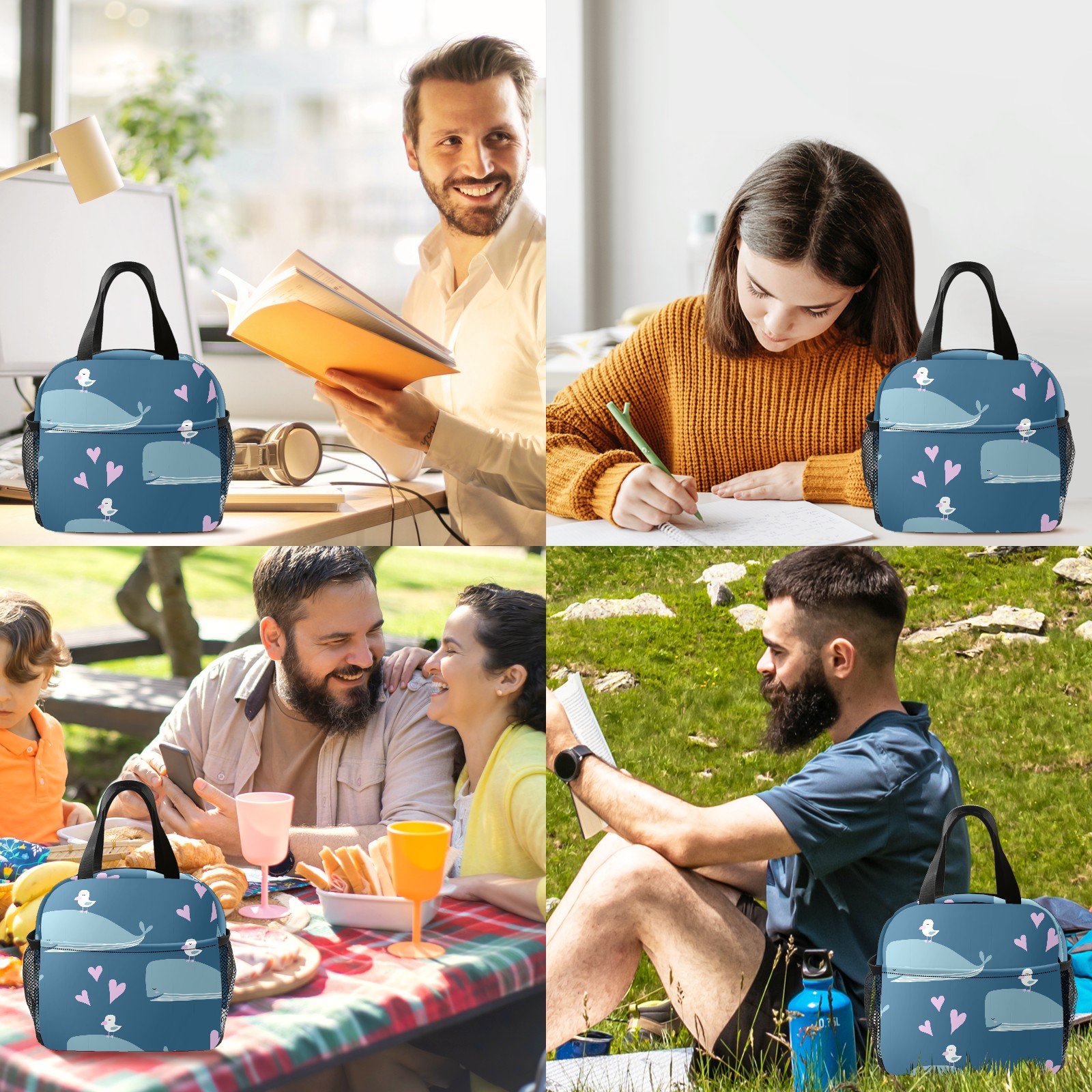 Lunch Bag,Lunch Box for Women Men,Cute Whale Birds Reusable Insulated Lunch Tote,Small Leakproof Cute Lunch Cooler with High Capacity for Work,Picnic,Camping