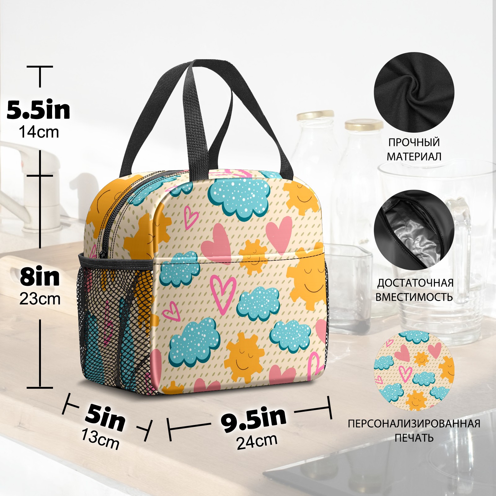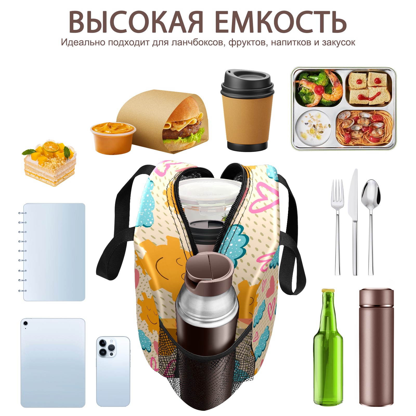 Lunch Bag,Lunch Box for Women Men,Cute Sunny Reusable Insulated Lunch Tote,Small Leakproof Cute Lunch Cooler with High Capacity for Work,Picnic,Camping
