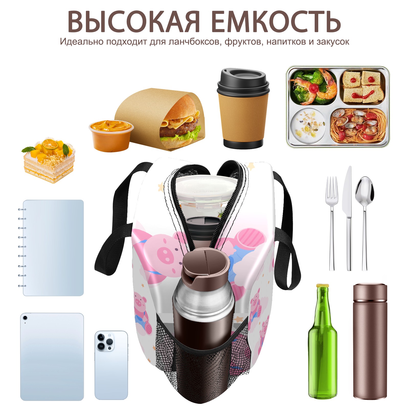 Lunch Bag,Lunch Box for Women Men,Cute Pink Pig Reusable Insulated Lunch Tote,Small Leakproof Cute Lunch Cooler with High Capacity for Work,Picnic,Camping