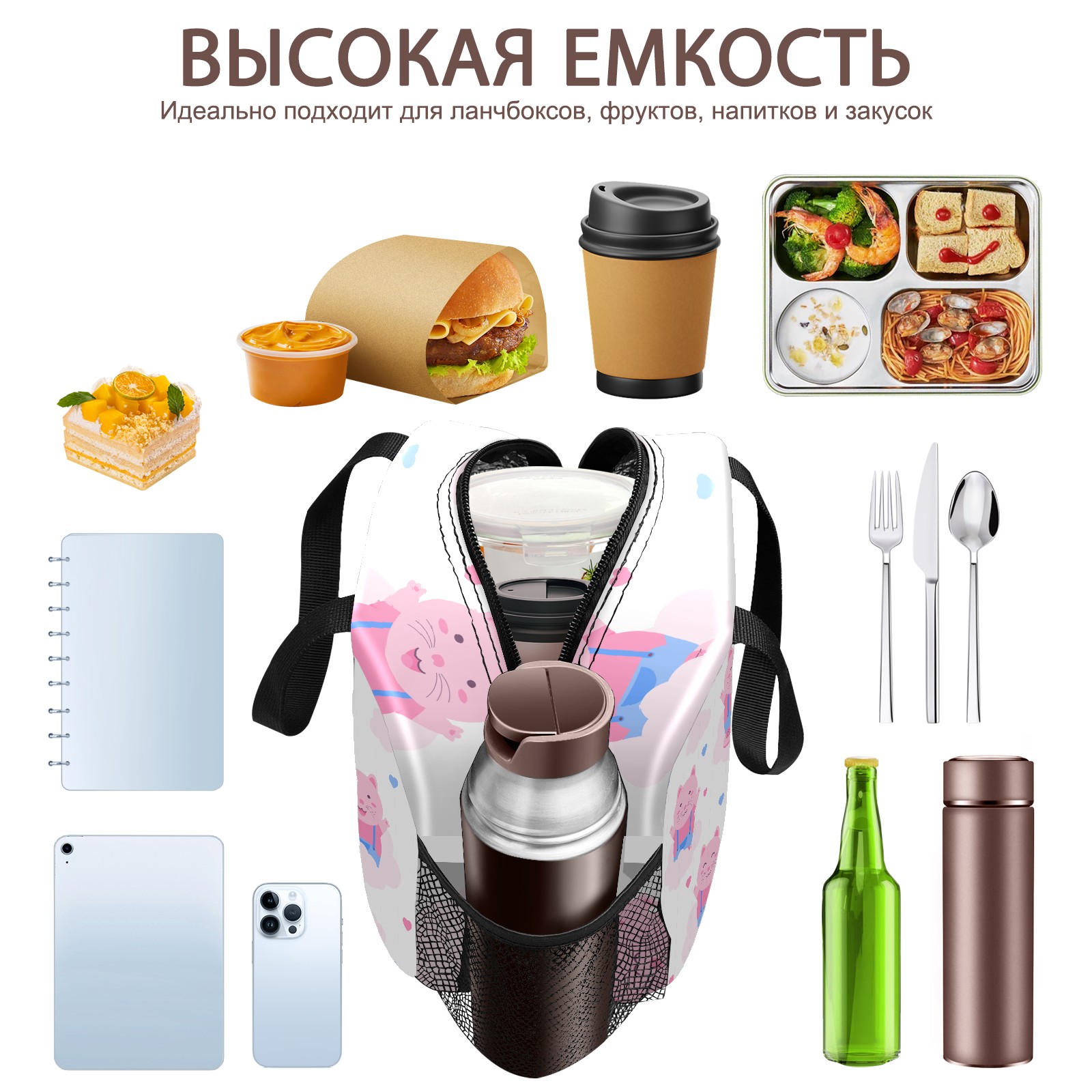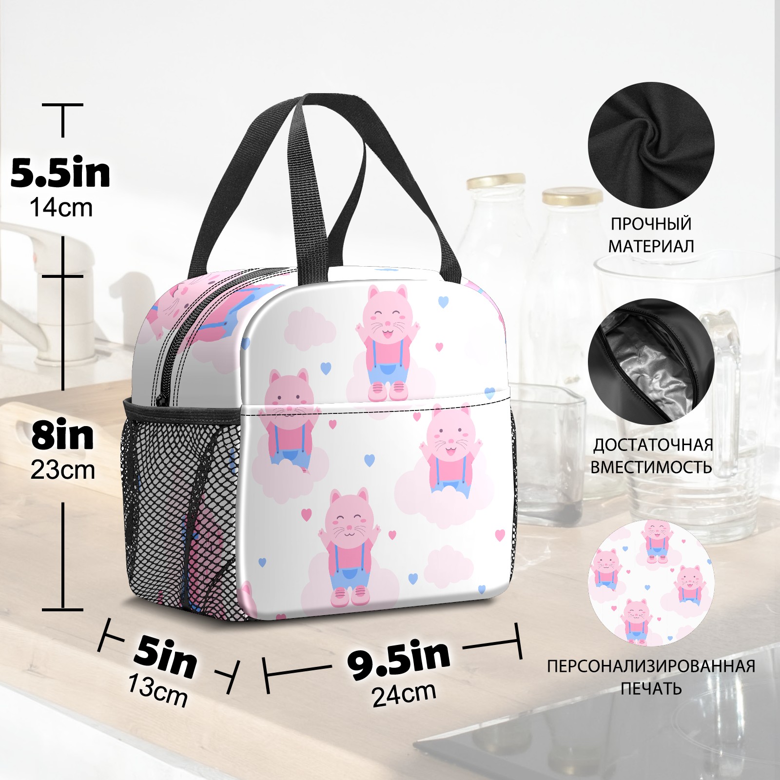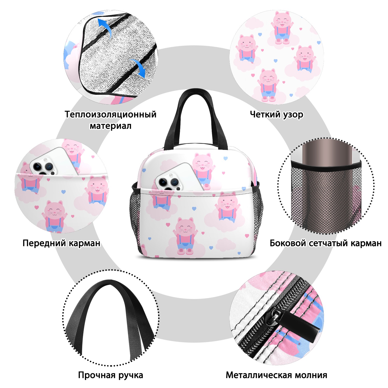 Lunch Bag,Lunch Box for Women Men,Cute Pink Cat Reusable Insulated Lunch Tote,Small Leakproof Cute Lunch Cooler with High Capacity for Work,Picnic,Camping