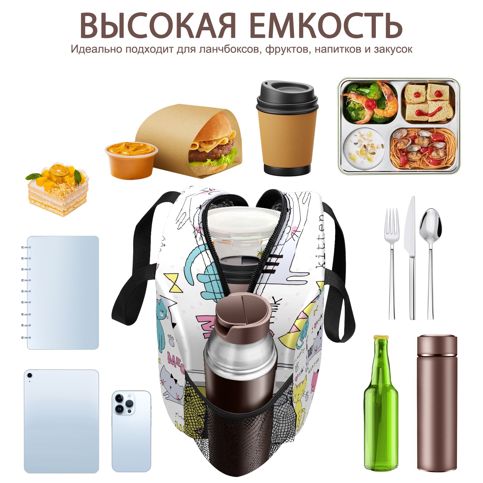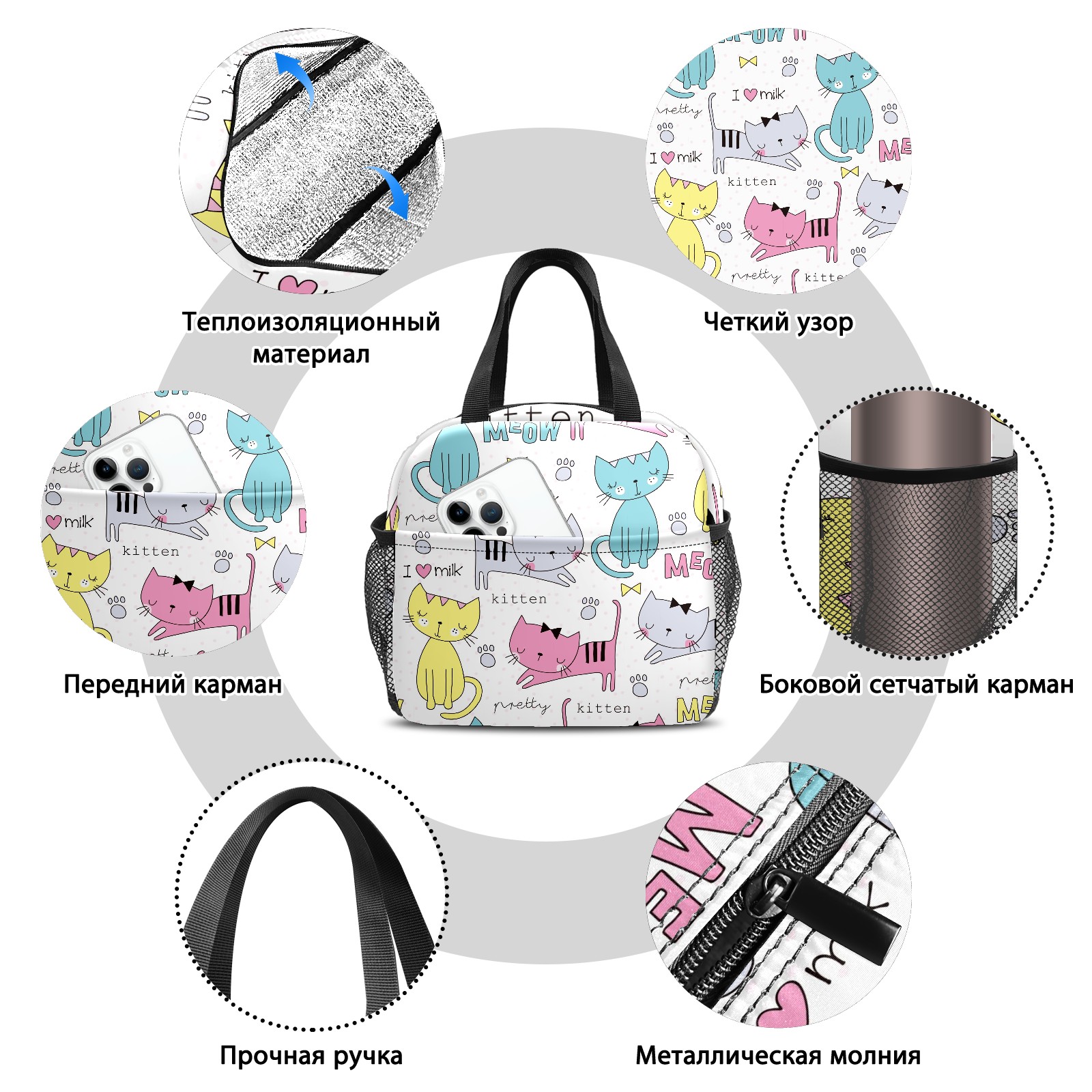 Lunch Bag,Lunch Box for Women Men,Cute Kitten Reusable Insulated Lunch Tote,Small Leakproof Cute Lunch Cooler with High Capacity for Work,Picnic,Camping
