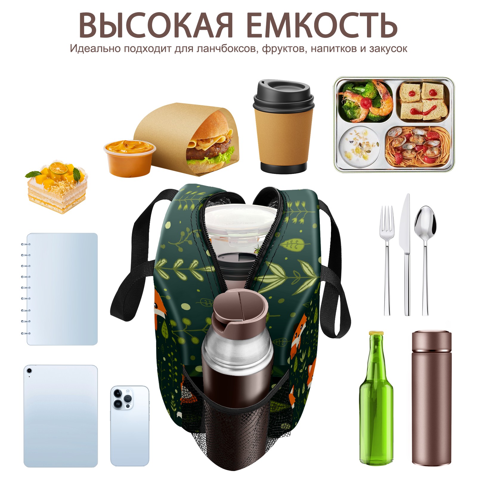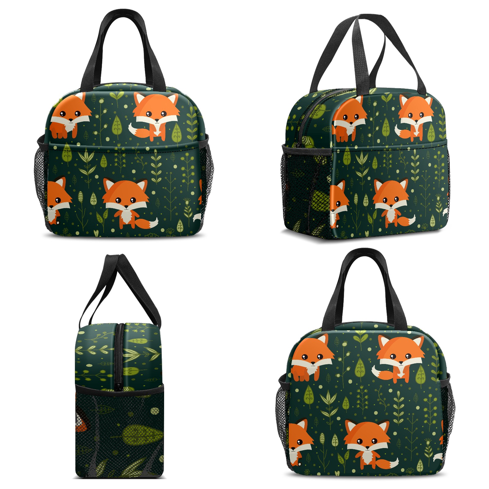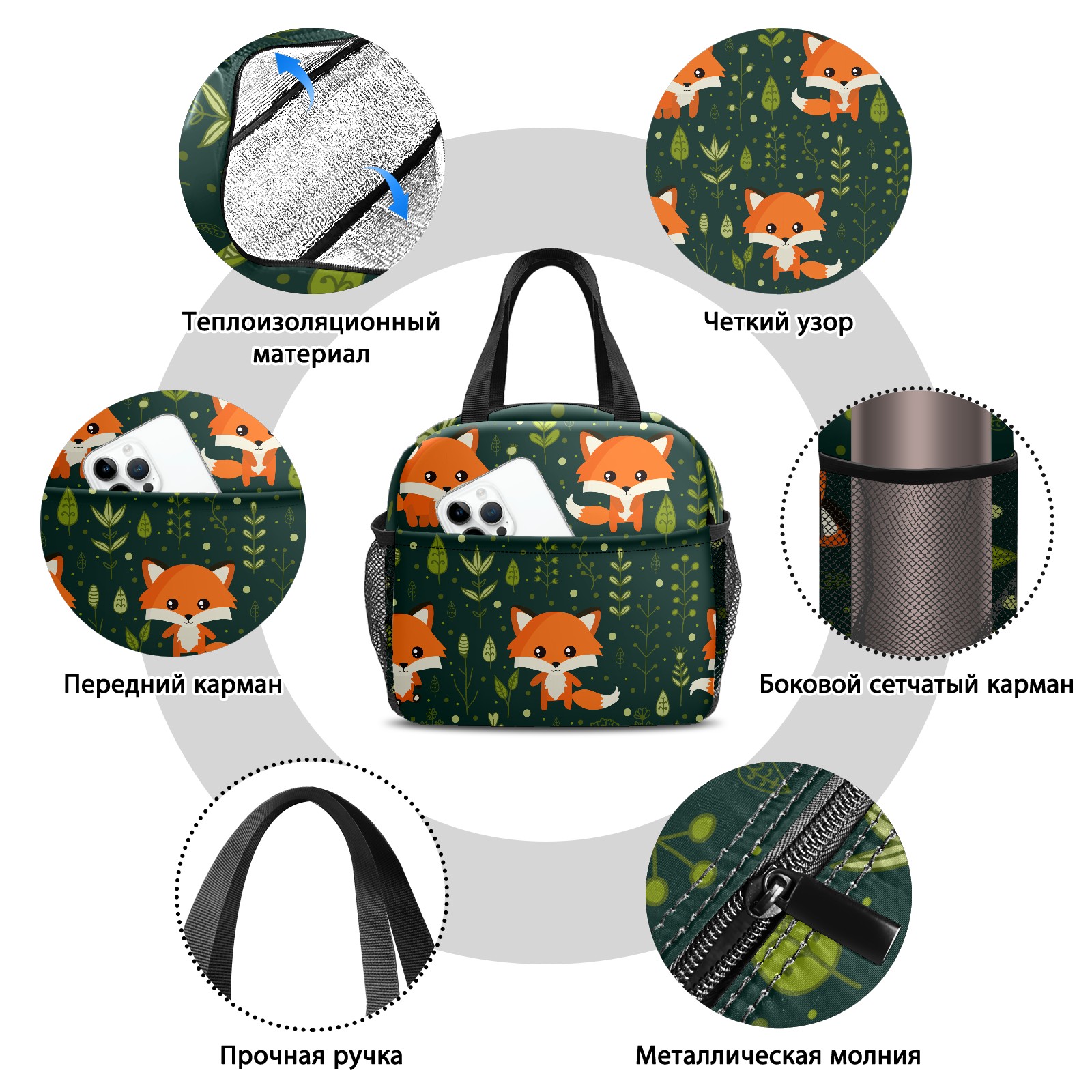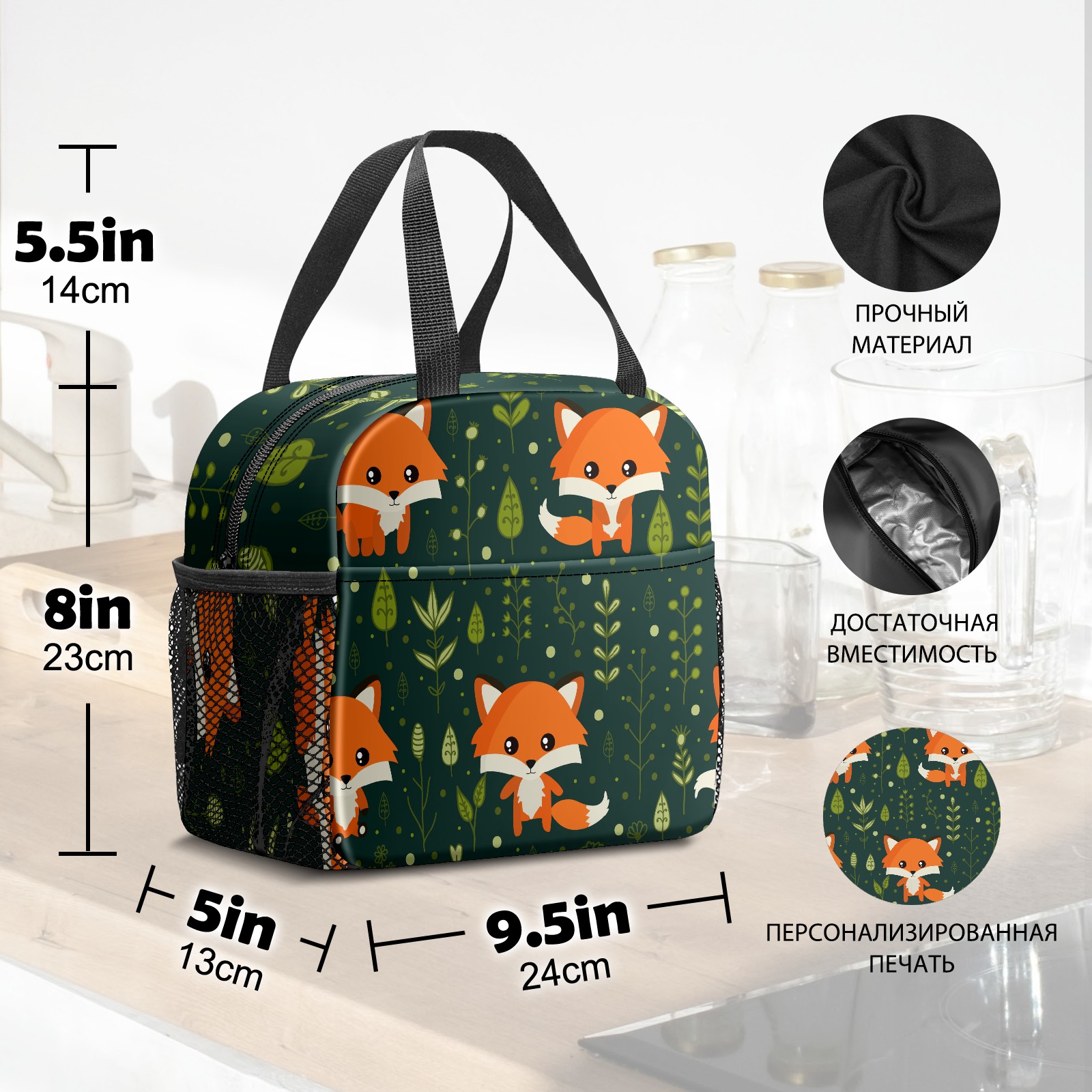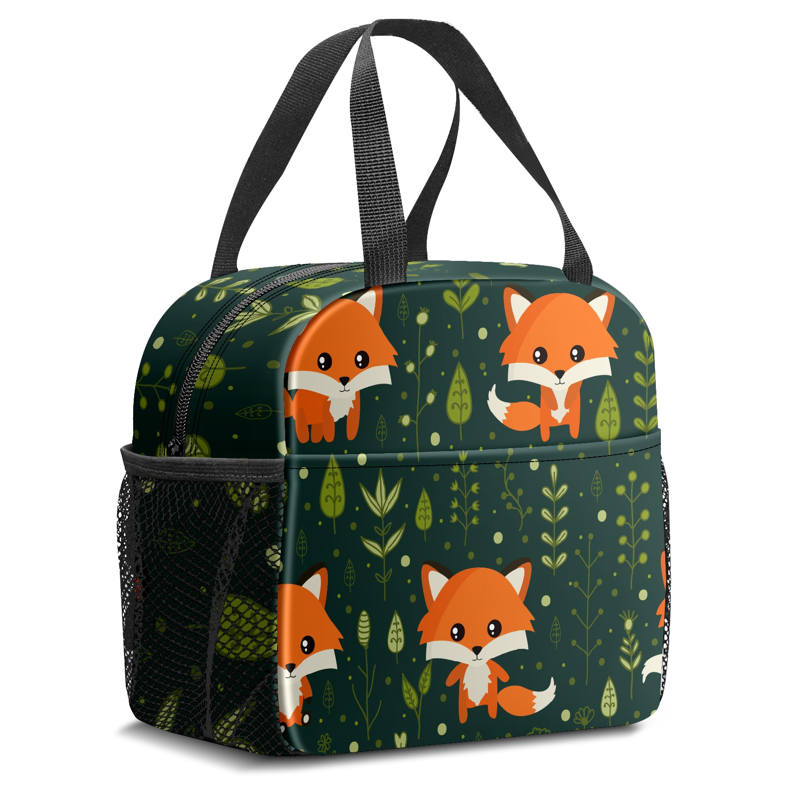 Lunch Bag,Lunch Box for Women Men,Cute Foxes Green Leaves Reusable Insulated Lunch Tote,Small Leakproof Cute Lunch Cooler with High Capacity for Work,Picnic,Camping