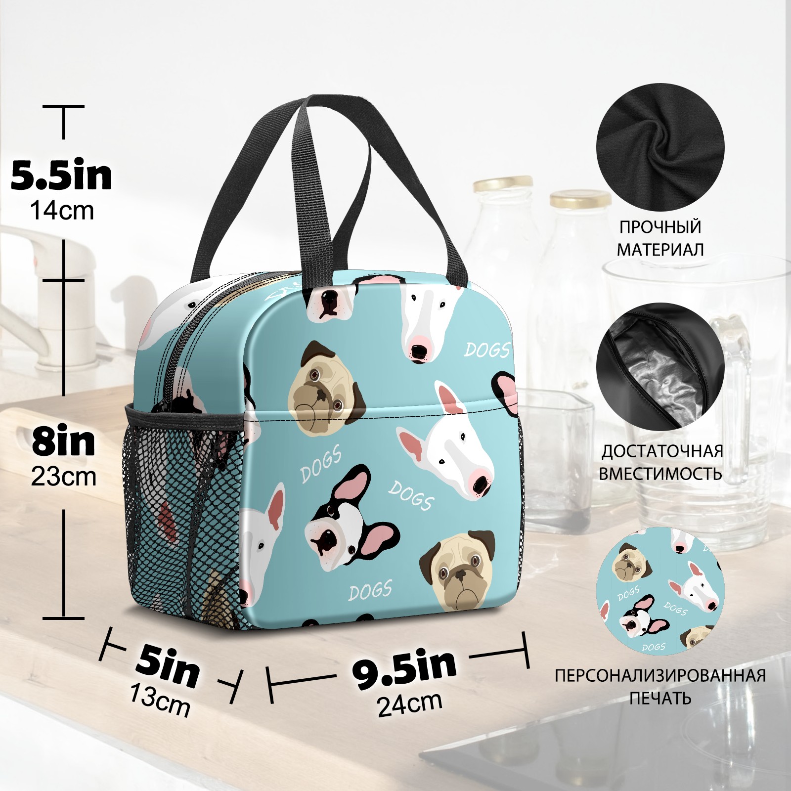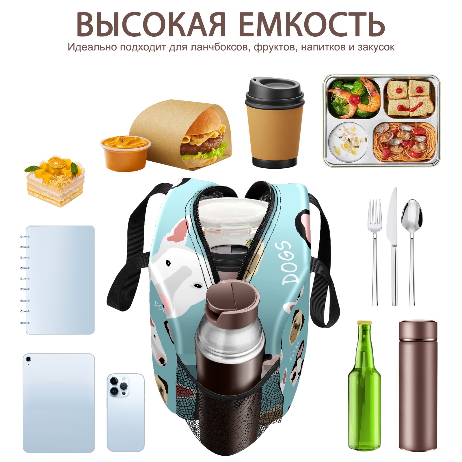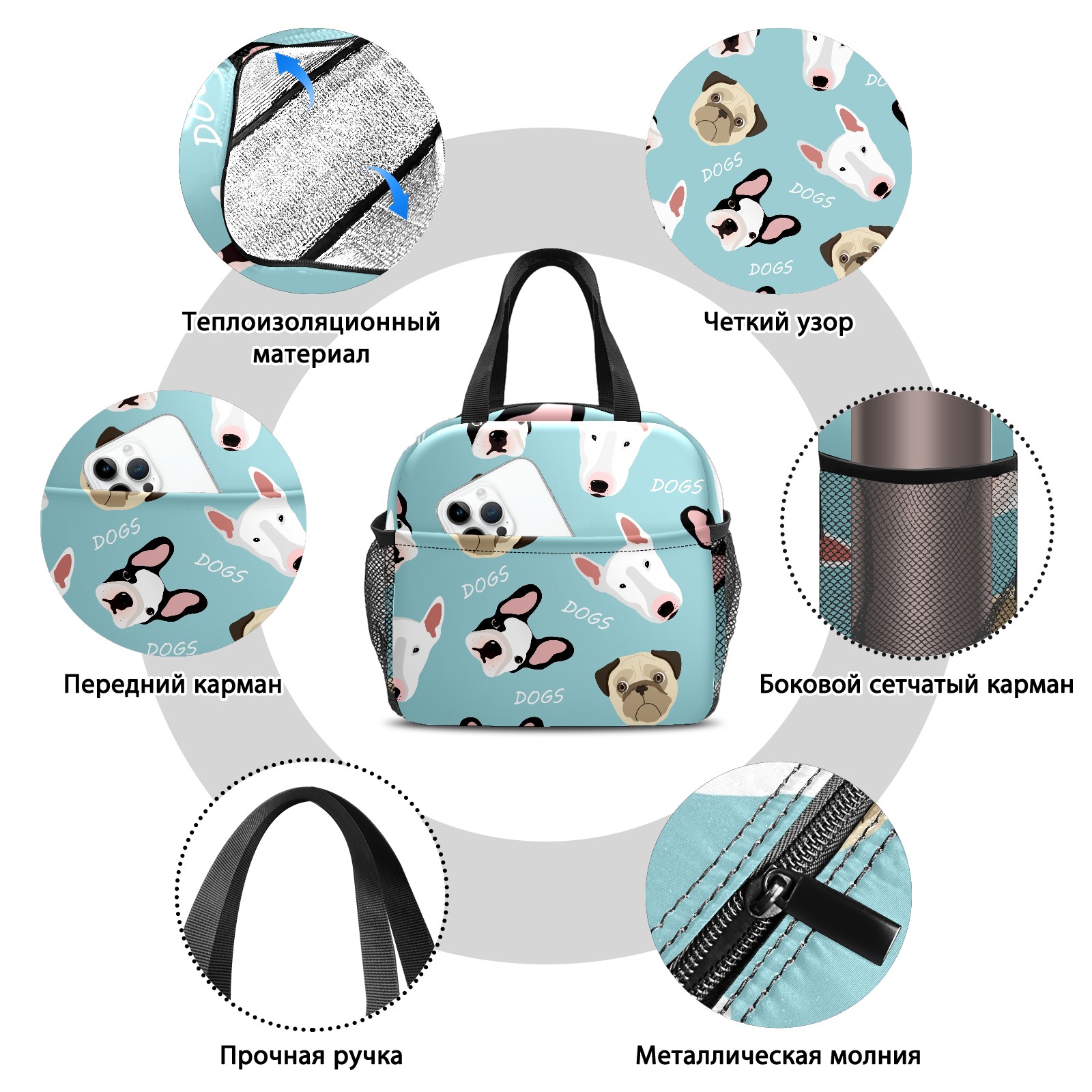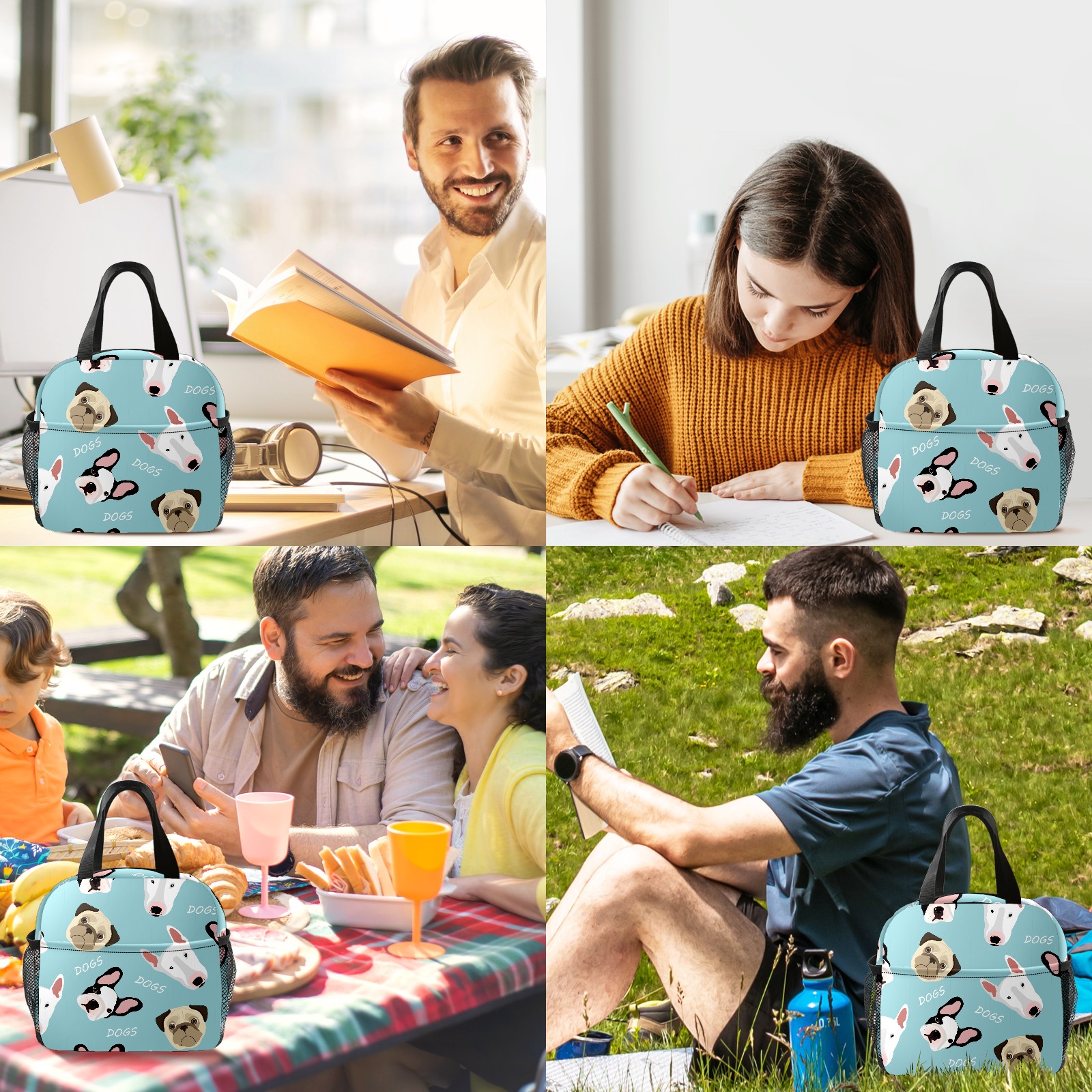 Lunch Bag,Lunch Box for Women Men,Cute Dogs Blue Background Reusable Insulated Lunch Tote,Small Leakproof Cute Lunch Cooler with High Capacity for Work,Picnic,Camping