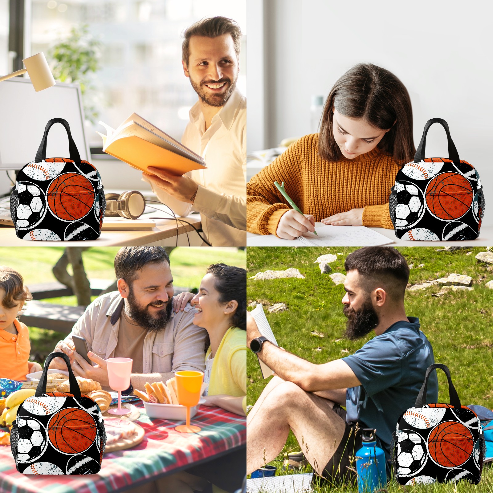 Lunch Bag,Lunch Box for Women Men,Cool Basketball Football Reusable Insulated Lunch Tote,Small Leakproof Cute Lunch Cooler with High Capacity for Work,Picnic,Camping