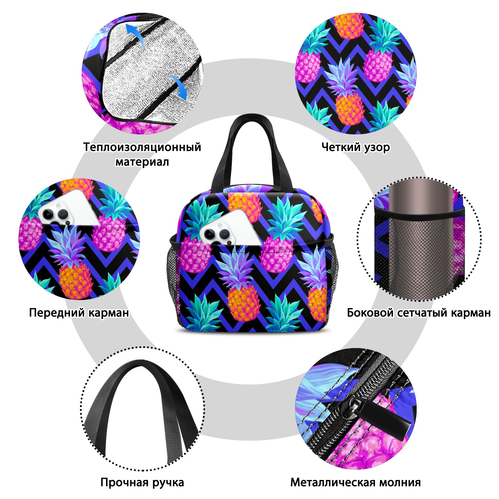 Lunch Bag,Lunch Box for Women Men,Colorful Pineapple Collection Reusable Insulated Lunch Tote,Small Leakproof Cute Lunch Cooler with High Capacity for Work,Picnic,Camping