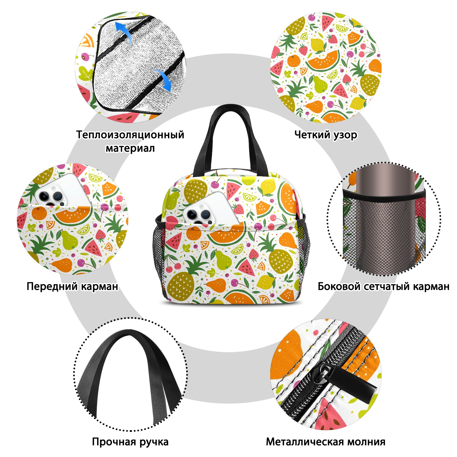 Lunch Bag,Lunch Box for Women Men,Colorful Fruits Reusable Insulated Lunch Tote,Small Leakproof Cute Lunch Cooler with High Capacity for Work,Picnic,Camping