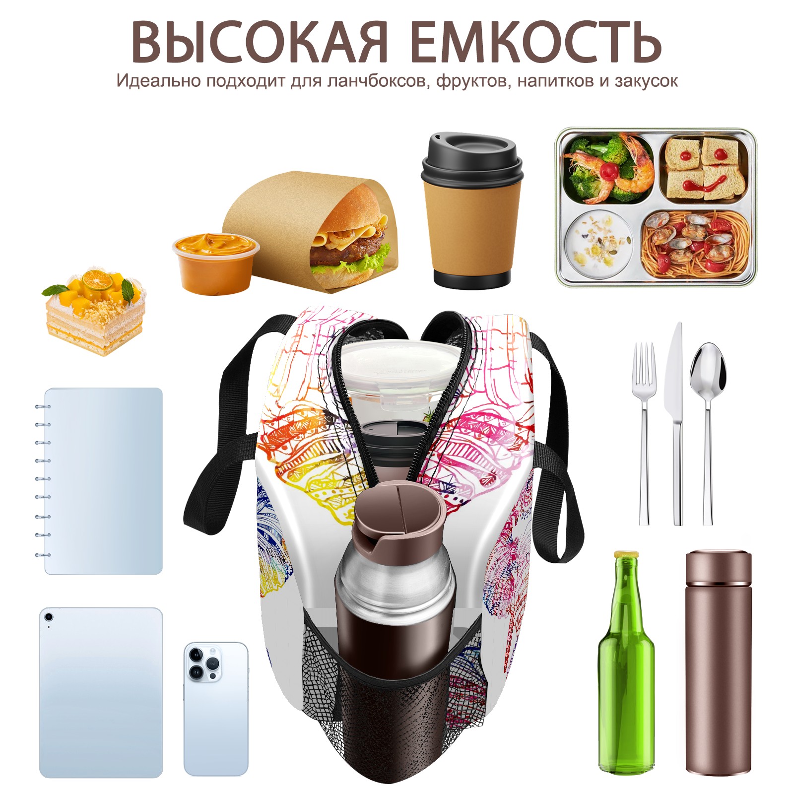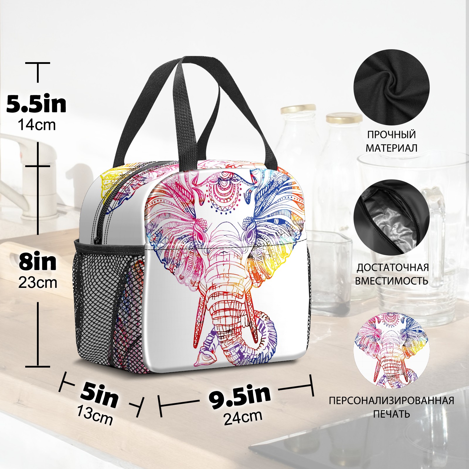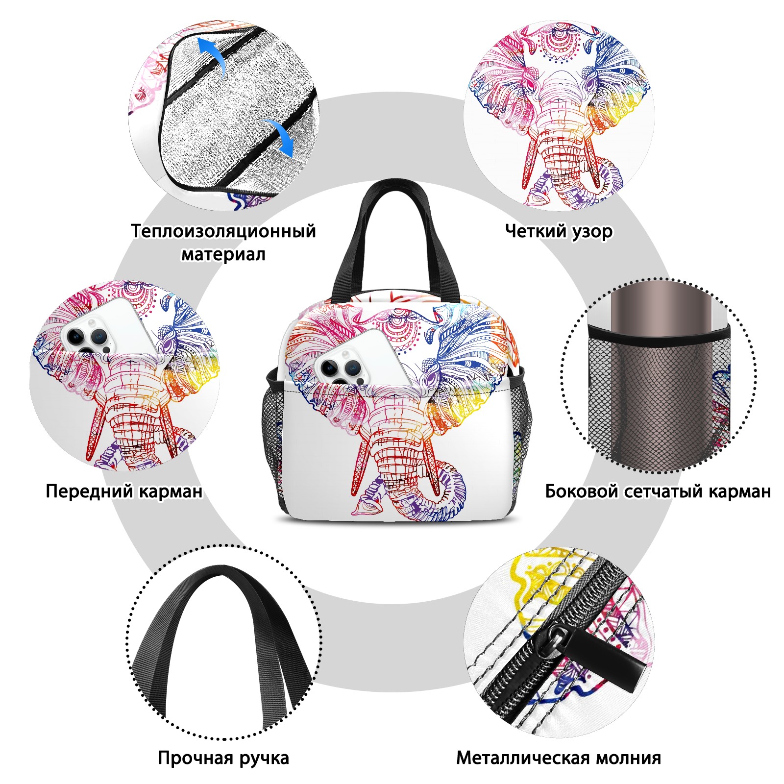 Lunch Bag,Lunch Box for Women Men,Colorful Elephant Reusable Insulated Lunch Tote,Small Leakproof Cute Lunch Cooler with High Capacity for Work,Picnic,Camping