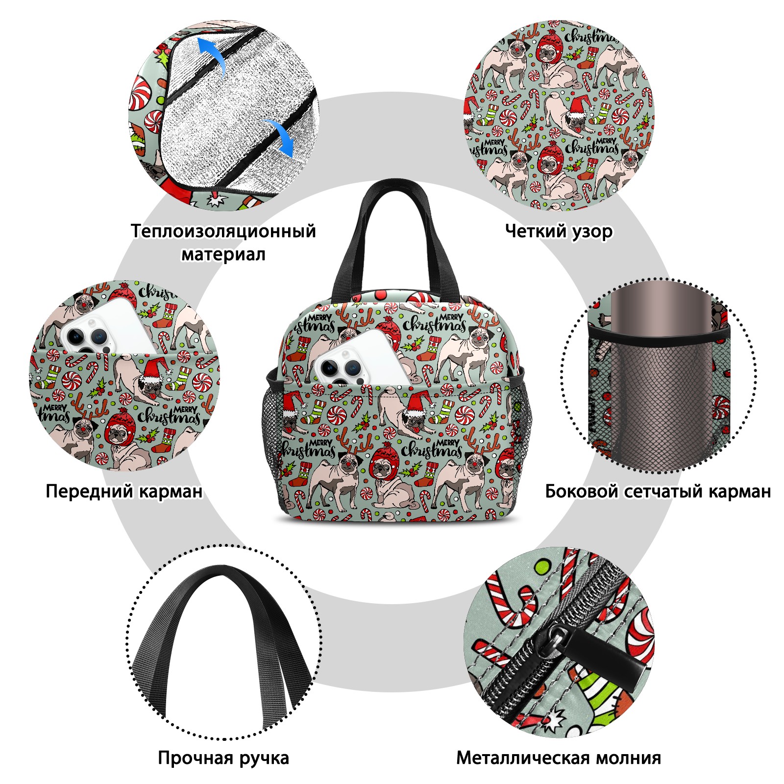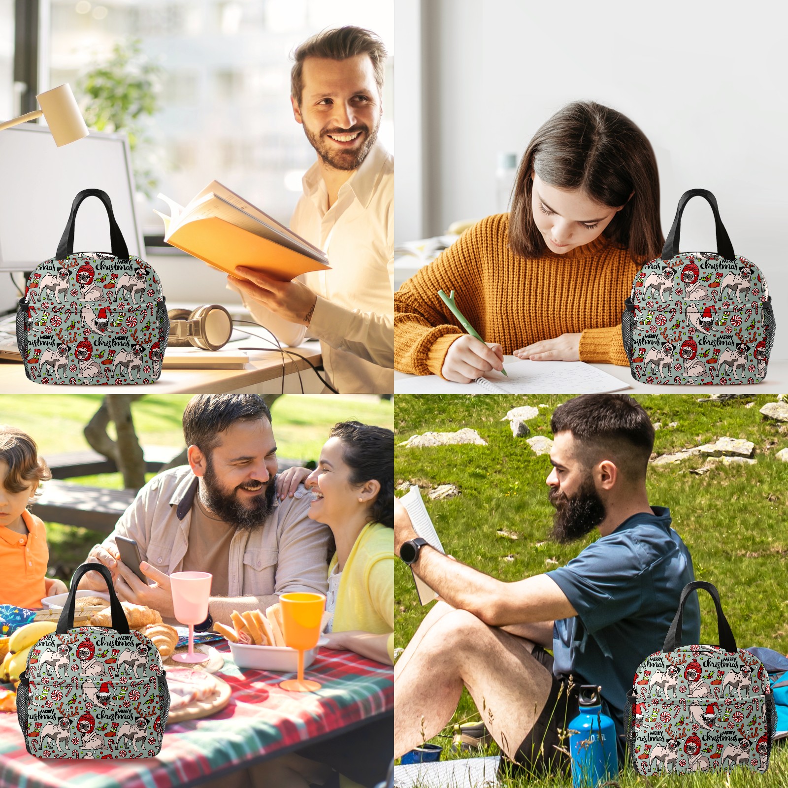 Lunch Bag,Lunch Box for Women Men,Christmas Theme With Dogs Reusable Insulated Lunch Tote,Small Leakproof Cute Lunch Cooler with High Capacity for Work,Picnic,Camping