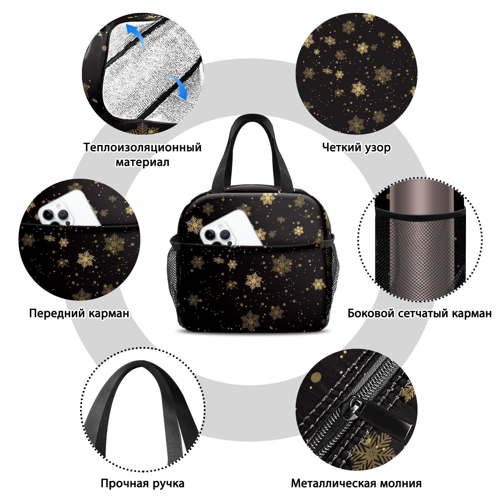 Lunch Bag,Lunch Box for Women Men,Christmas Snowflakes Reusable Insulated Lunch Tote,Small Leakproof Cute Lunch Cooler with High Capacity for Work,Picnic,Camping