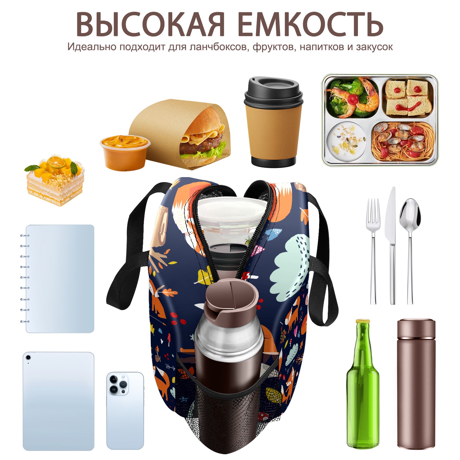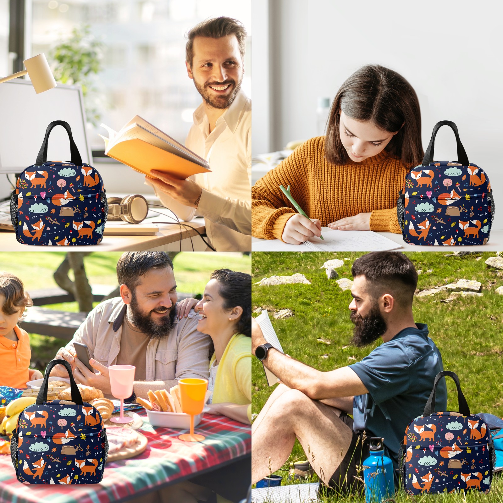 Lunch Bag,Lunch Box for Women Men,Cartoon Scrawl Fox Reusable Insulated Lunch Tote,Small Leakproof Cute Lunch Cooler with High Capacity for Work,Picnic,Camping