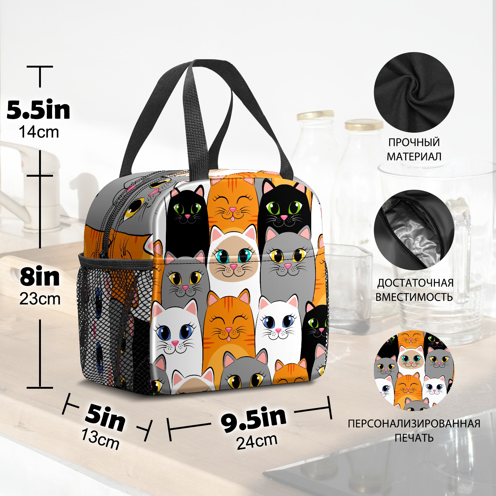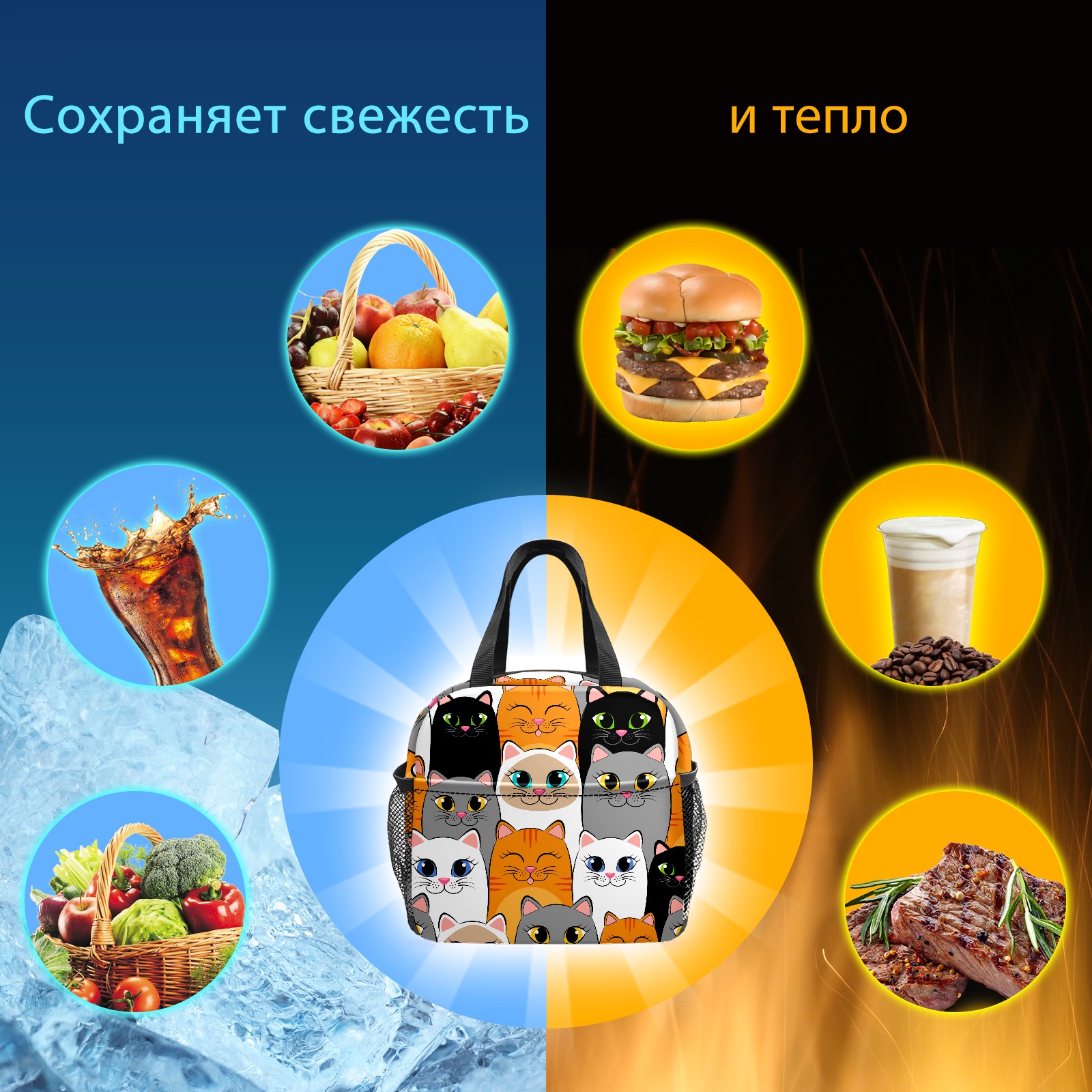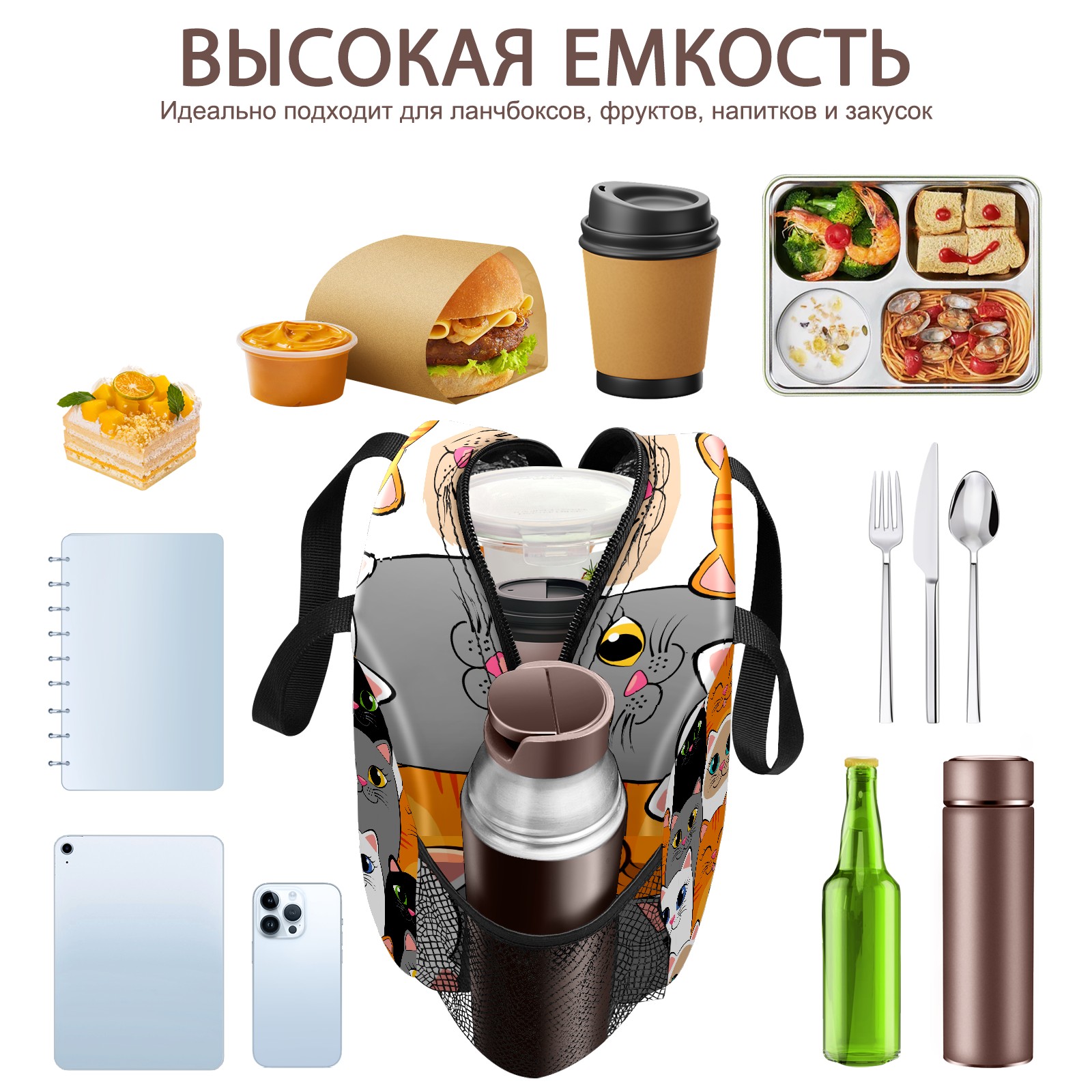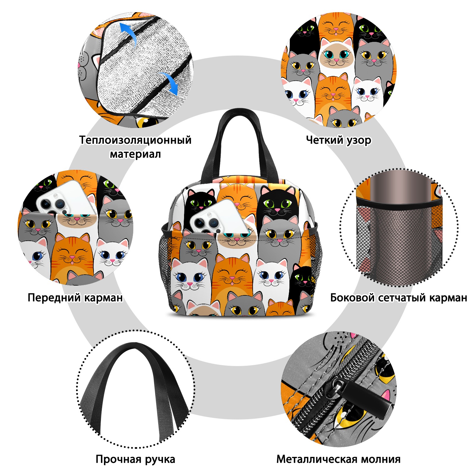 Lunch Bag,Lunch Box for Women Men,Cartoon Cats Reusable Insulated Lunch Tote,Small Leakproof Cute Lunch Cooler with High Capacity for Work,Picnic,Camping