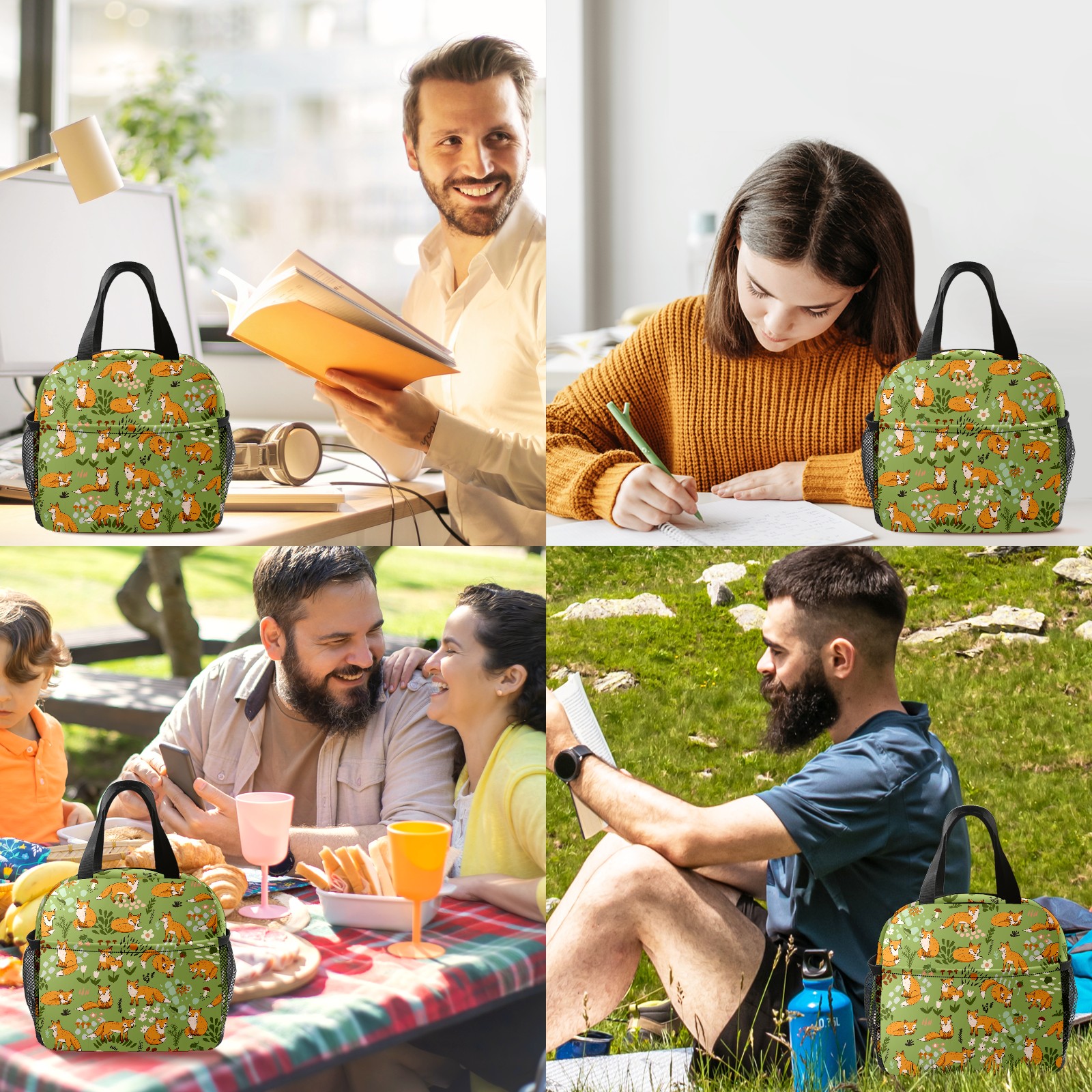 Lunch Bag,Lunch Box for Women Men,Cartoon Foxes Reusable Insulated Lunch Tote,Small Leakproof Cute Lunch Cooler with High Capacity for Work,Picnic,Camping