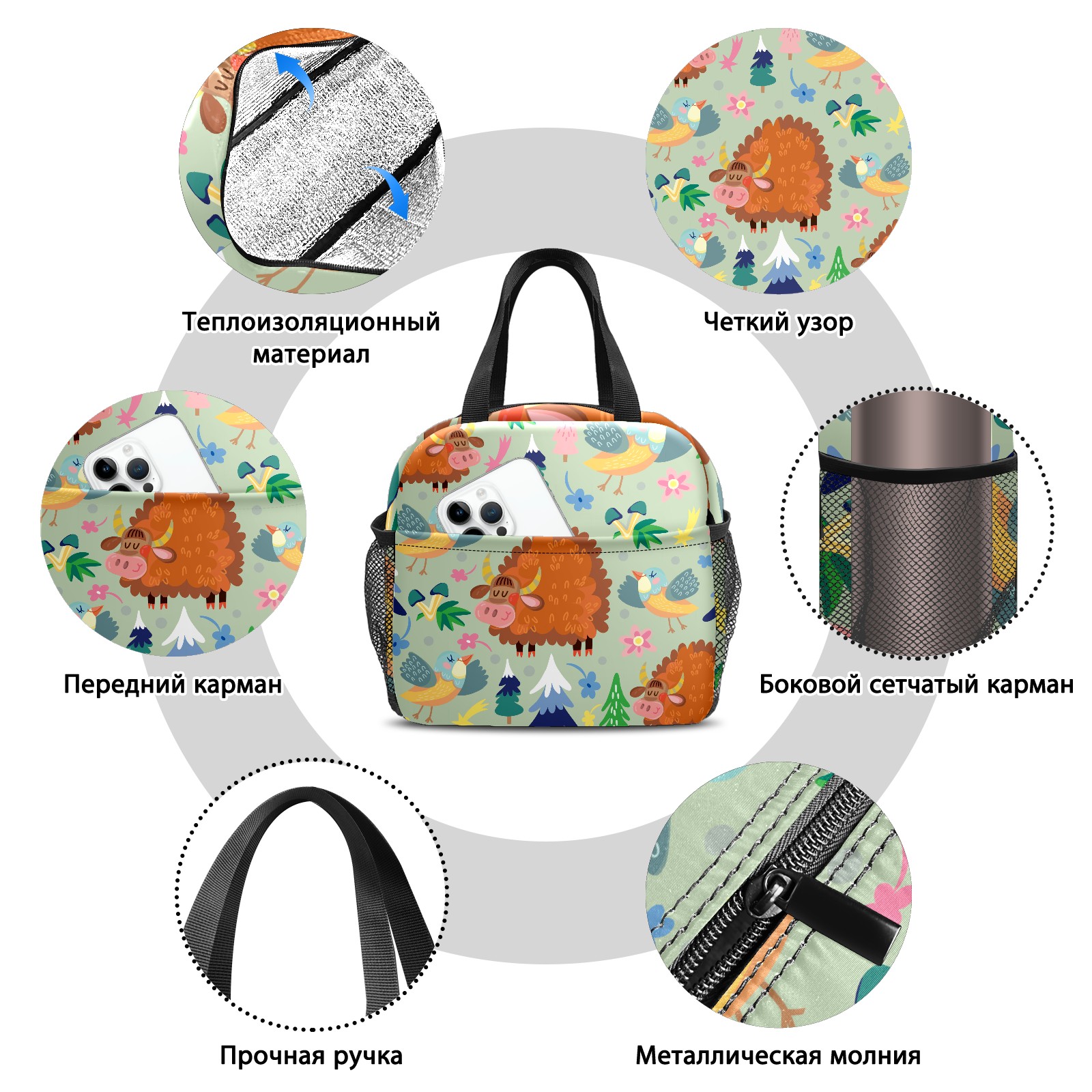 <p>This stylish lunch bag is made of premium 600D waterproof Oxford cloth with thick insulating pearl foam lining and smooth, durable zippers, combining an attractive look with long-lasting daily use. Measuring 9.8*6.7*8.7, it offers ample space with a main zippered compartment and a front pocket to organize containers, food and snacks neatly for easy access. Boasting an extra-thick aluminum foil lining and heat-welded seams, it delivers reliable leak-proof performance and strong insulation to keep food hot or cold for hours, ideal for sandwiches, salads, fruits and more. Lightweight and portable with a sturdily stitched upgraded handle, this reusable lunch bag is a perfect companion for work, camping, picnics, beach trips and outdoor travel, helping you enjoy fresh homemade meals on the go.</p>