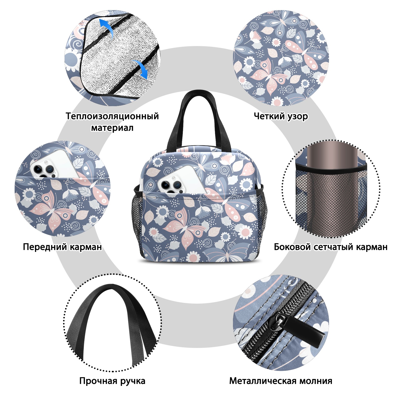 Lunch Bag,Lunch Box for Women Men,Butterfly Printing Reusable Insulated Lunch Tote,Small Leakproof Cute Lunch Cooler with High Capacity for Work,Picnic,Camping