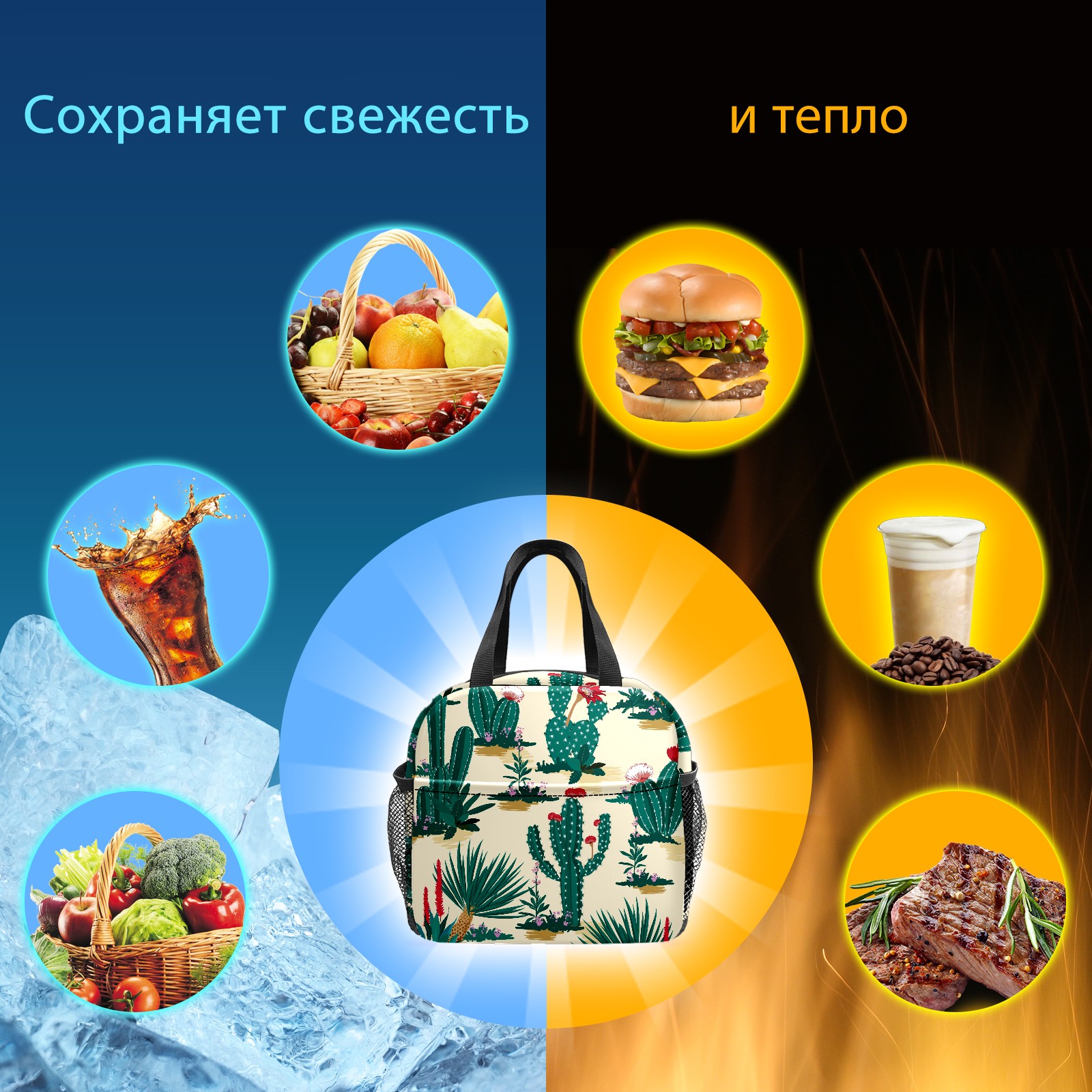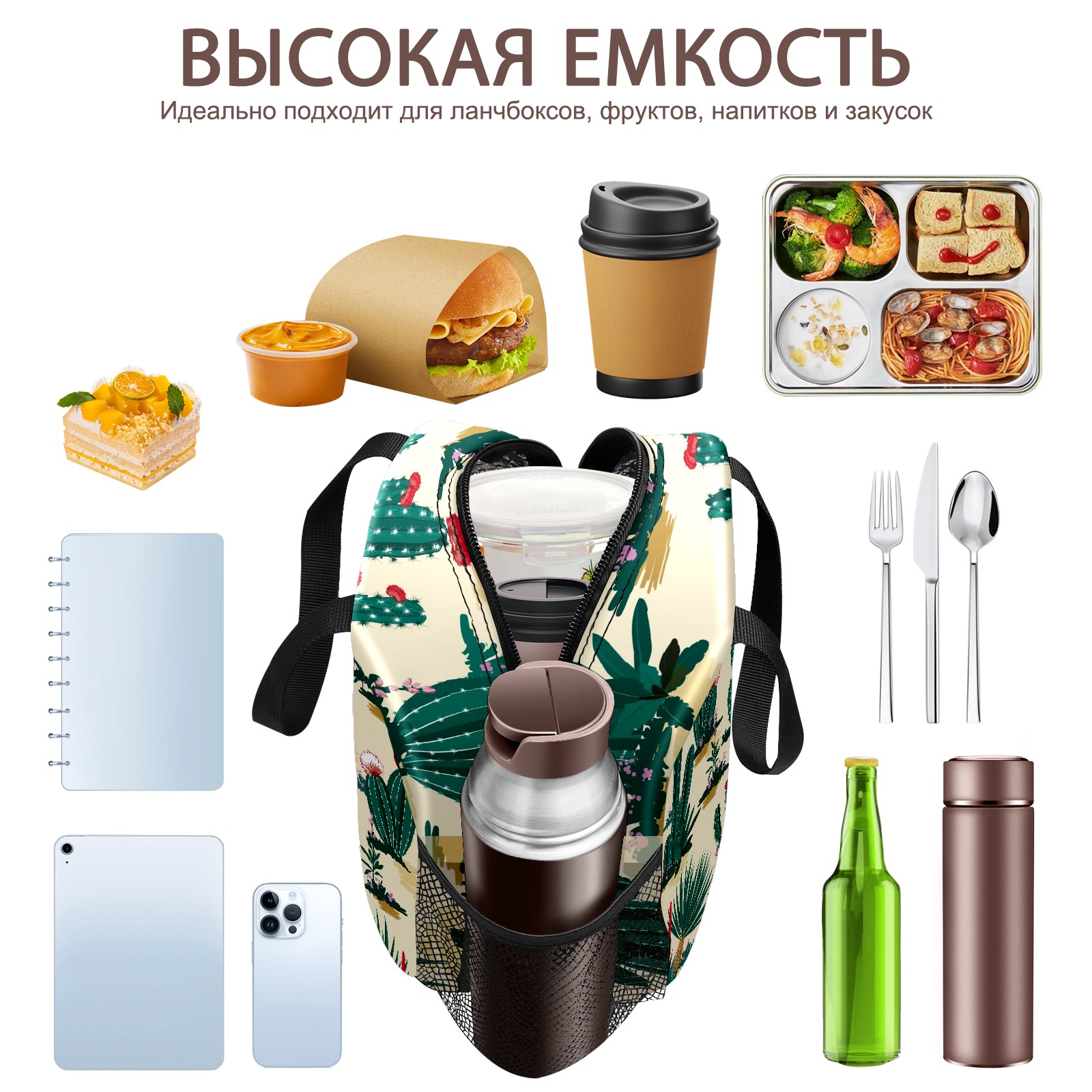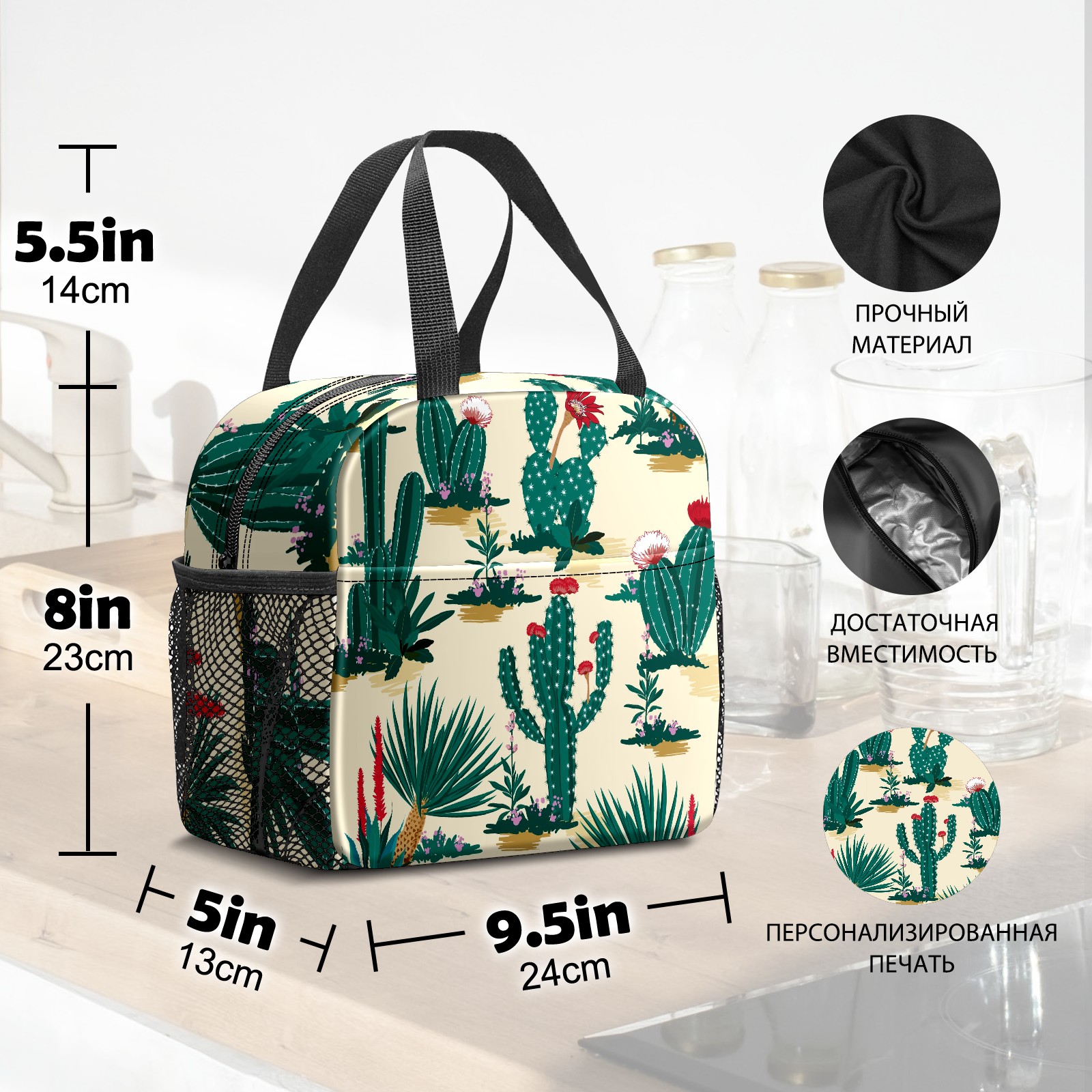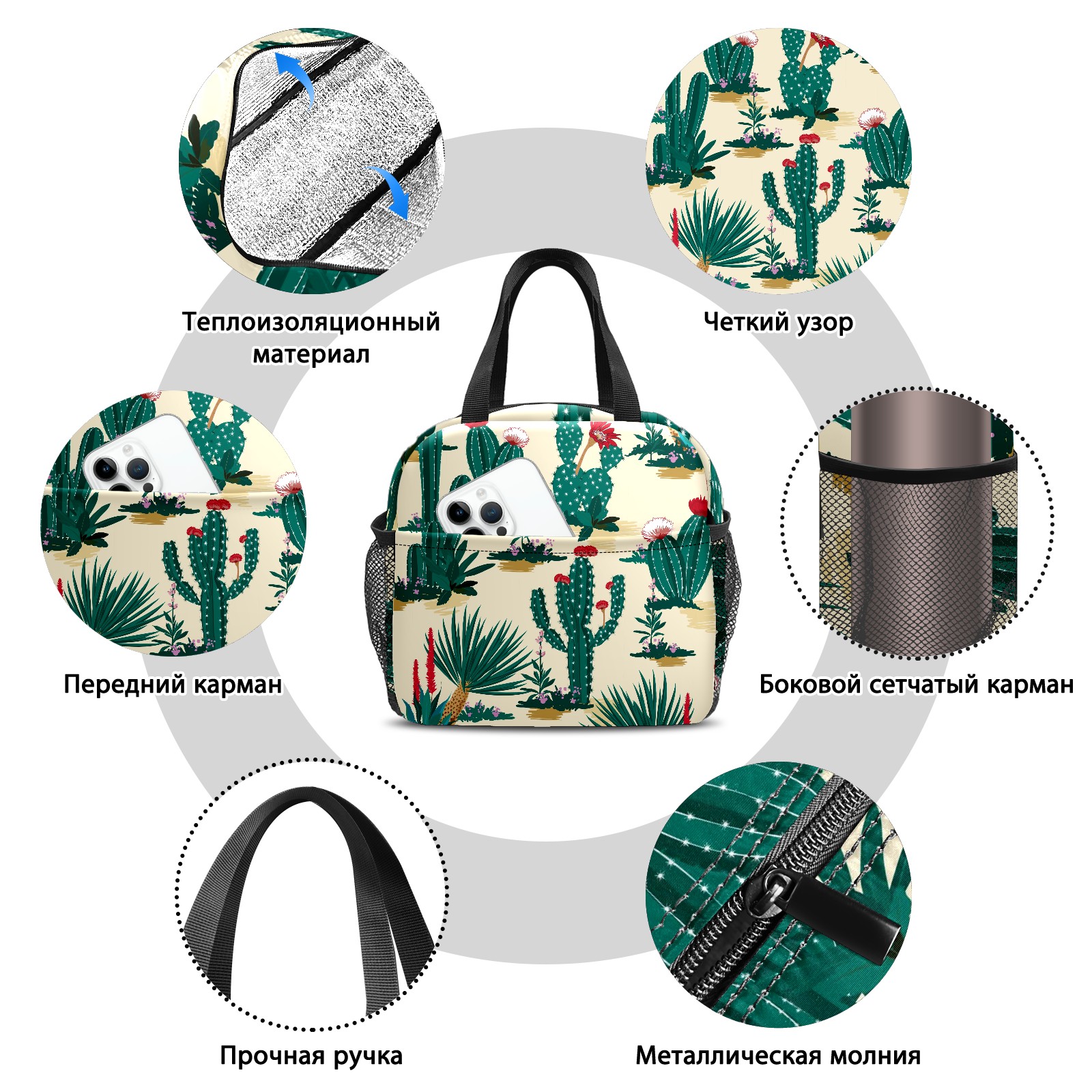 Lunch Bag,Lunch Box for Women Men,Cactus Flower Reusable Insulated Lunch Tote,Small Leakproof Cute Lunch Cooler with High Capacity for Work,Picnic,Camping