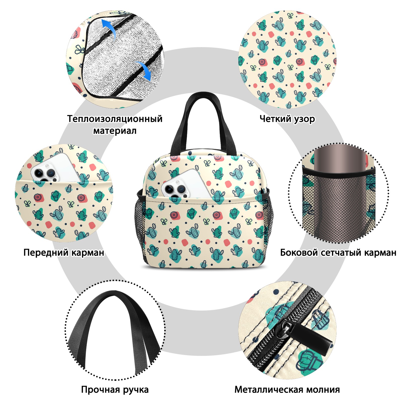 Lunch Bag,Lunch Box for Women Men,Cacti Pattern Reusable Insulated Lunch Tote,Small Leakproof Cute Lunch Cooler with High Capacity for Work,Picnic,Camping