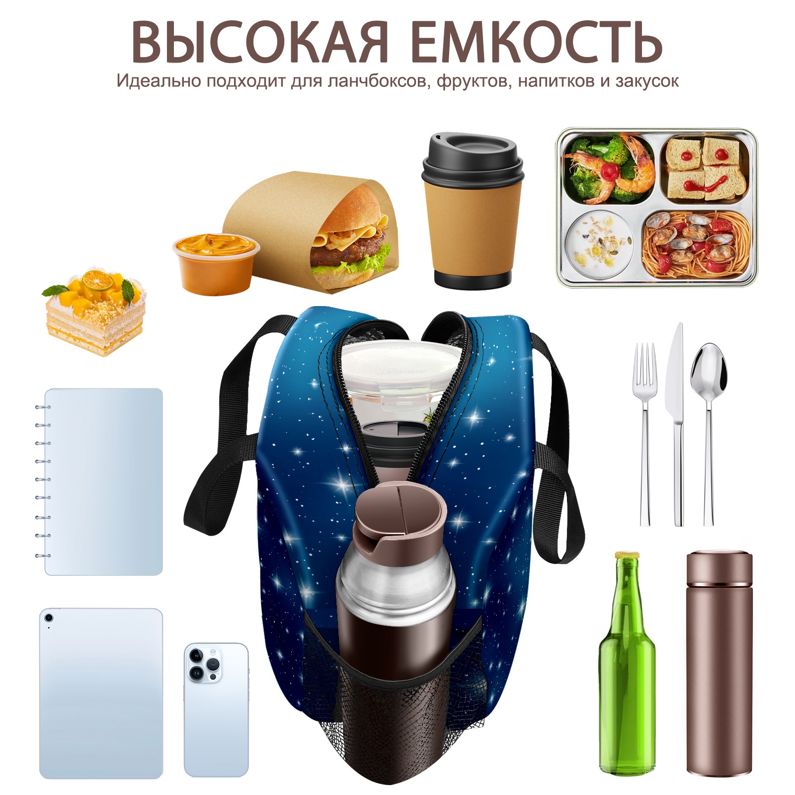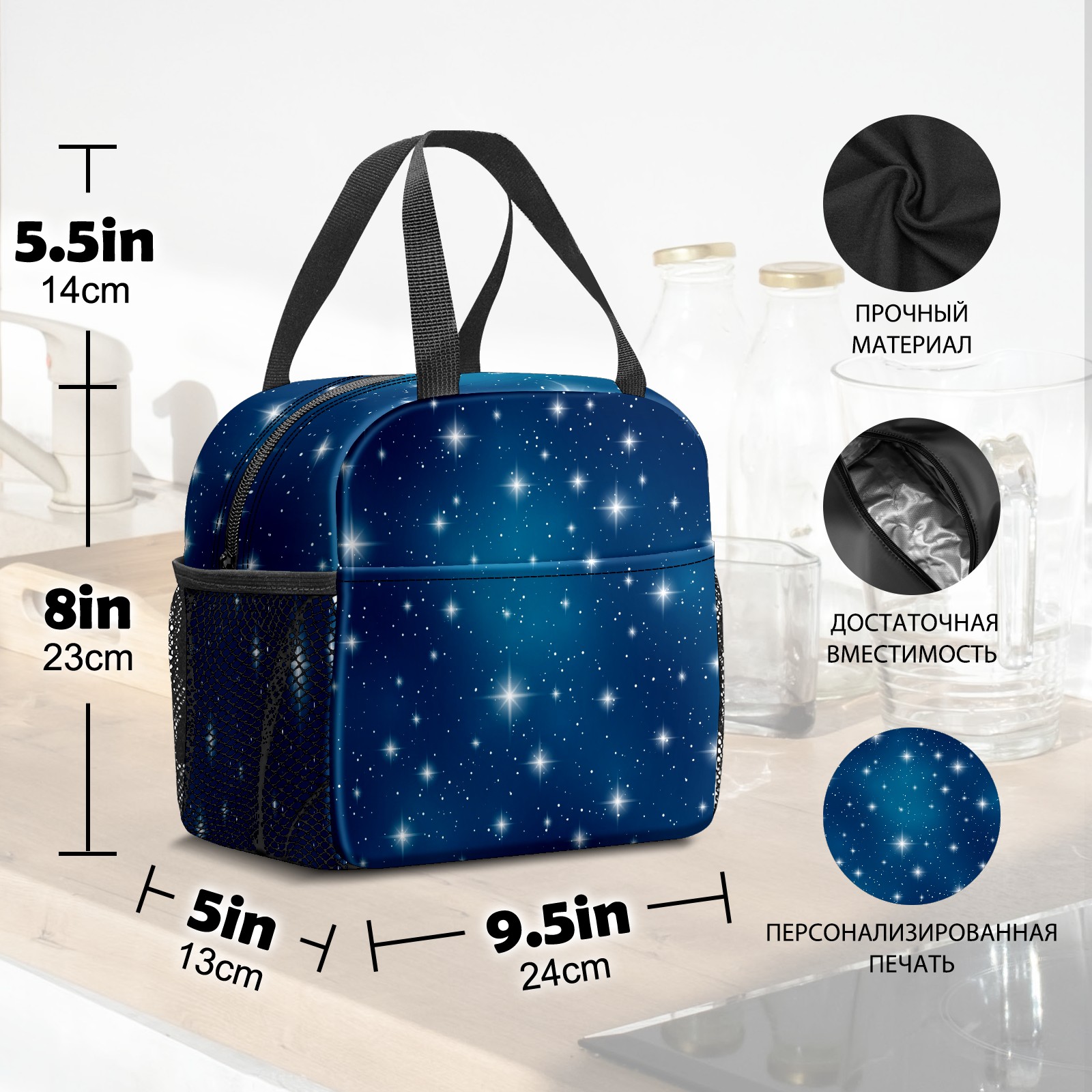 Lunch Bag,Lunch Box for Women Men,Blue Twinkle Sky Reusable Insulated Lunch Tote,Small Leakproof Cute Lunch Cooler with High Capacity for Work,Picnic,Camping