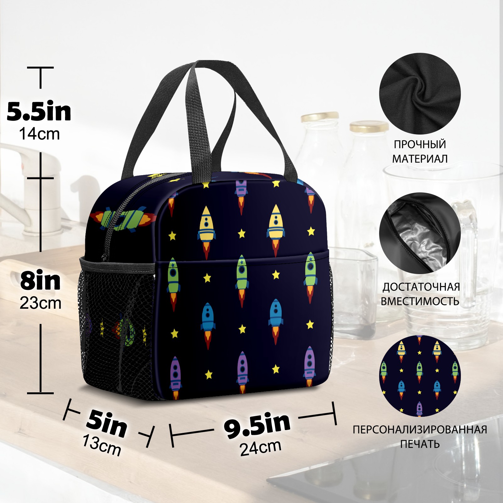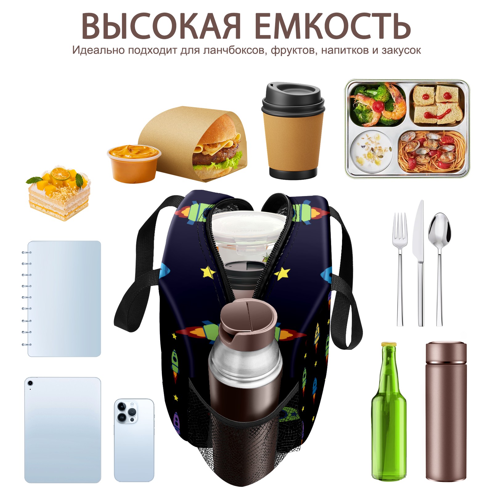 Lunch Bag,Lunch Box for Women Men,Blue Spaceship Pattern Reusable Insulated Lunch Tote,Small Leakproof Cute Lunch Cooler with High Capacity for Work,Picnic,Camping