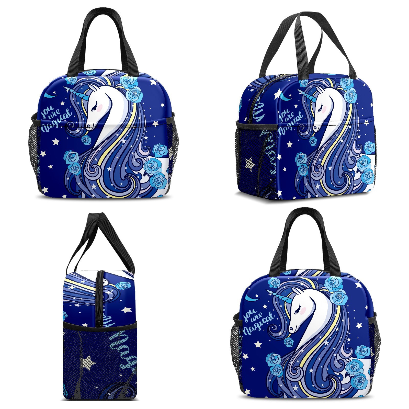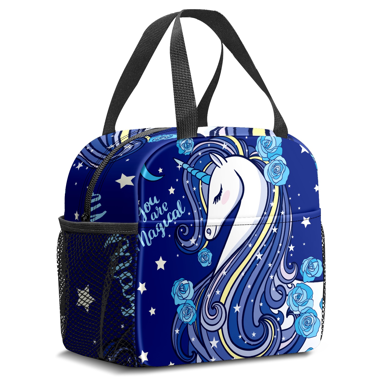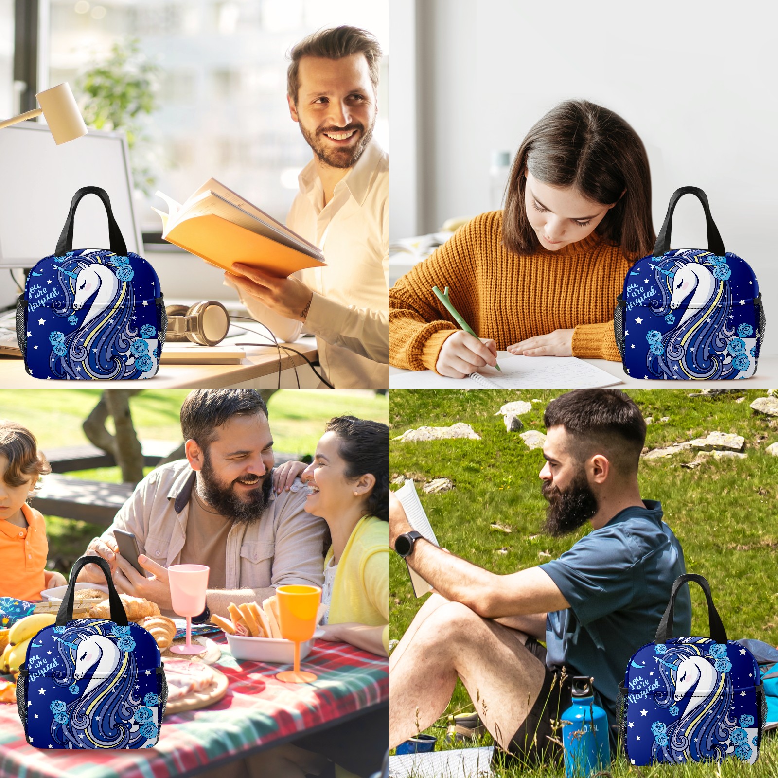 Lunch Bag,Lunch Box for Women Men,Blue Rose Unicorn Reusable Insulated Lunch Tote,Small Leakproof Cute Lunch Cooler with High Capacity for Work,Picnic,Camping
