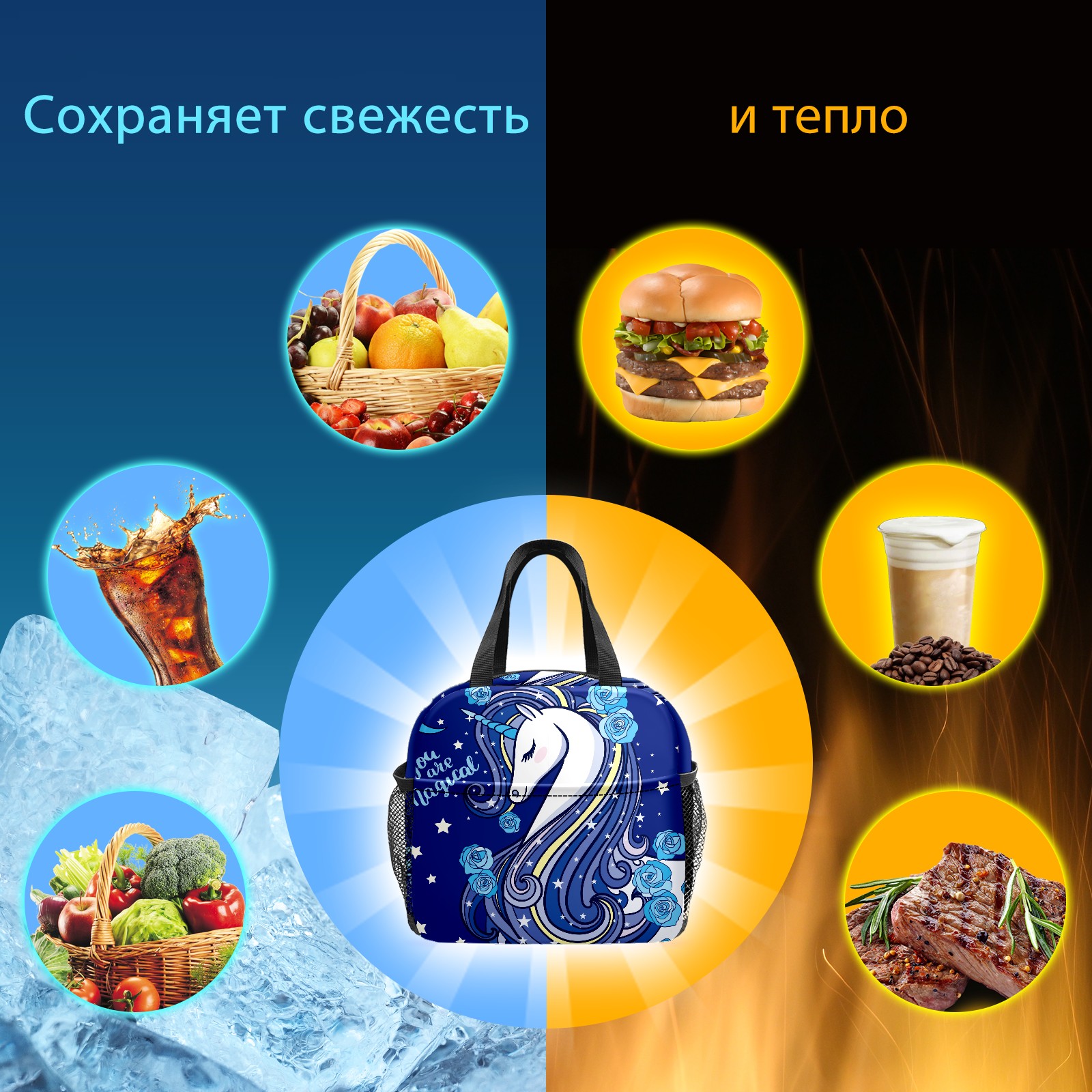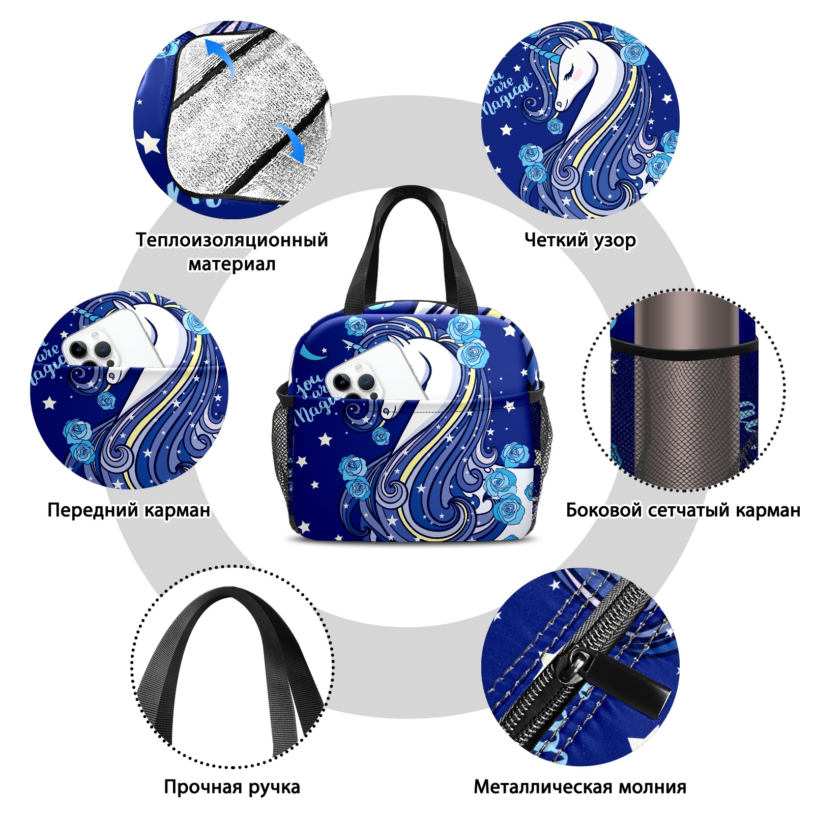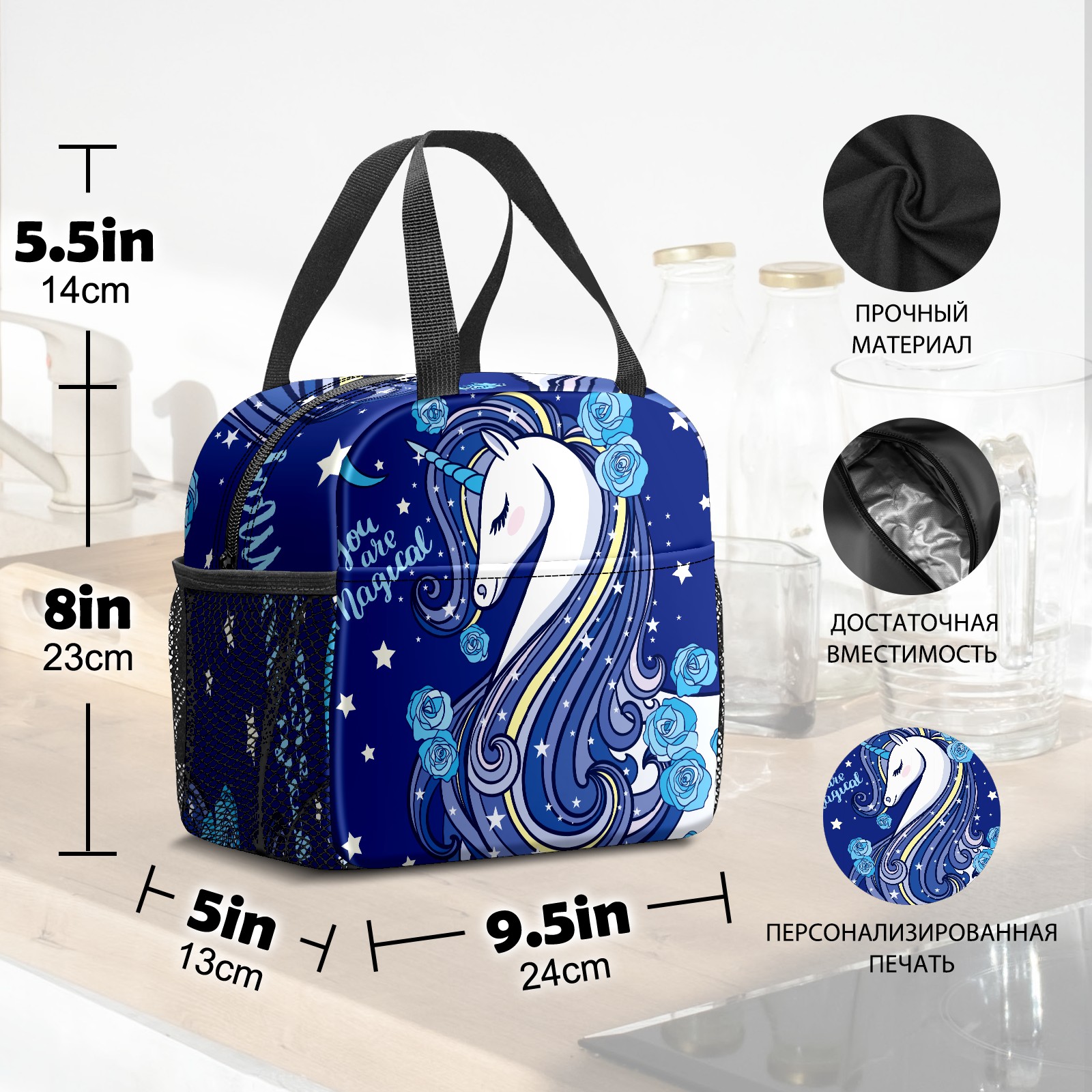 Lunch Bag,Lunch Box for Women Men,Blue Rose Unicorn Reusable Insulated Lunch Tote,Small Leakproof Cute Lunch Cooler with High Capacity for Work,Picnic,Camping