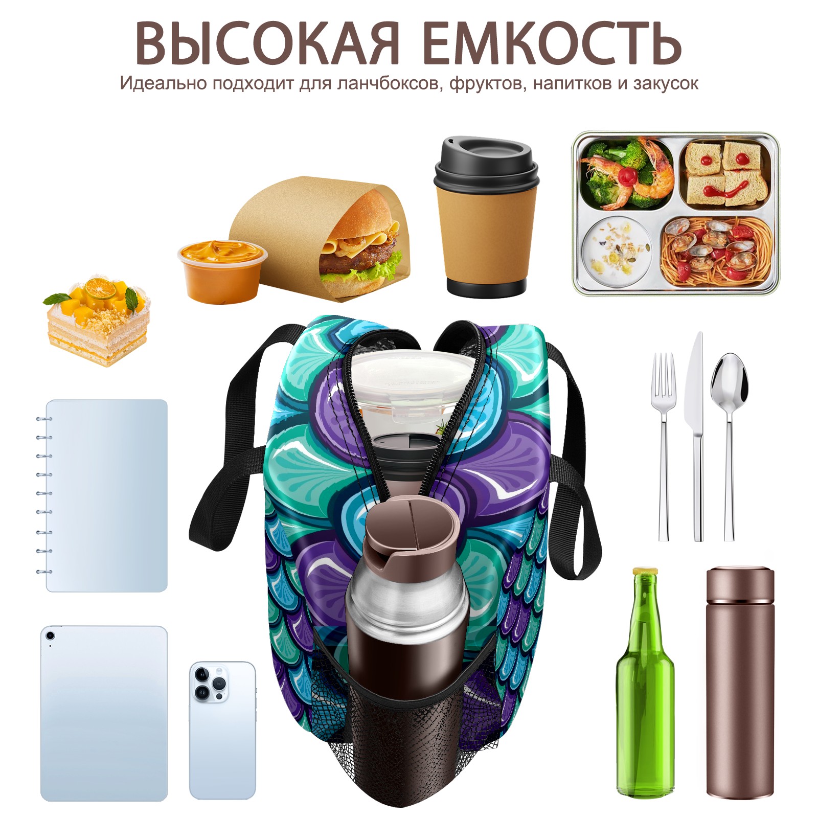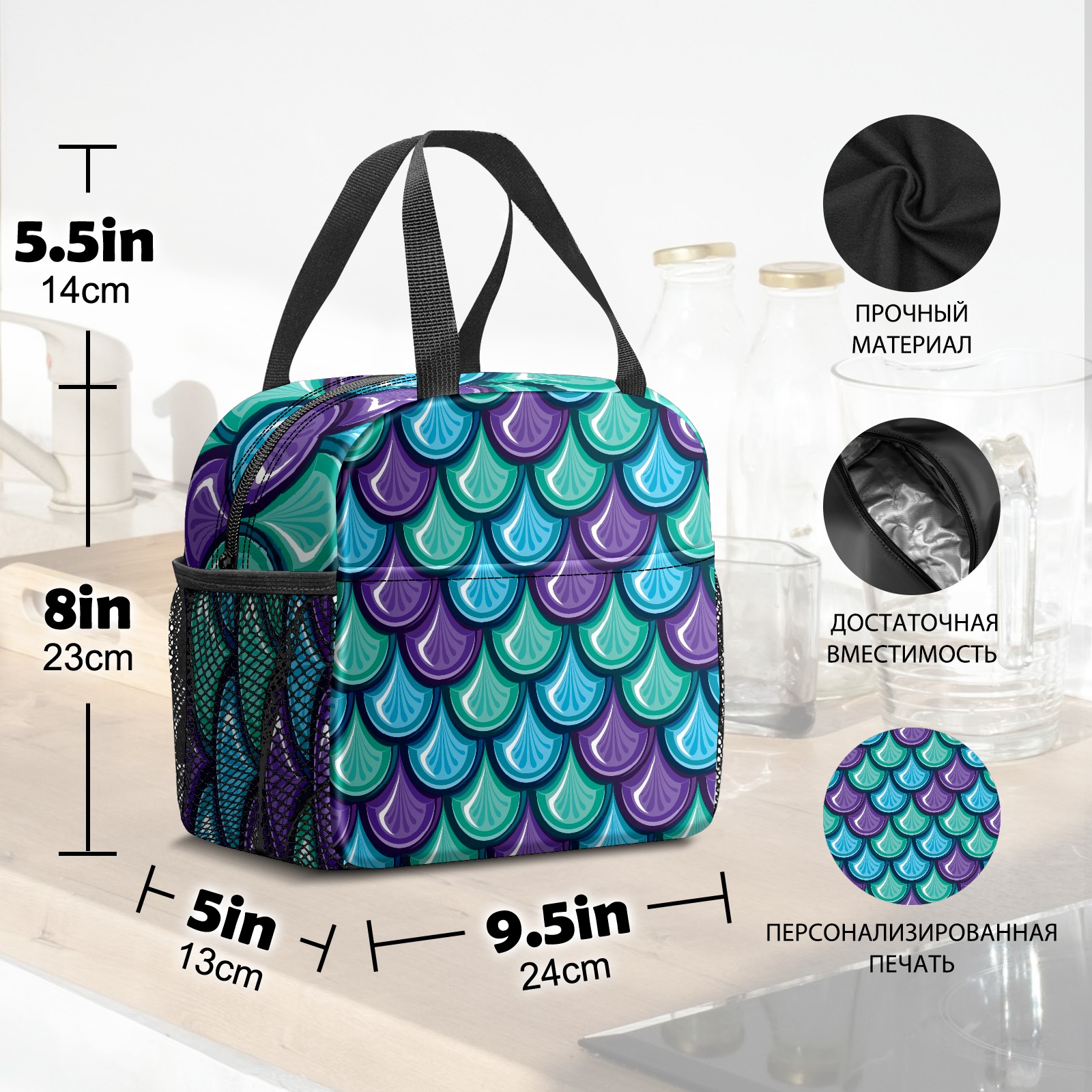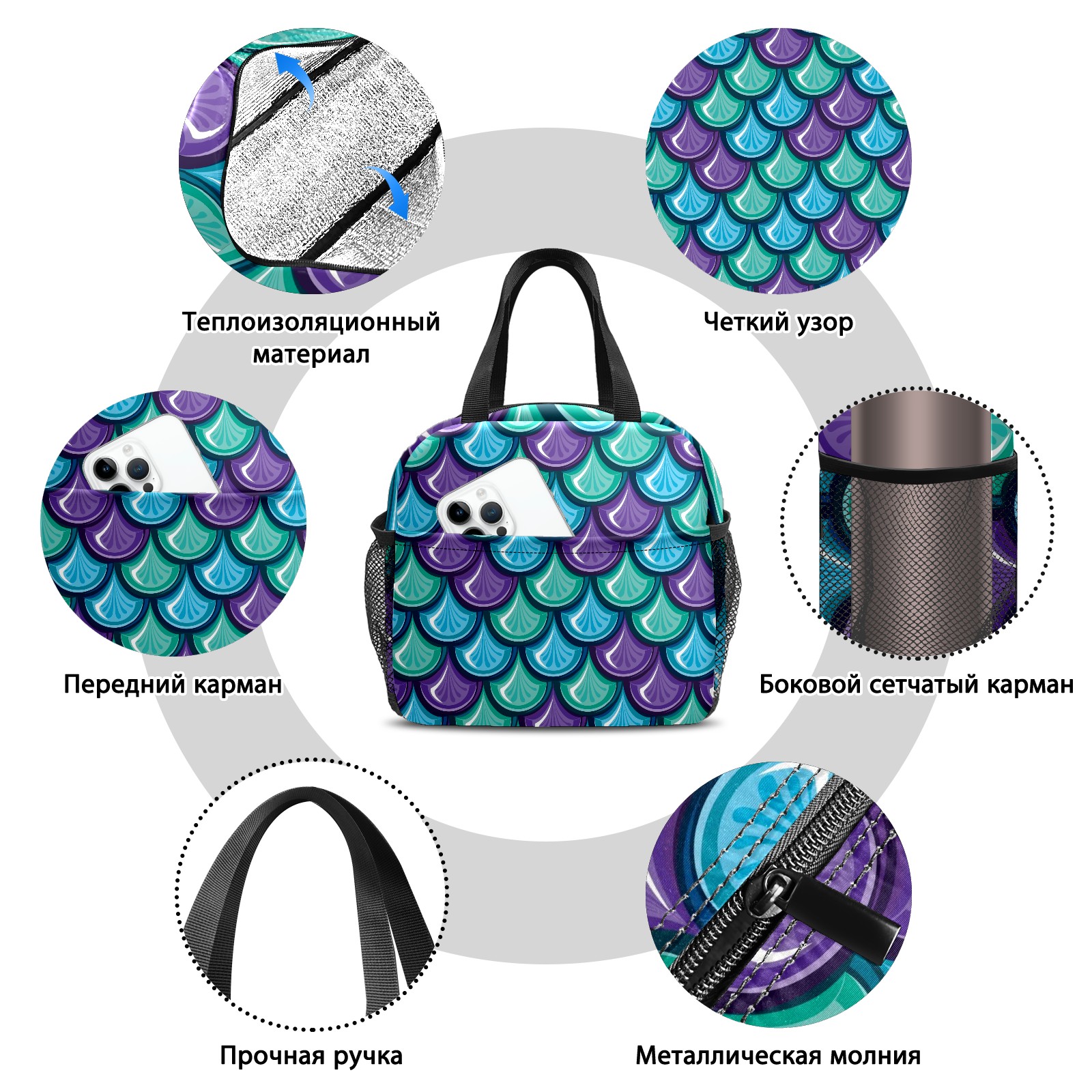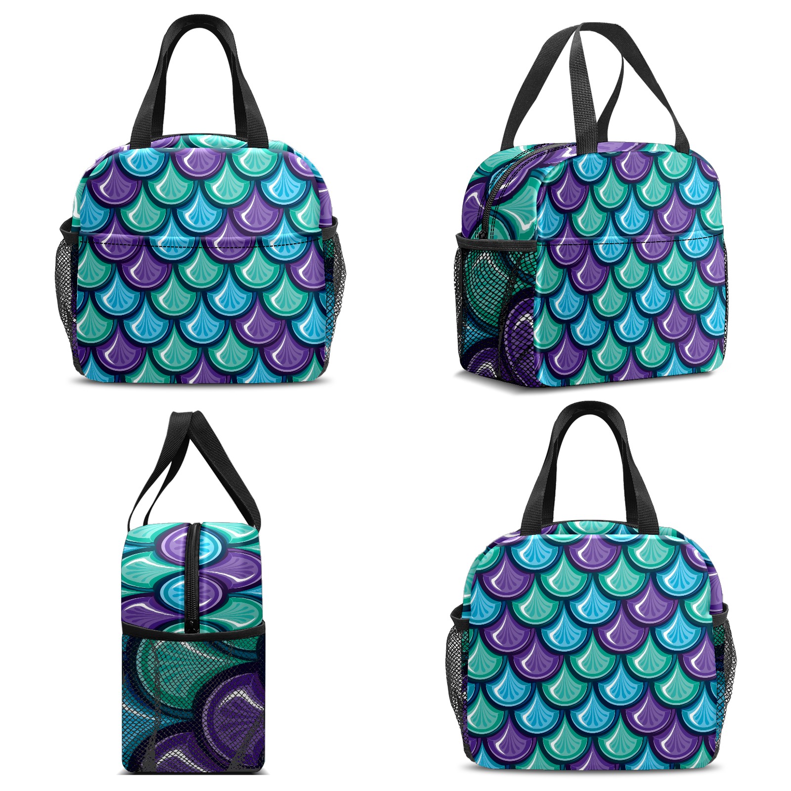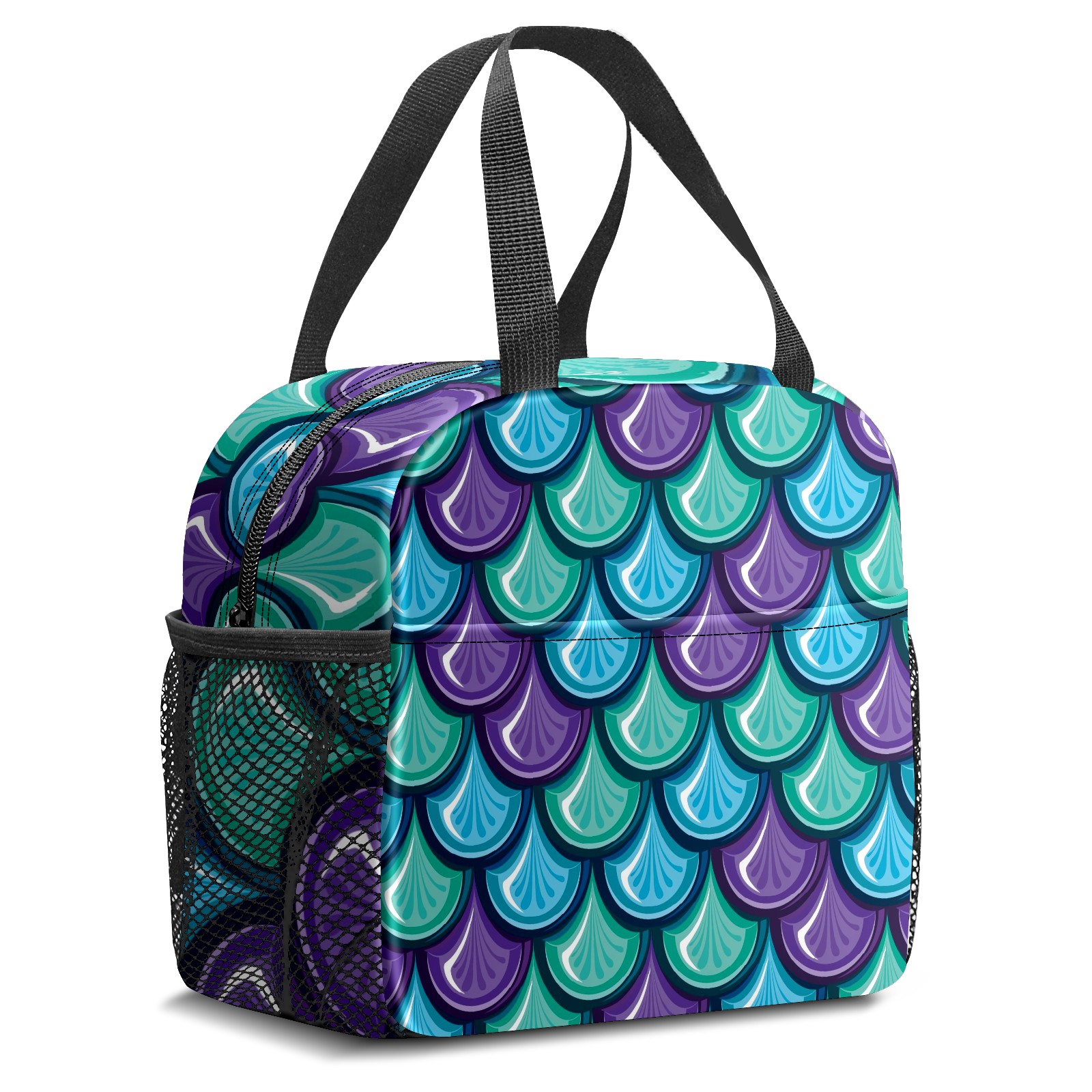 Lunch Bag,Lunch Box for Women Men,Blue Purple Green Mermaid Scale Reusable Insulated Lunch Tote,Small Leakproof Cute Lunch Cooler with High Capacity for Work,Picnic,Camping
