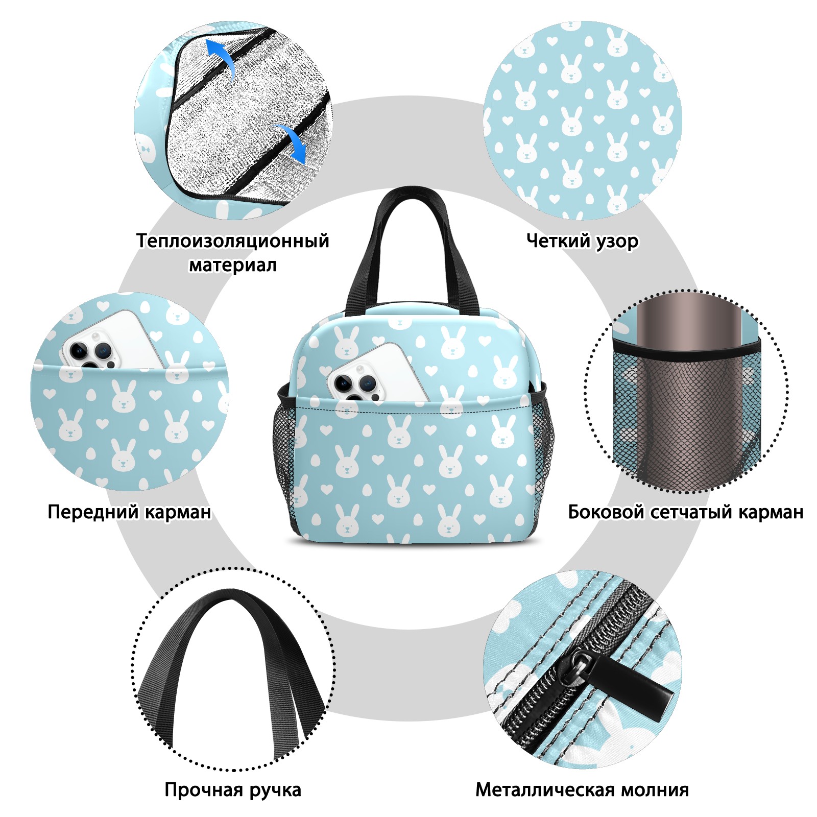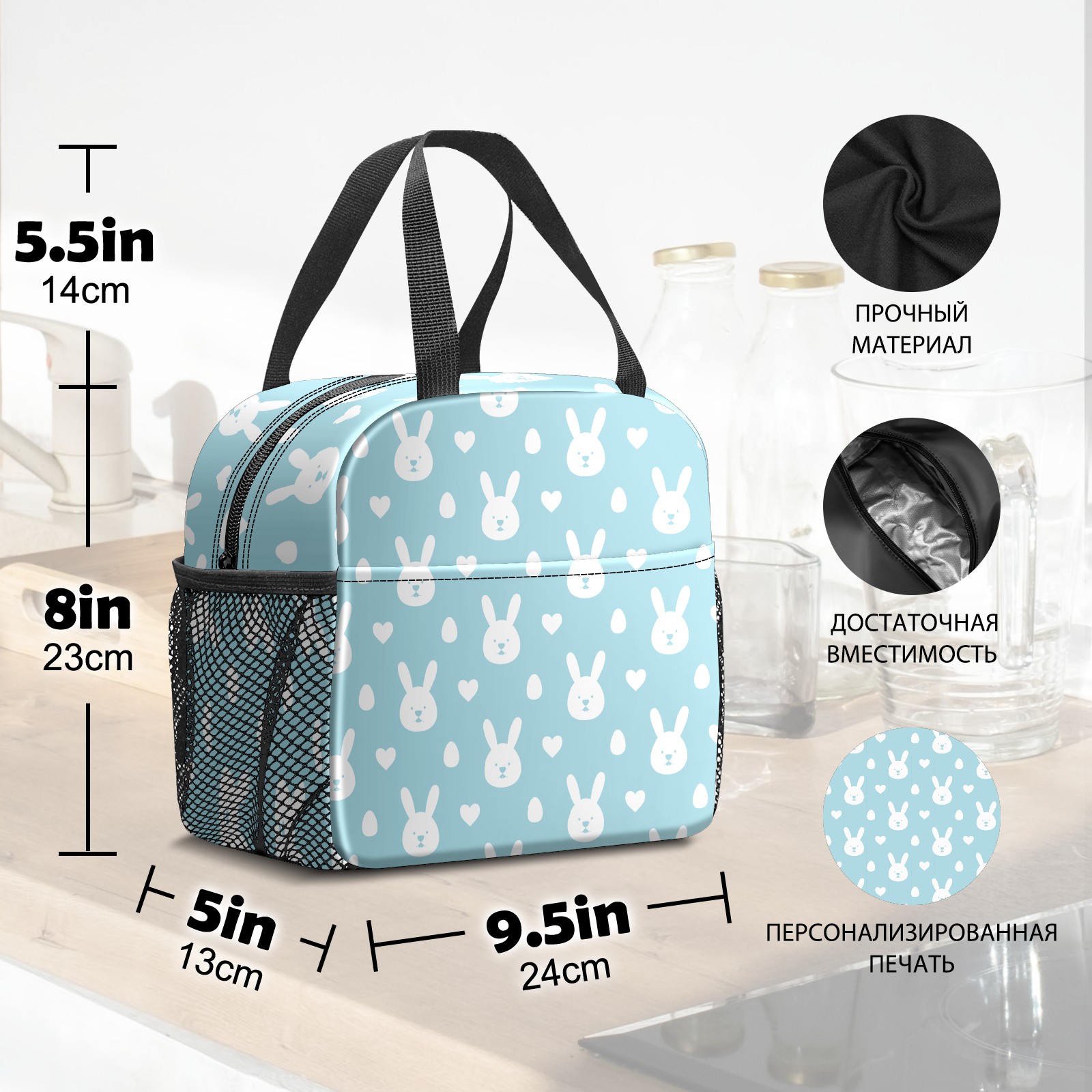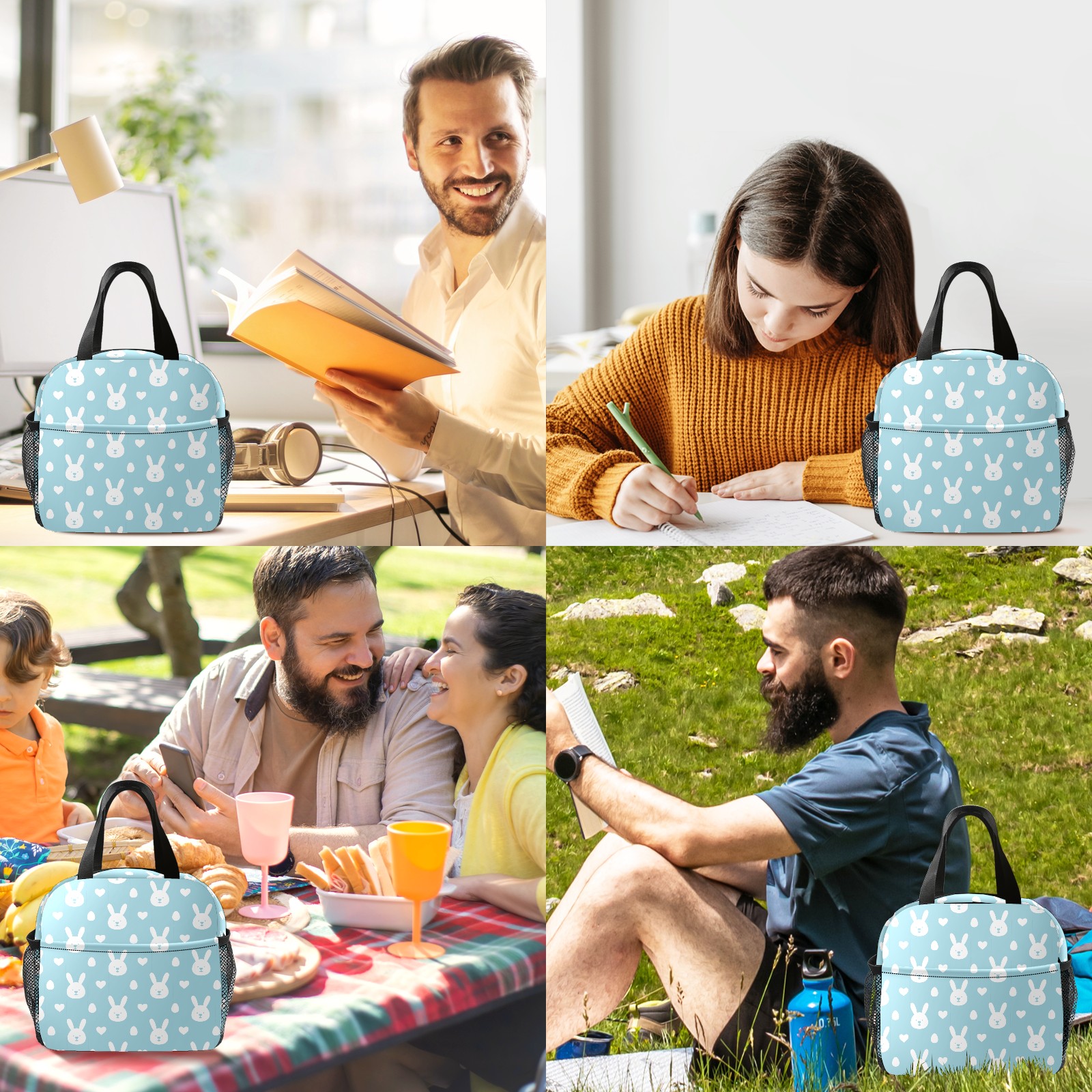 Lunch Bag,Lunch Box for Women Men,Blue Easter Bunny Reusable Insulated Lunch Tote,Small Leakproof Cute Lunch Cooler with High Capacity for Work,Picnic,Camping