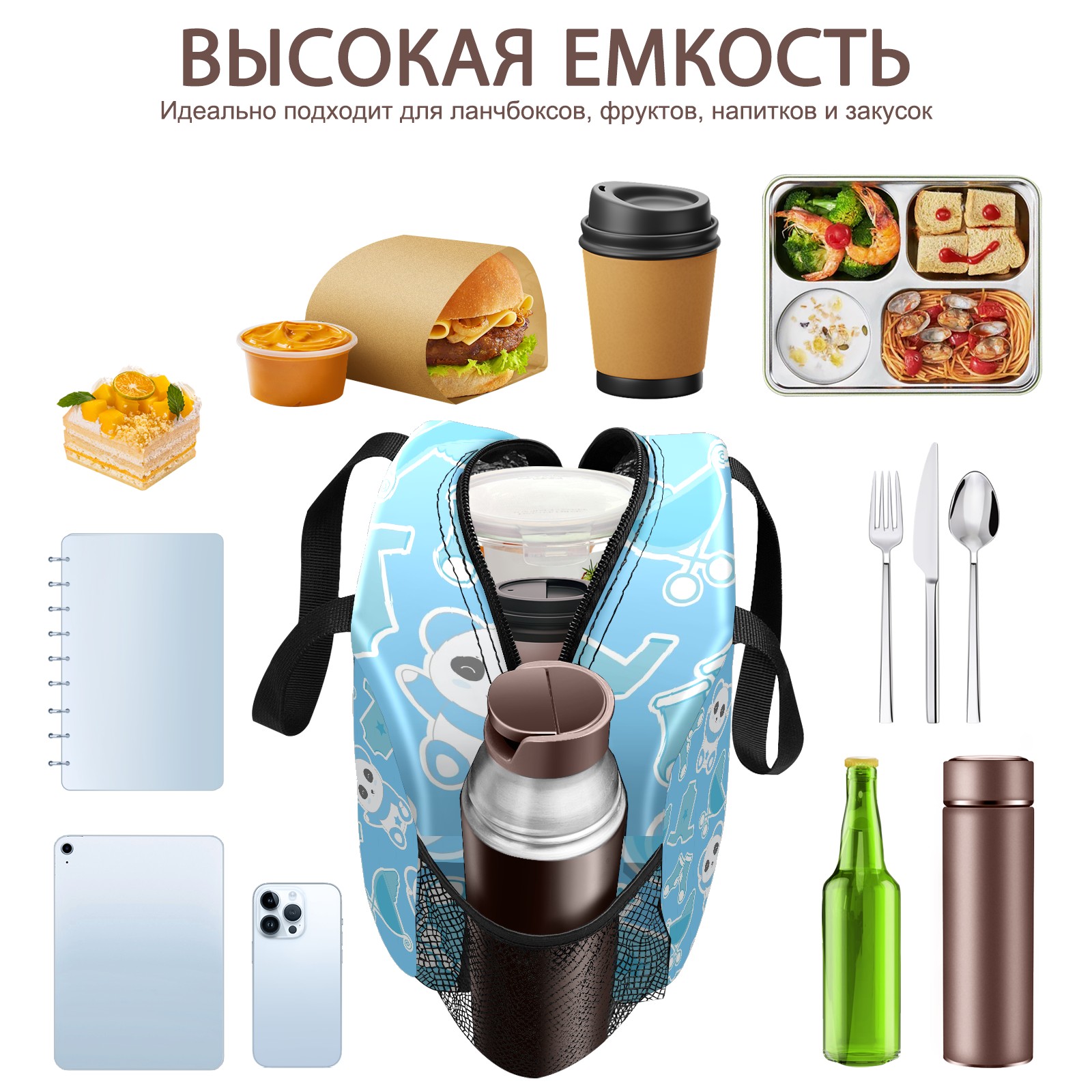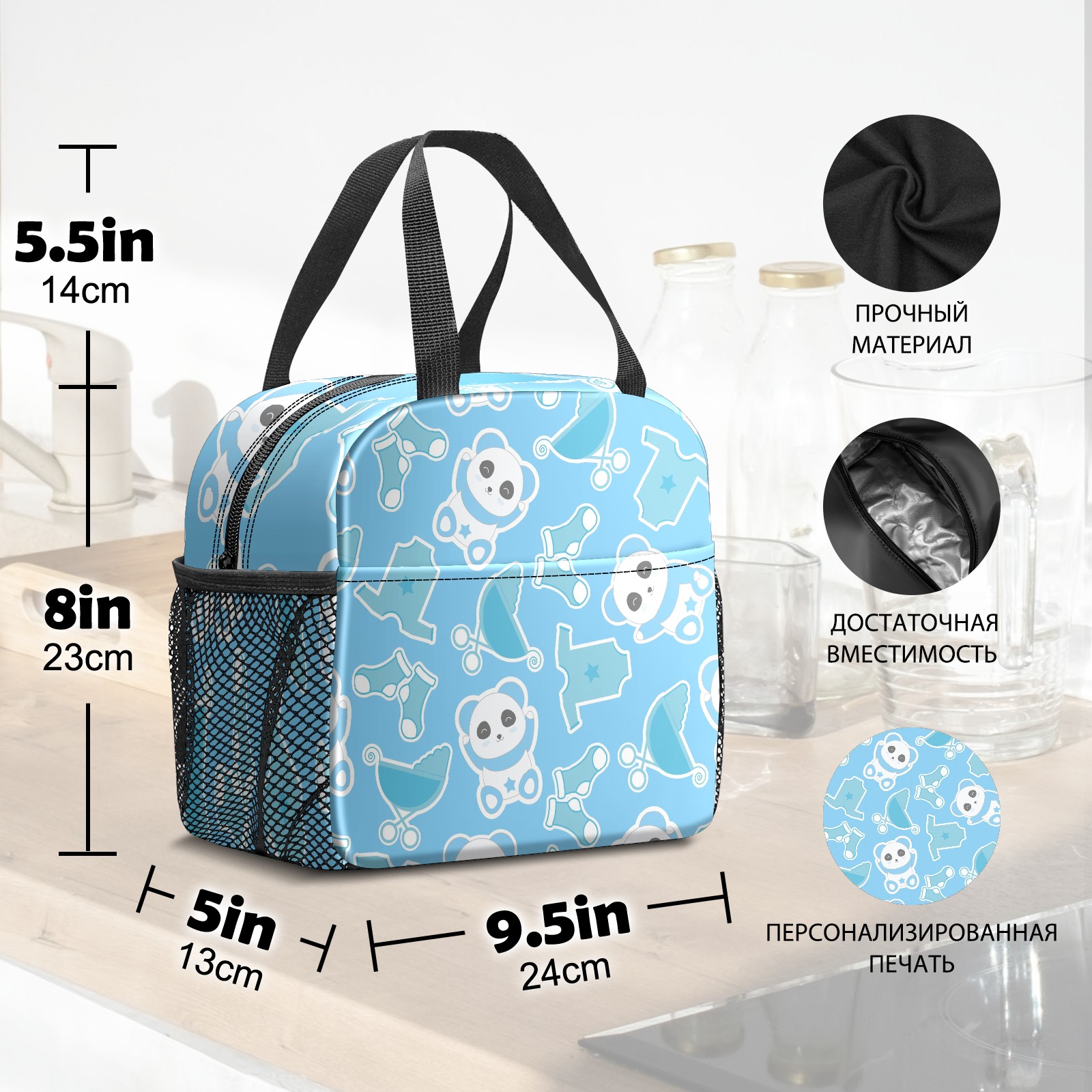 Lunch Bag,Lunch Box for Women Men,Blue Panda Reusable Insulated Lunch Tote,Small Leakproof Cute Lunch Cooler with High Capacity for Work,Picnic,Camping