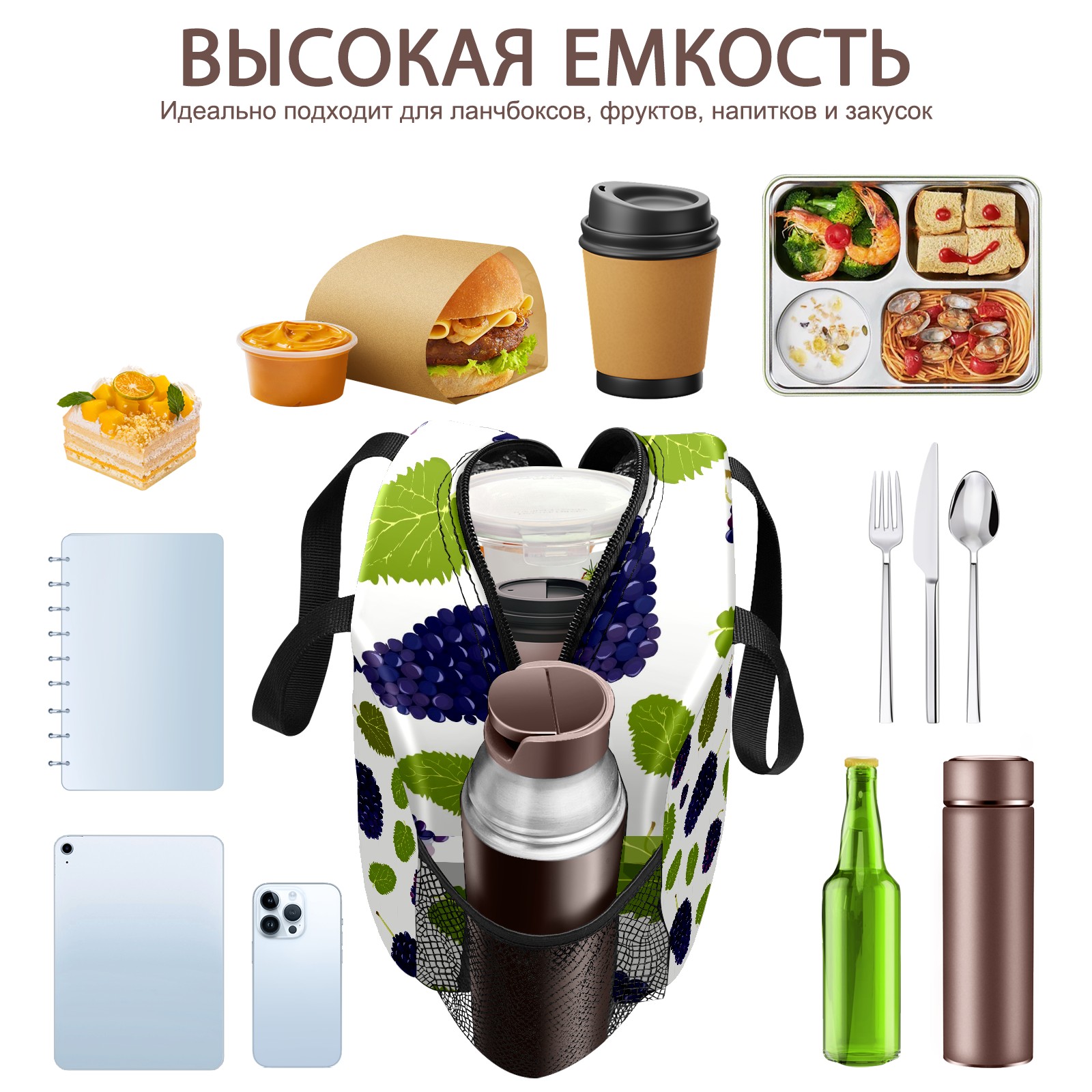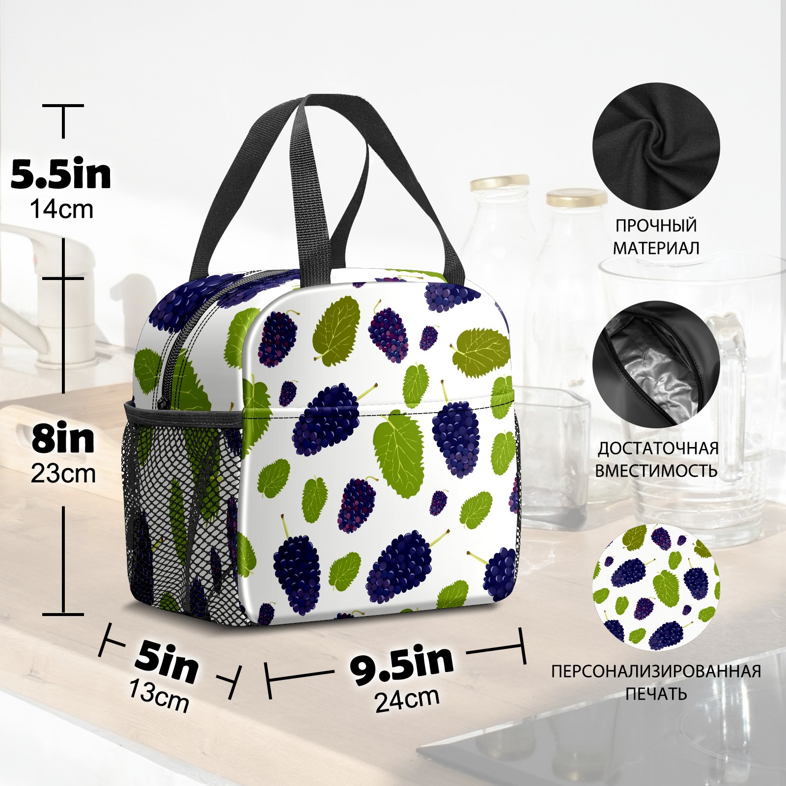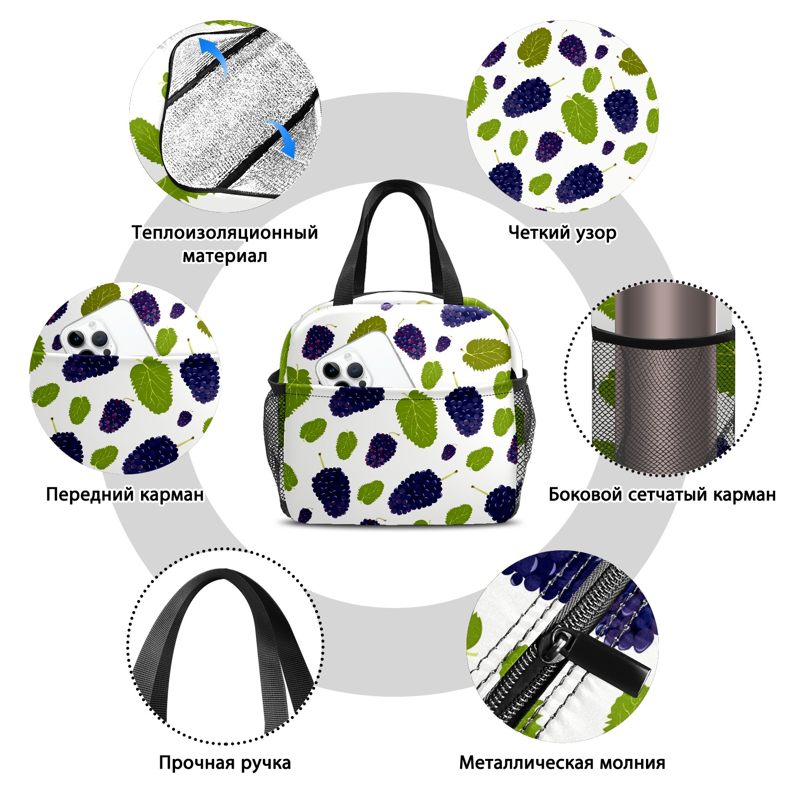 Lunch Bag,Lunch Box for Women Men,桑の実 葉 かわいい Reusable Insulated Lunch Tote,Small Leakproof Cute Lunch Cooler with High Capacity for Work,Picnic,Camping