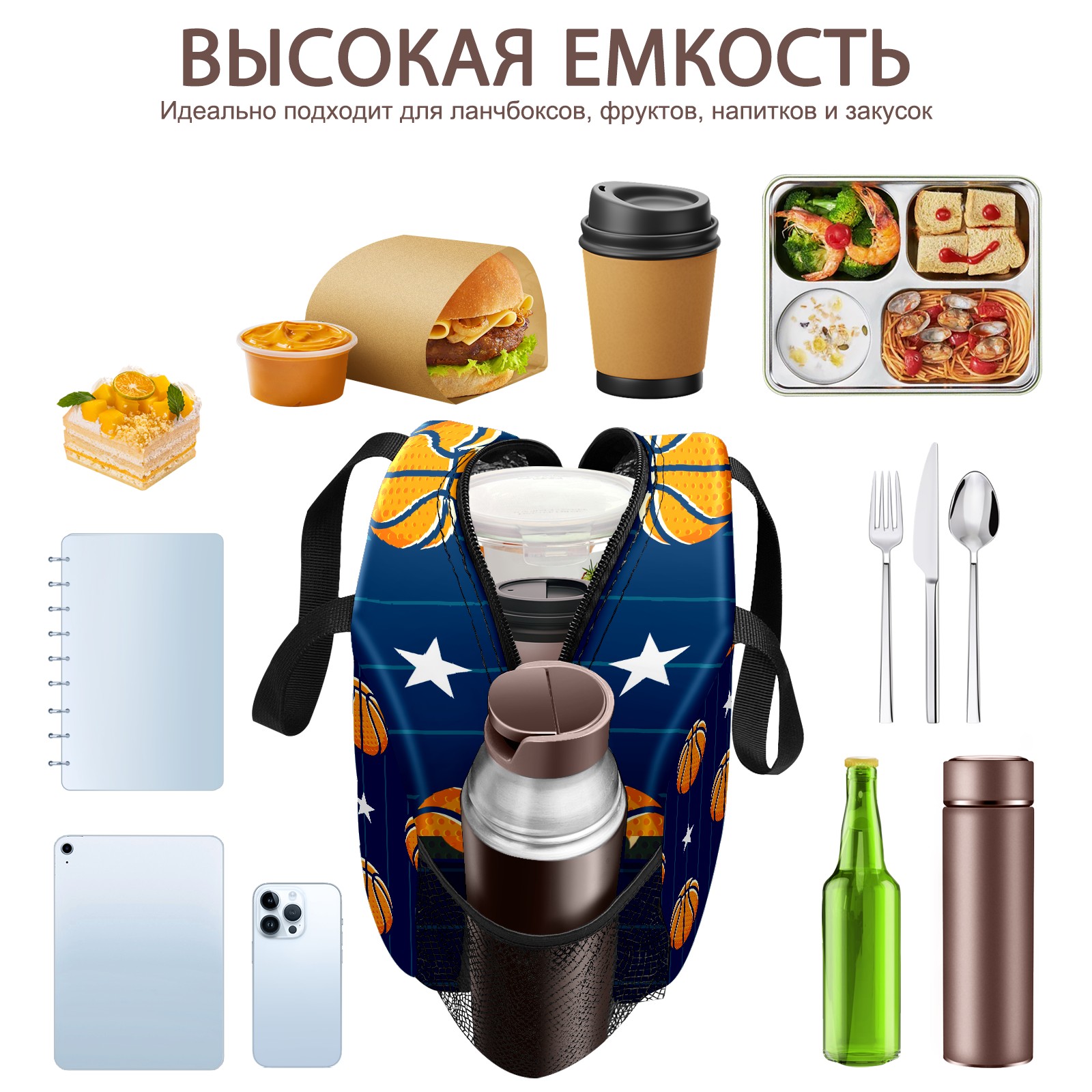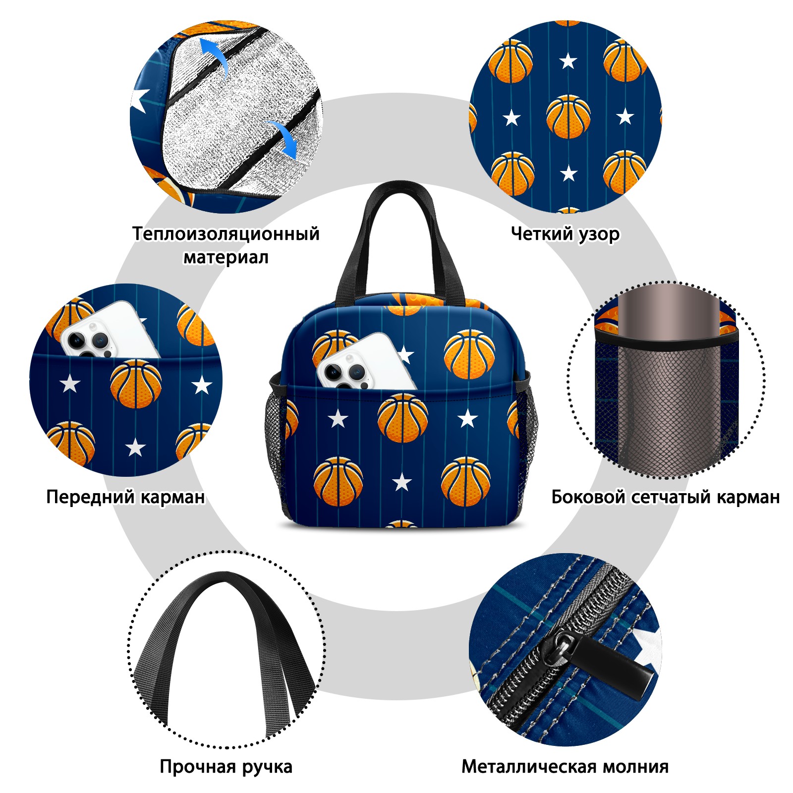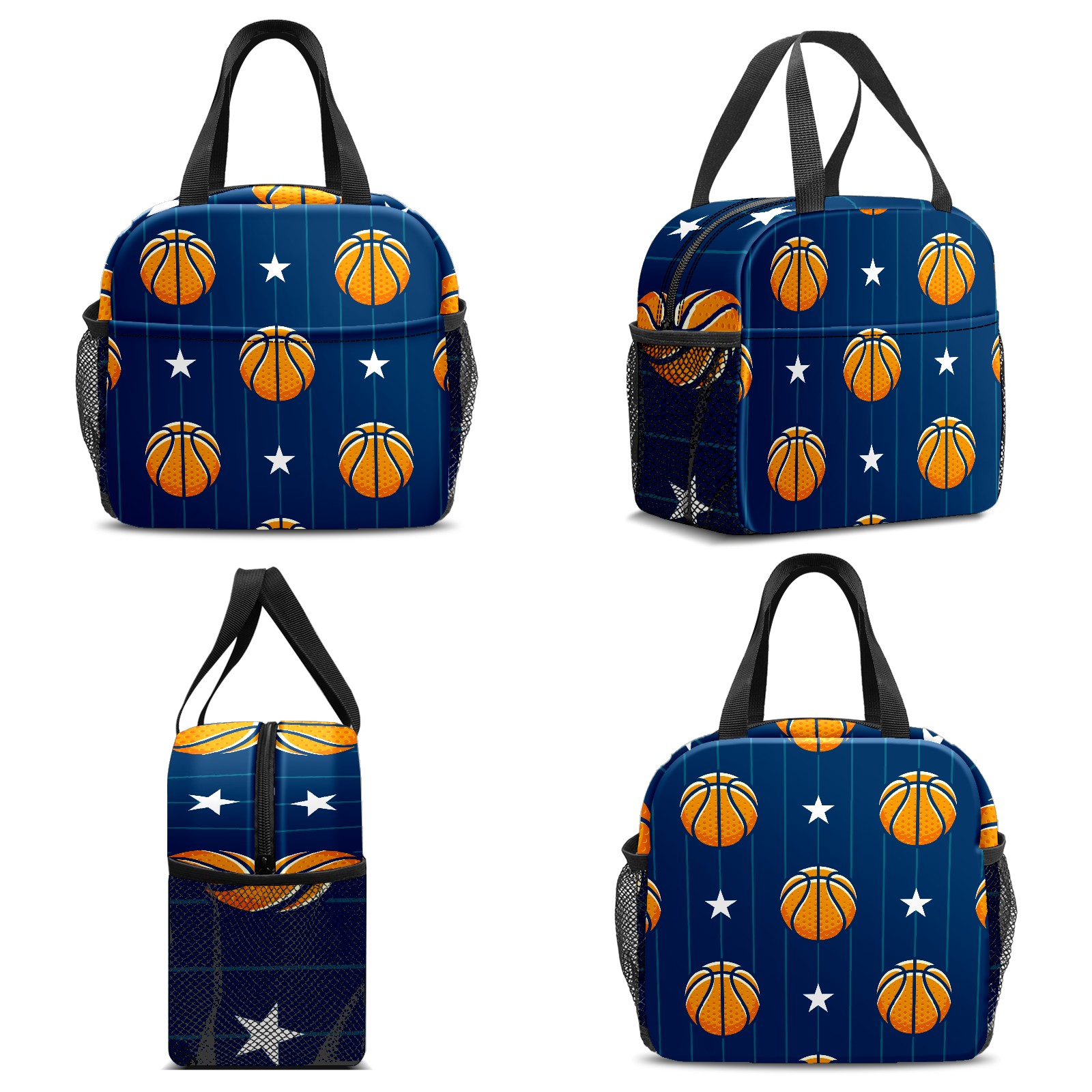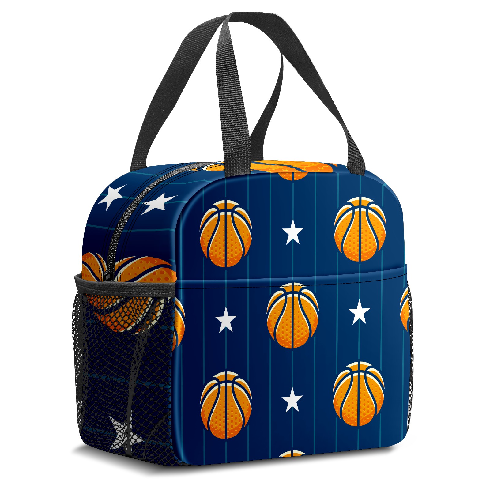Lunch Bag,Lunch Box for Women Men,Basketballs And Stars Reusable Insulated Lunch Tote,Small Leakproof Cute Lunch Cooler with High Capacity for Work,Picnic,Camping