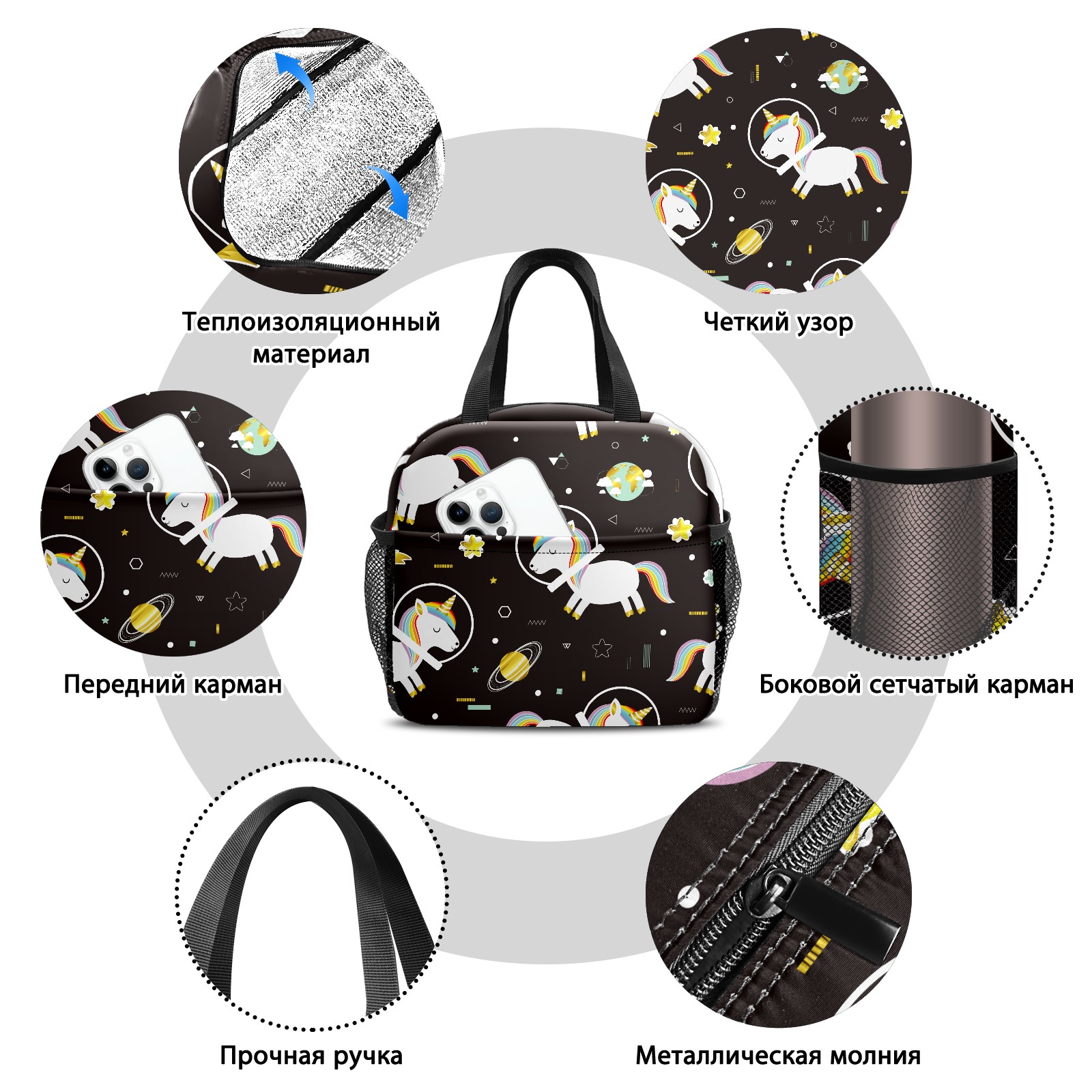 Lunch Bag,Lunch Box for Women Men,Astronaut Unicorns Reusable Insulated Lunch Tote,Small Leakproof Cute Lunch Cooler with High Capacity for Work,Picnic,Camping