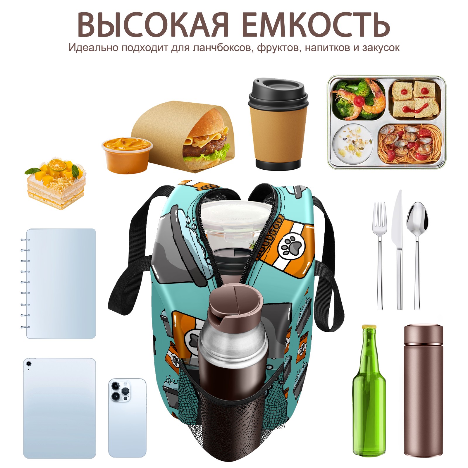 Lunch Bag,Lunch Box for Women Men,足跡 猫 Reusable Insulated Lunch Tote,Small Leakproof Cute Lunch Cooler with High Capacity for Work,Picnic,Camping