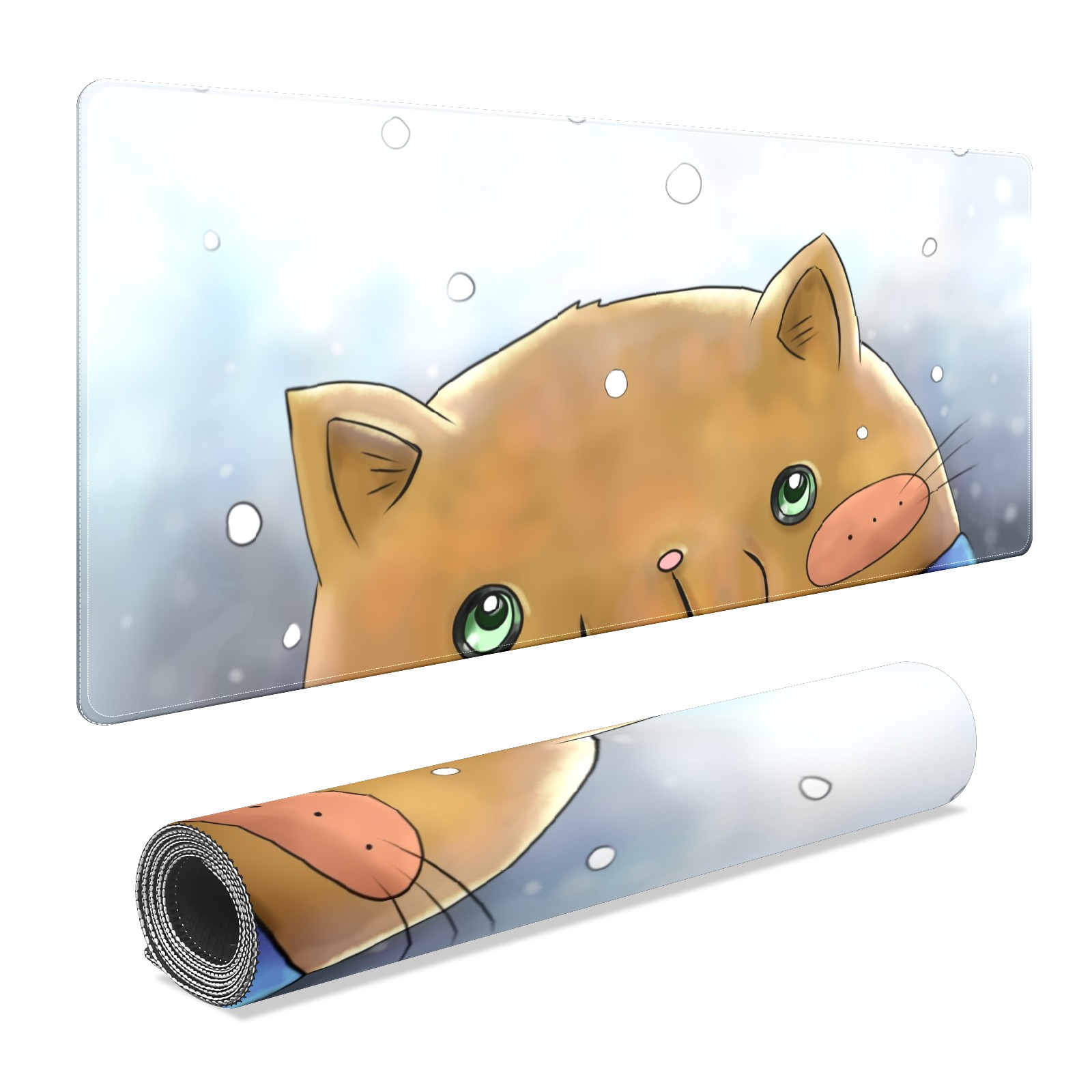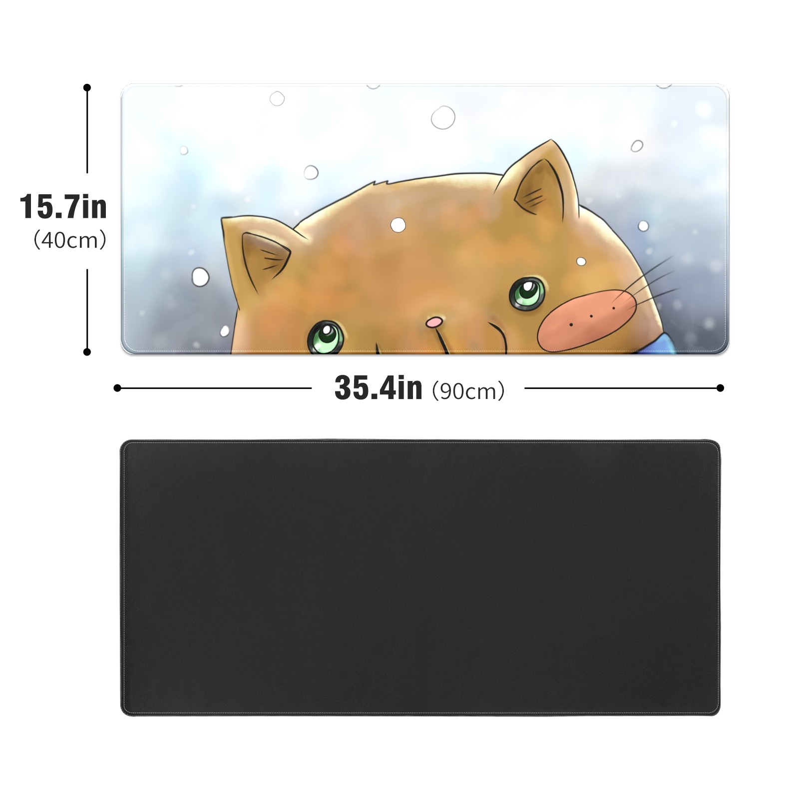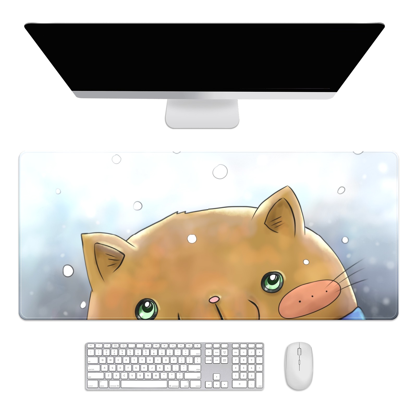 Large Mouse Pad for Desktop, Cute Desk Mat Pad Protector for Work & Gaming, Aesthetic Pretty Anti-Slip Laptop Blotter Cover for Office School Home Supplies, Cartoon Cat Snow Adorable , 35.4inx15.7in
