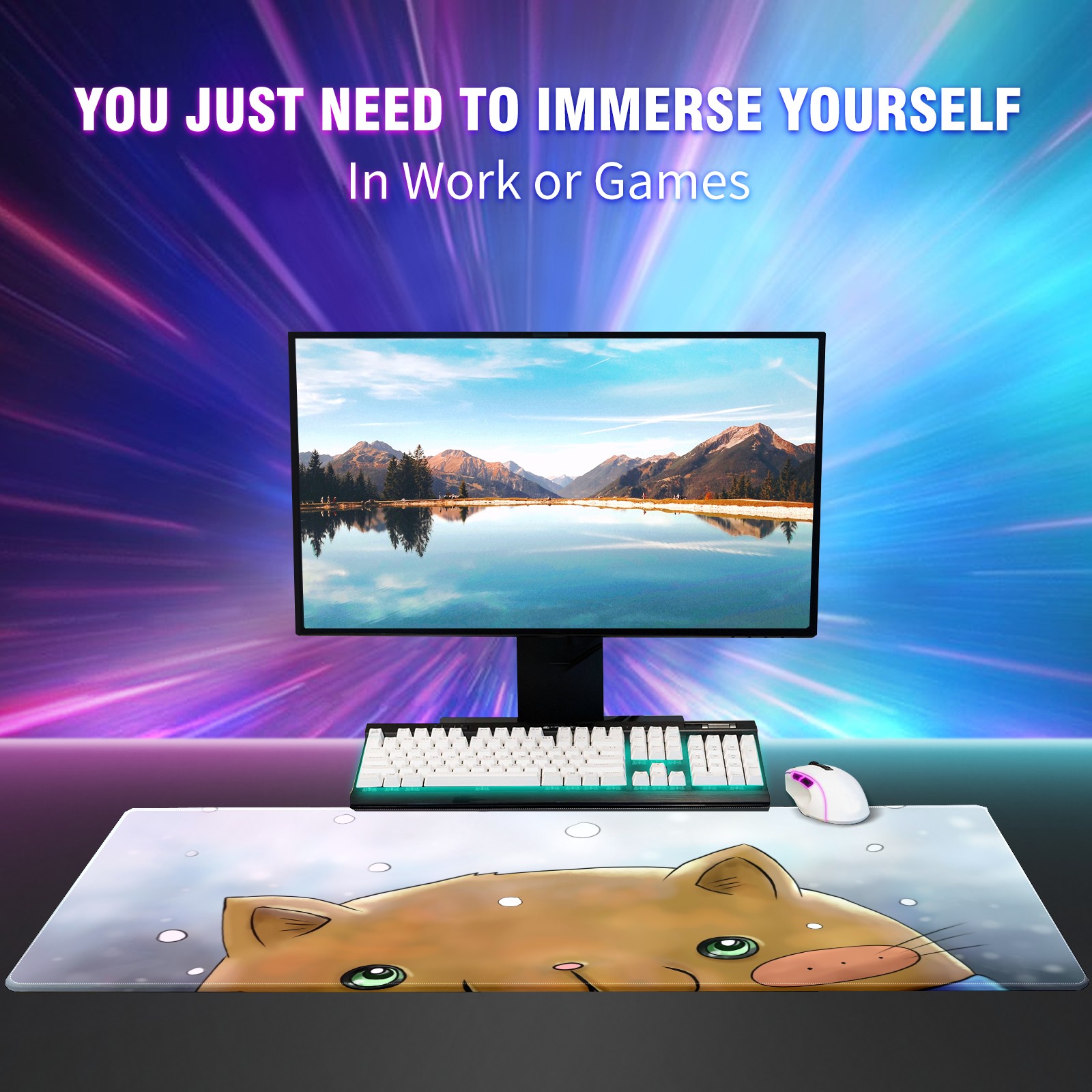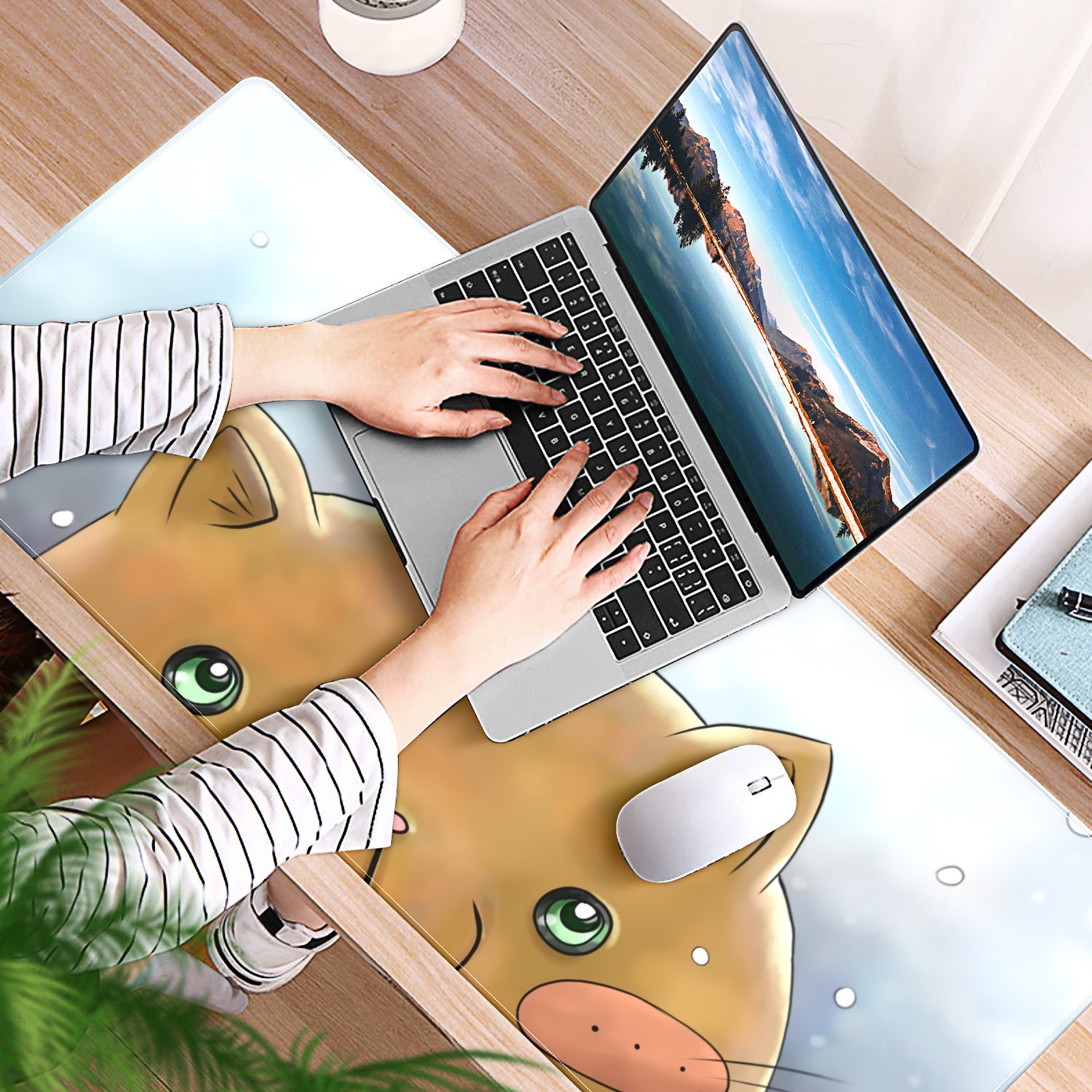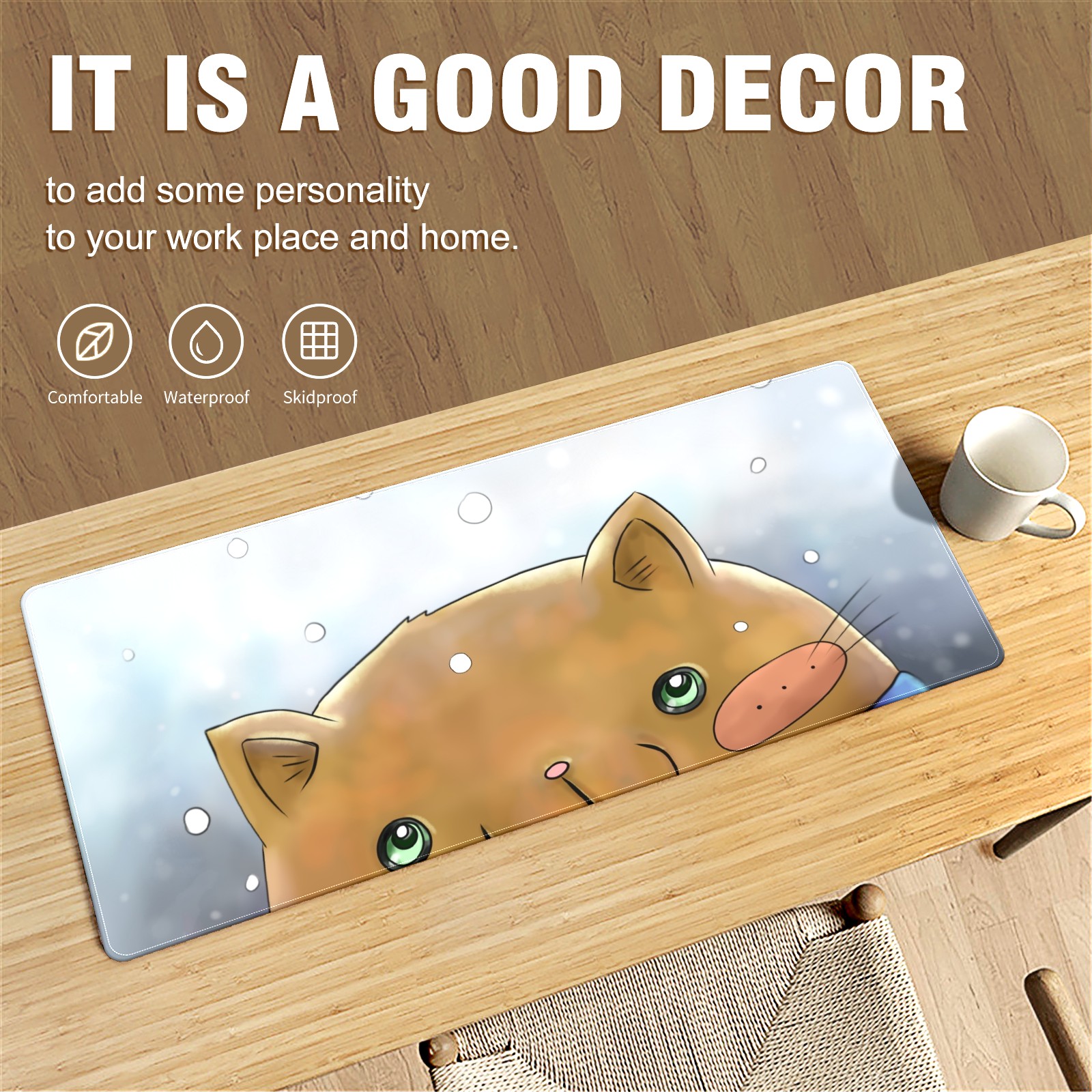 Large Mouse Pad for Desktop, Cute Desk Mat Pad Protector for Work & Gaming, Aesthetic Pretty Anti-Slip Laptop Blotter Cover for Office School Home Supplies, Cartoon Cat Snow Adorable , 35.4inx15.7in
