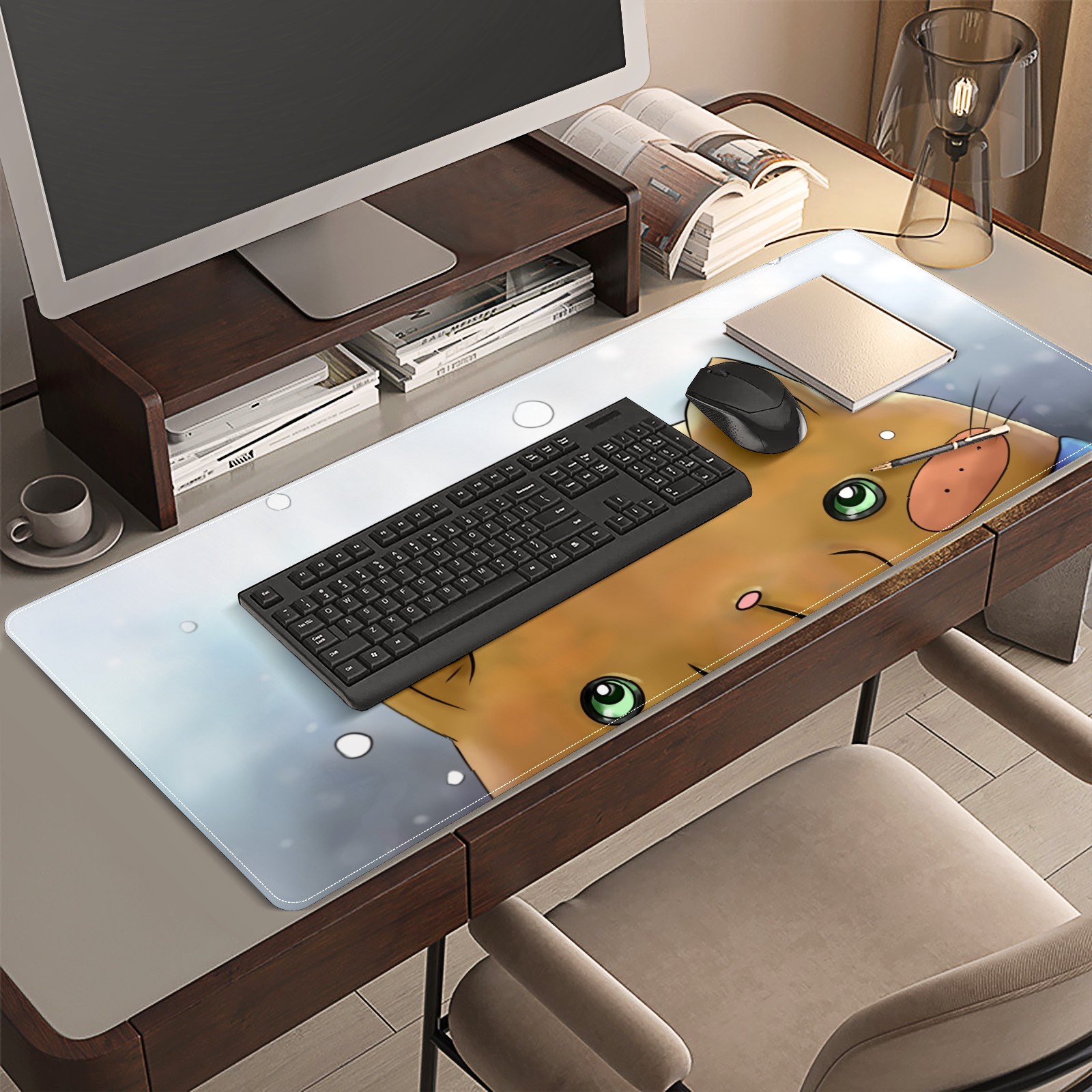 <p>This 35.4” × 15.7” extended desk mat offers ample space for your keyboard, mouse and essentials, working as a smooth work/writing pad while protecting your desktop from scratches.</p><p>With stylish artistic patterns, it adds personality to your home office, study or gaming setup. The high-density woven surface ensures precise, smooth mouse tracking for work and gaming.</p><p>Featuring an anti-slip natural rubber base for firm grip and stability, the mat is soft, elastic and odorless. Reinforced stitched edges prevent fraying and curling for long-lasting durability.</p>