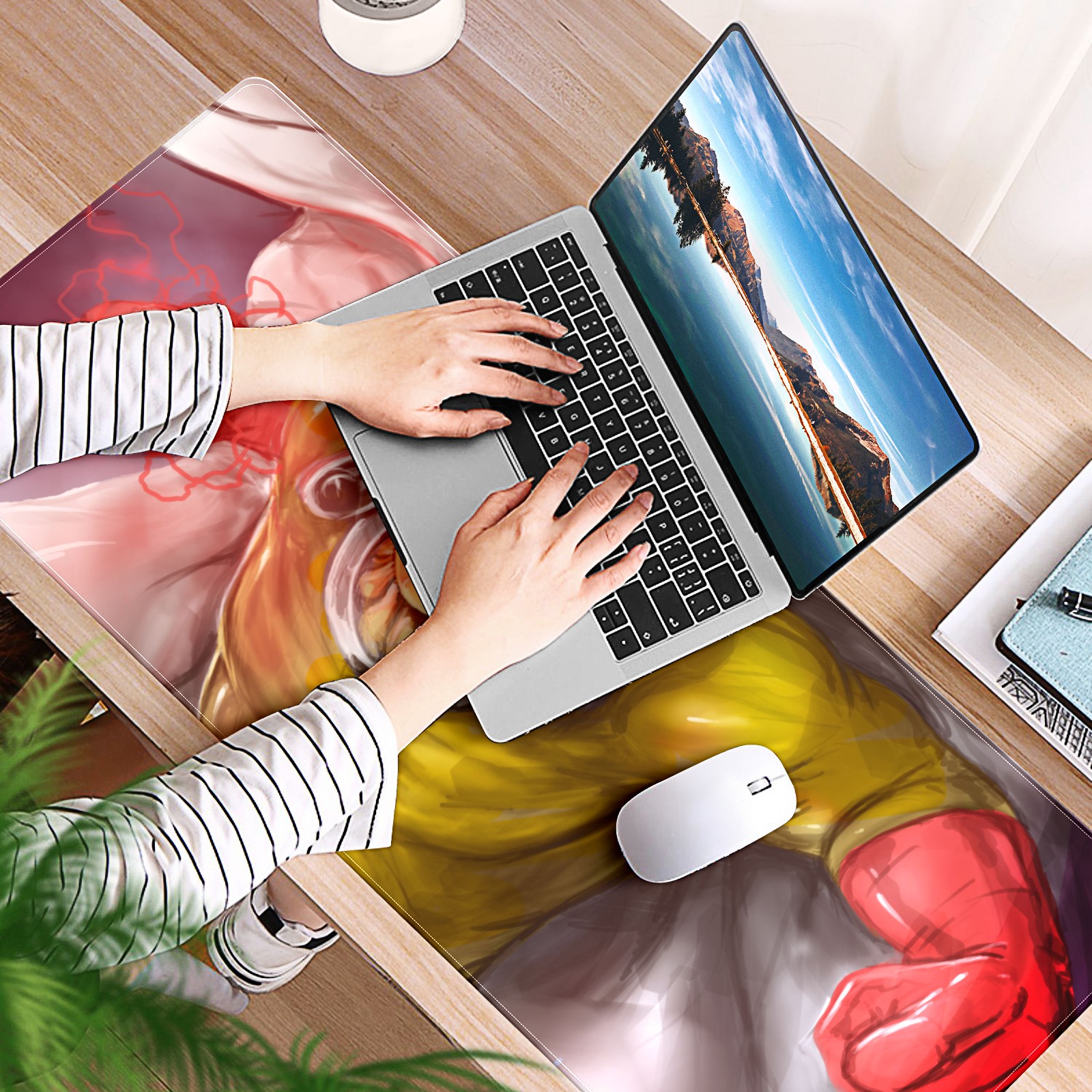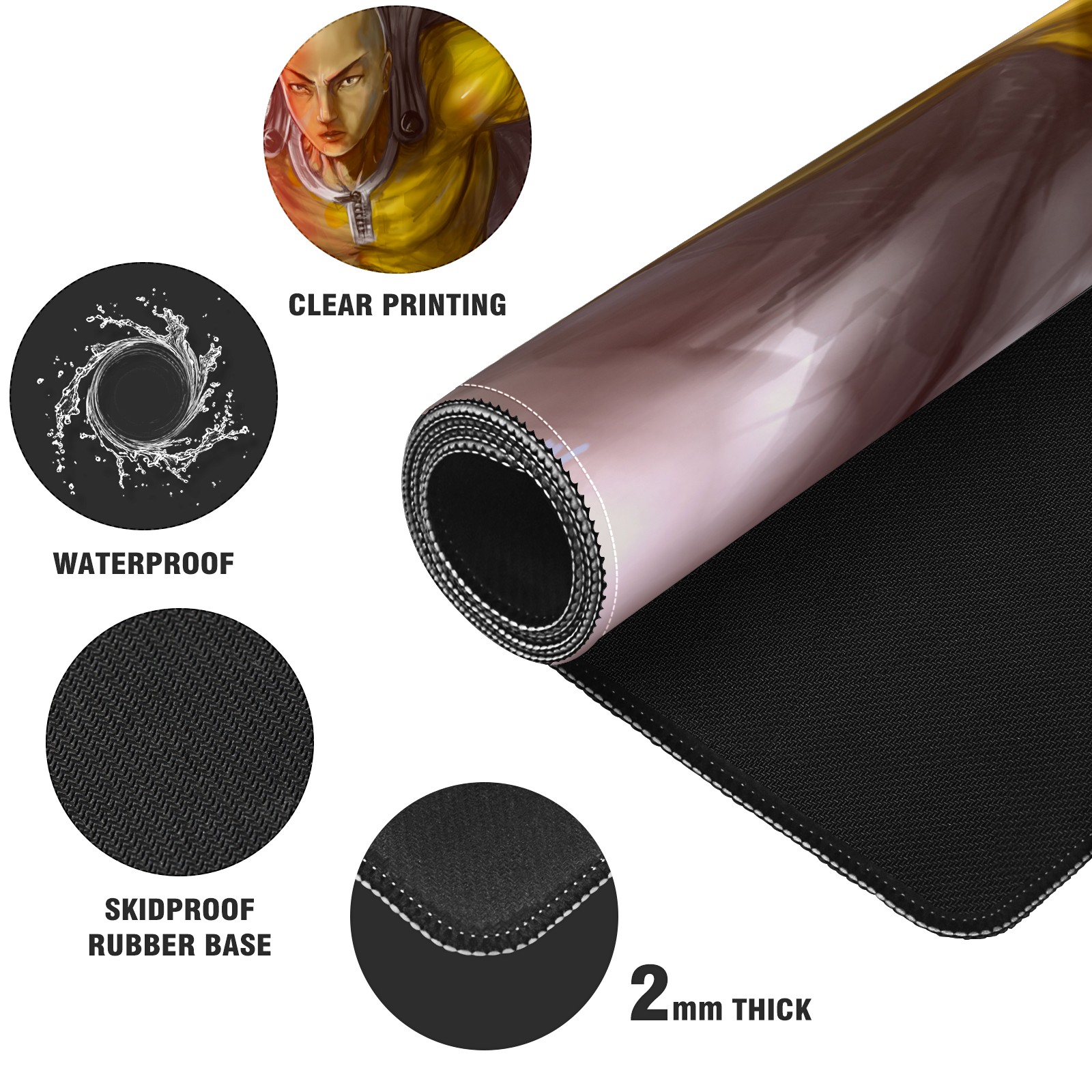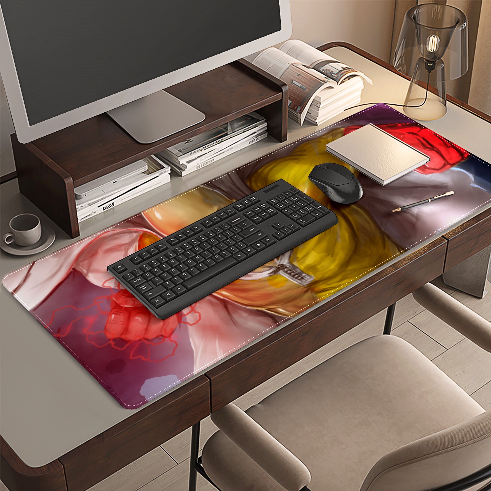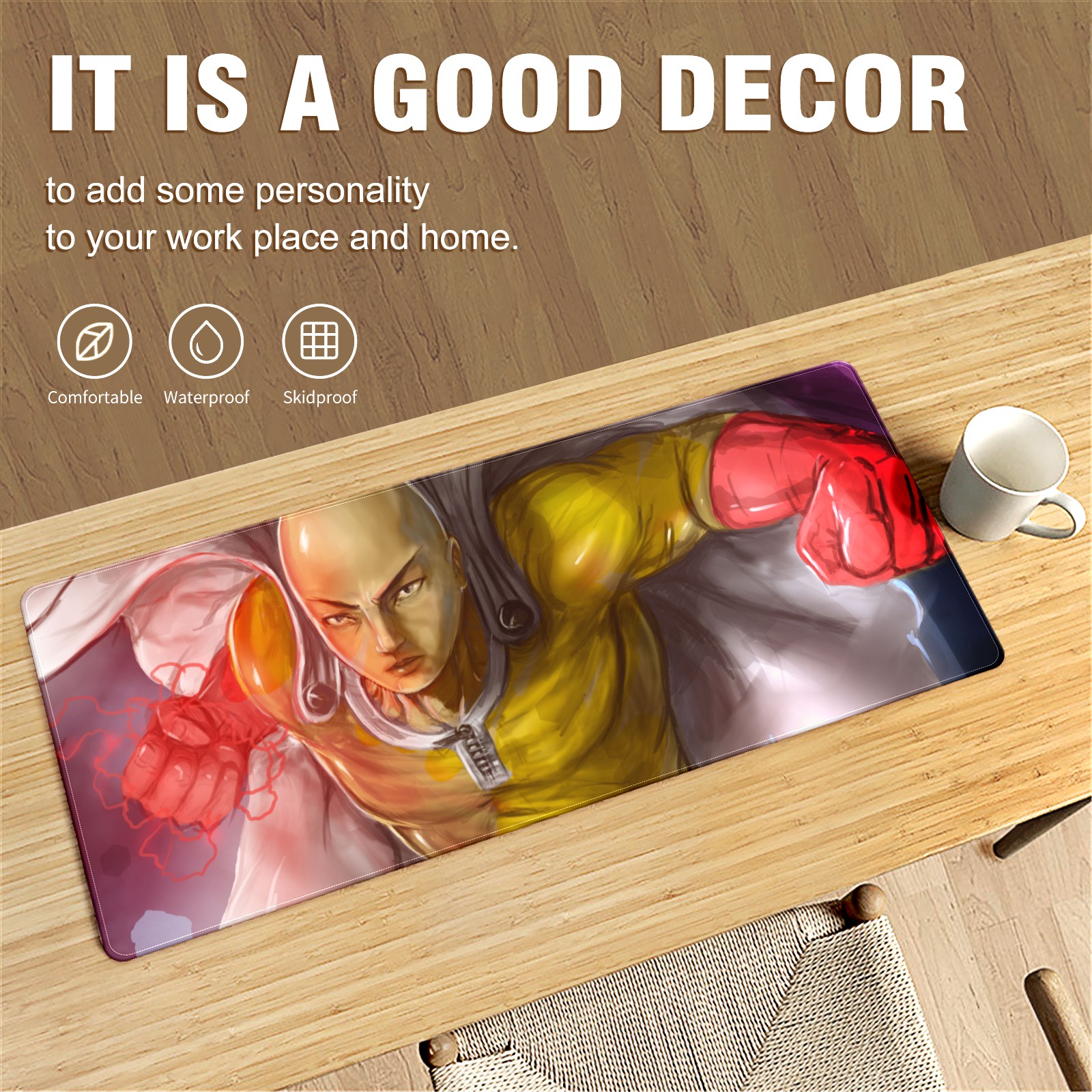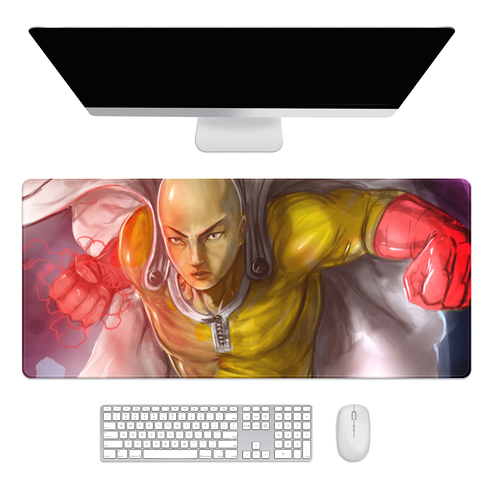 Large Mouse Pad for Desktop, Cute Desk Mat Pad Protector for Work & Gaming, Aesthetic Pretty Anti-Slip Laptop Blotter Cover for Office School Home Supplies, One Punch Man , 35.4inx15.7in