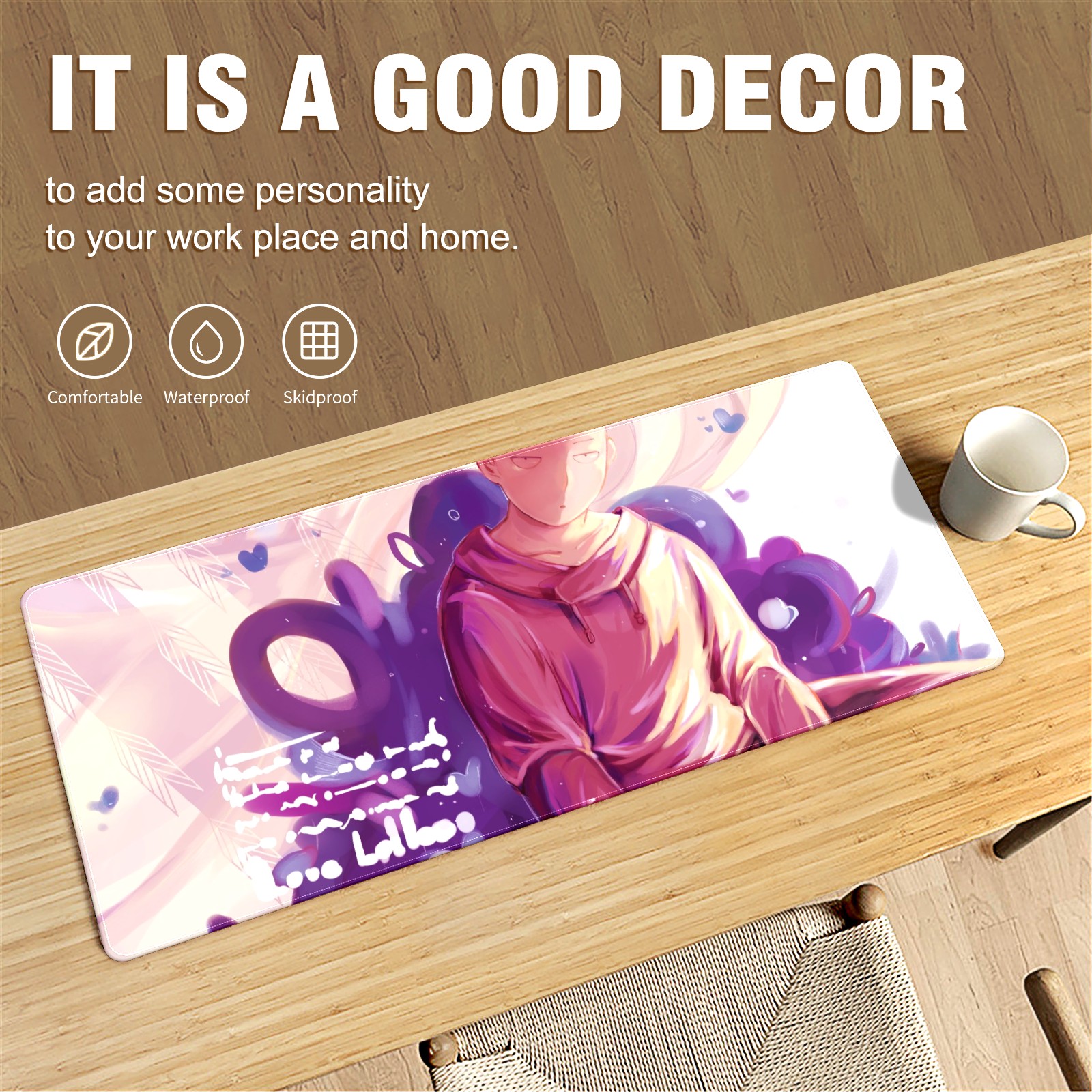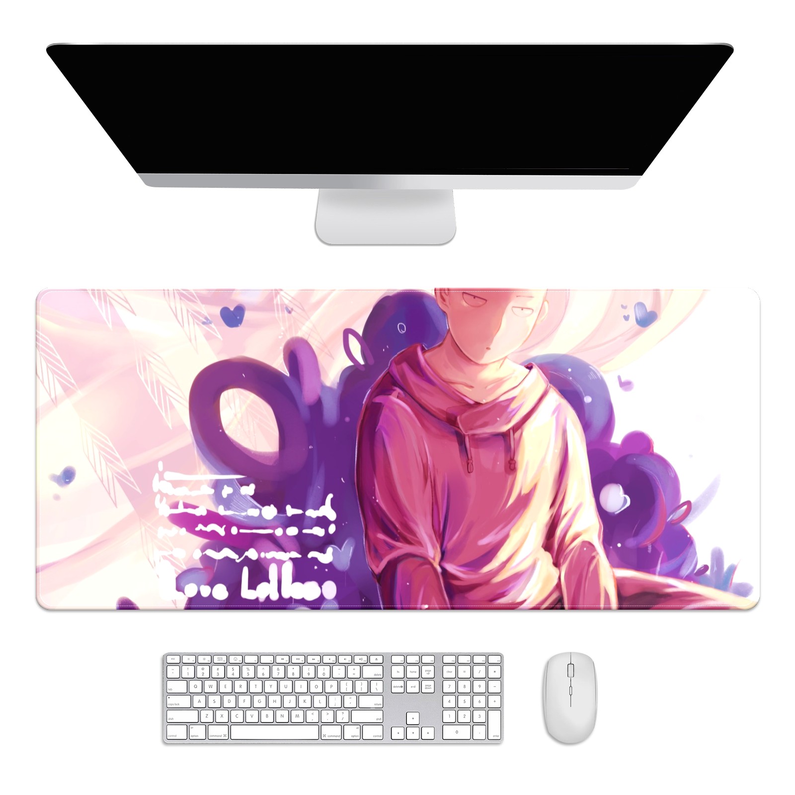 Large Mouse Pad for Desktop, Cute Desk Mat Pad Protector for Work & Gaming, Aesthetic Pretty Anti-Slip Laptop Blotter Cover for Office School Home Supplies, One Punch Man , 35.4inx15.7in