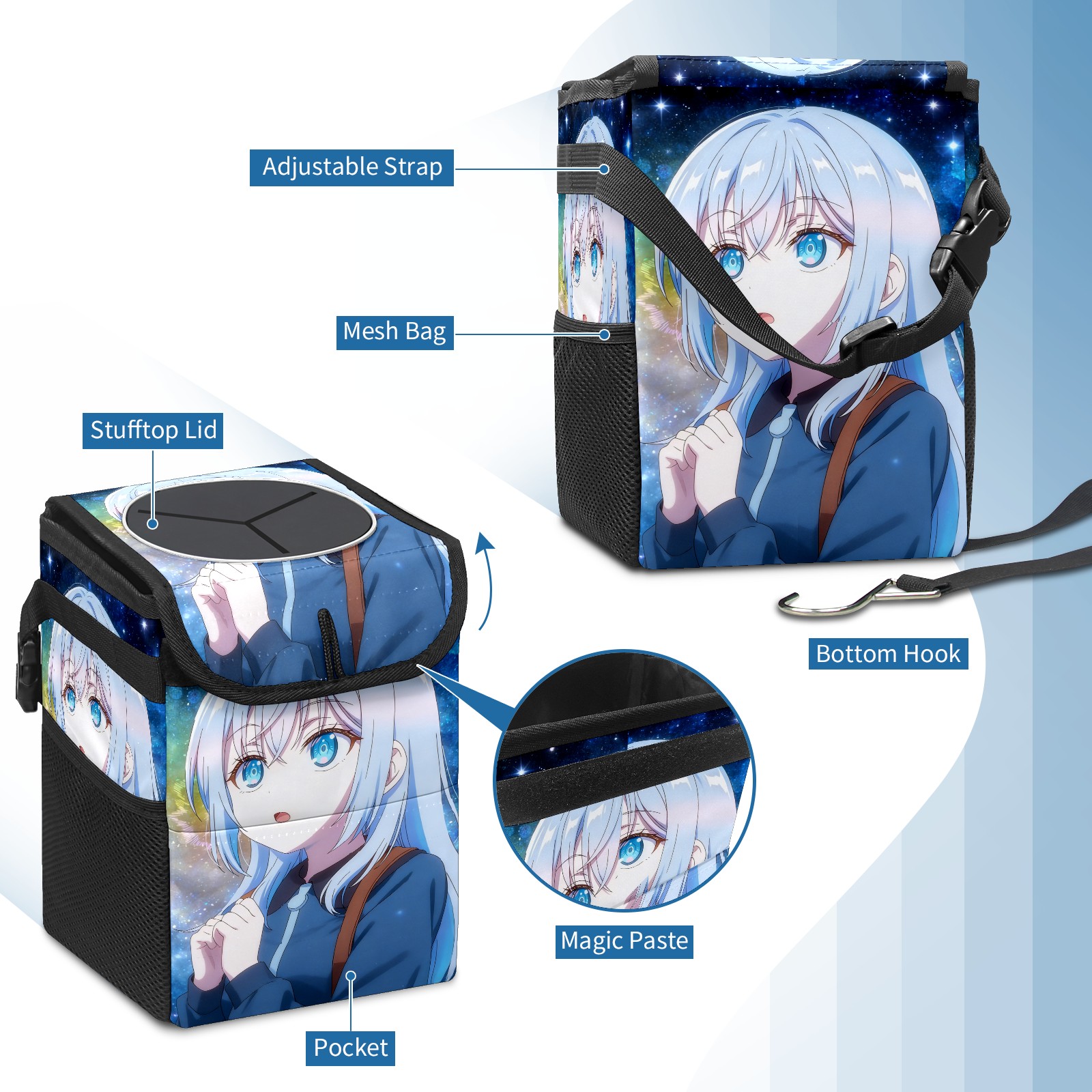 • Компактная мусорная корзина для автомобиля — это незаменимый аксессуар для поддержания порядка в салоне. Она легко монтируется на переднее или заднее сиденье, не занимает много места и позволяет удобно собирать мусор во время поездок.