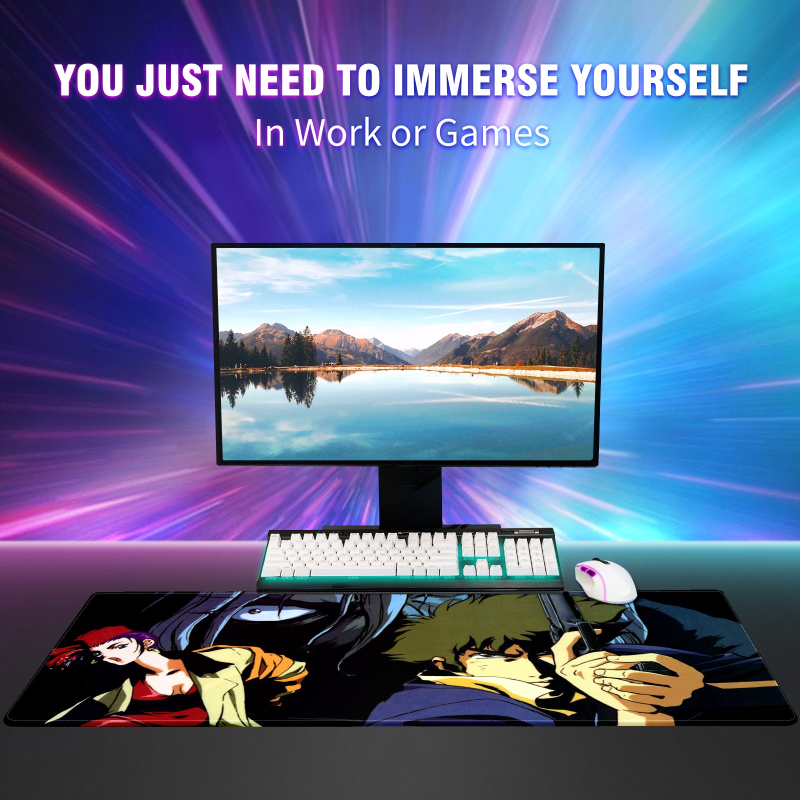 Large Mouse Pad for Desktop, Cute Desk Mat Pad Protector for Work & Gaming, Aesthetic Pretty Anti-Slip Laptop Blotter Cover for Office School Home Supplies, Cow-boy Be-bop , 35.4inx15.7in