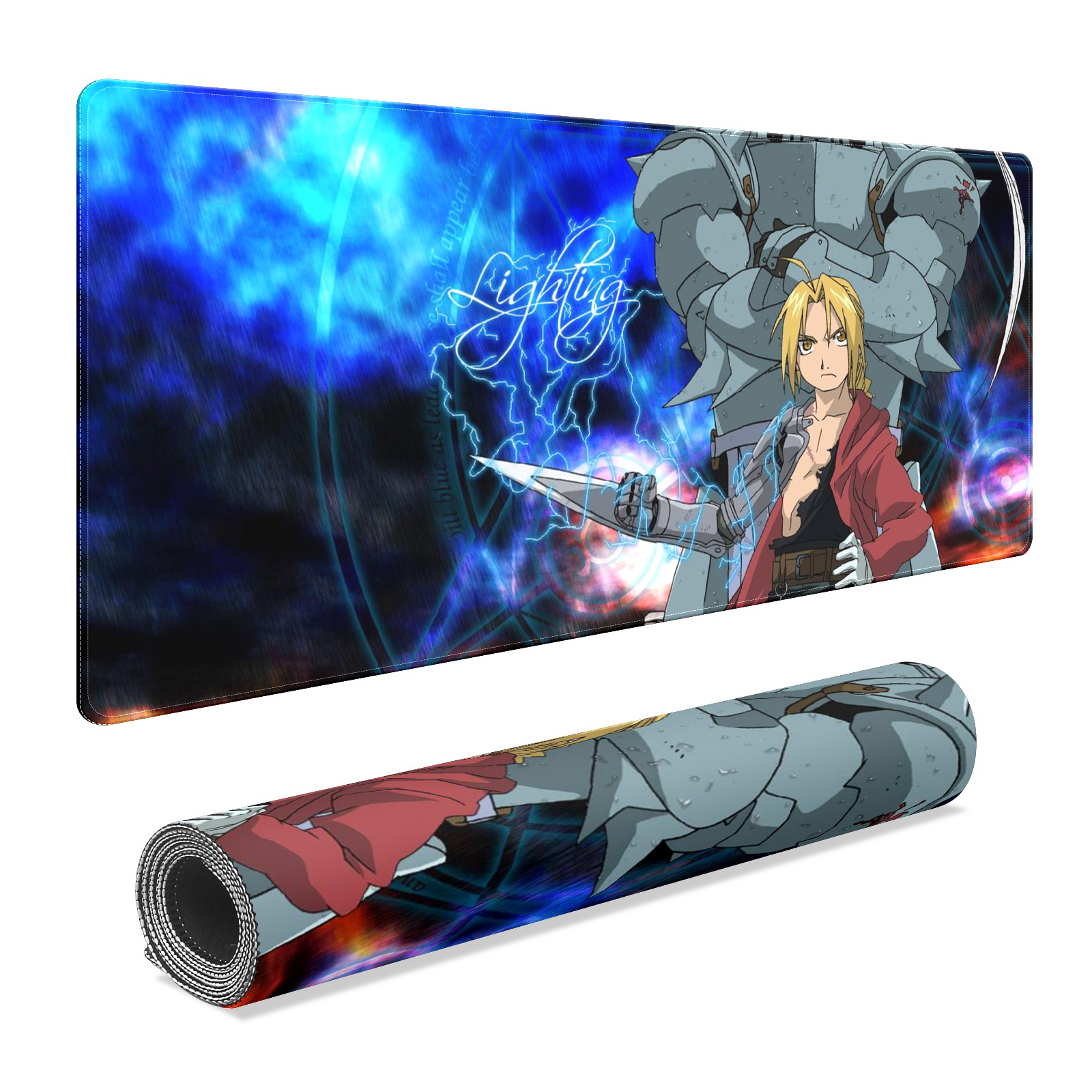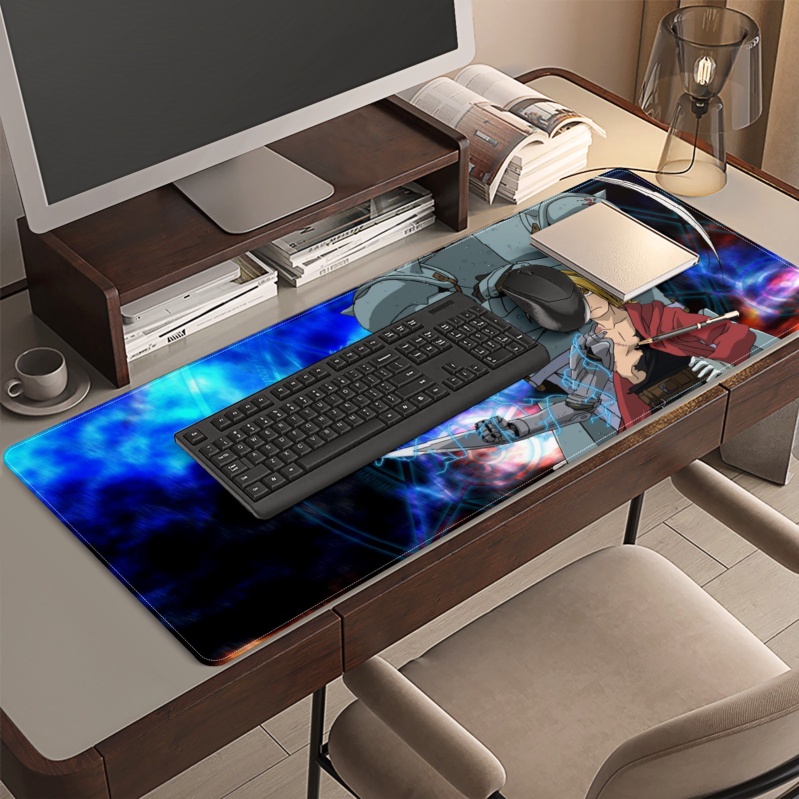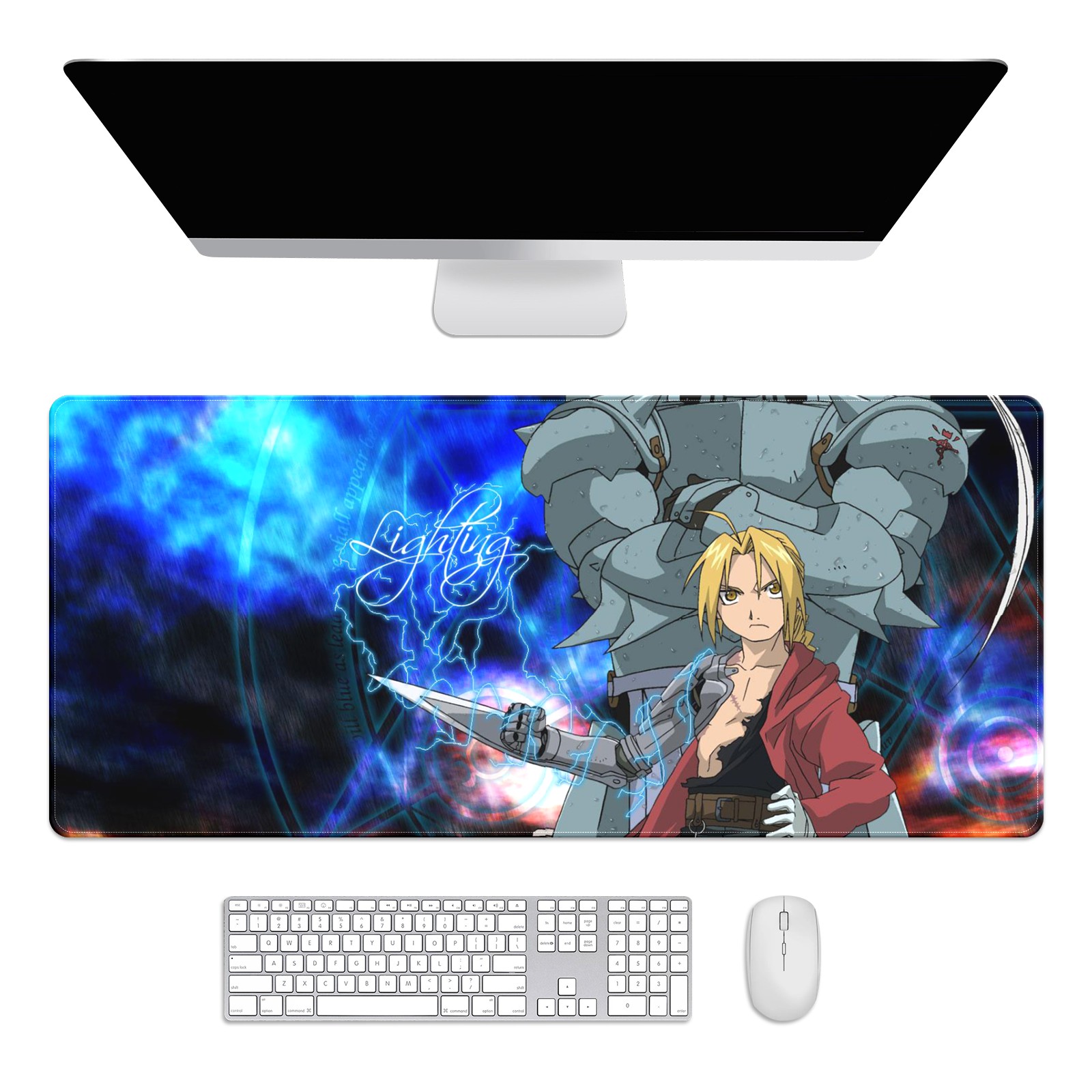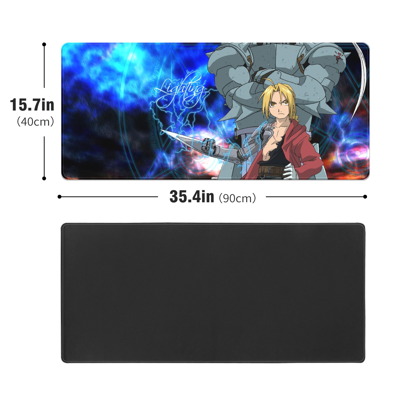 Large Mouse Pad for Desktop, Cute Desk Mat Pad Protector for Work & Gaming, Aesthetic Pretty Anti-Slip Laptop Blotter Cover for Office School Home Supplies, Full-metal Alchem-ist , 35.4inx15.7in