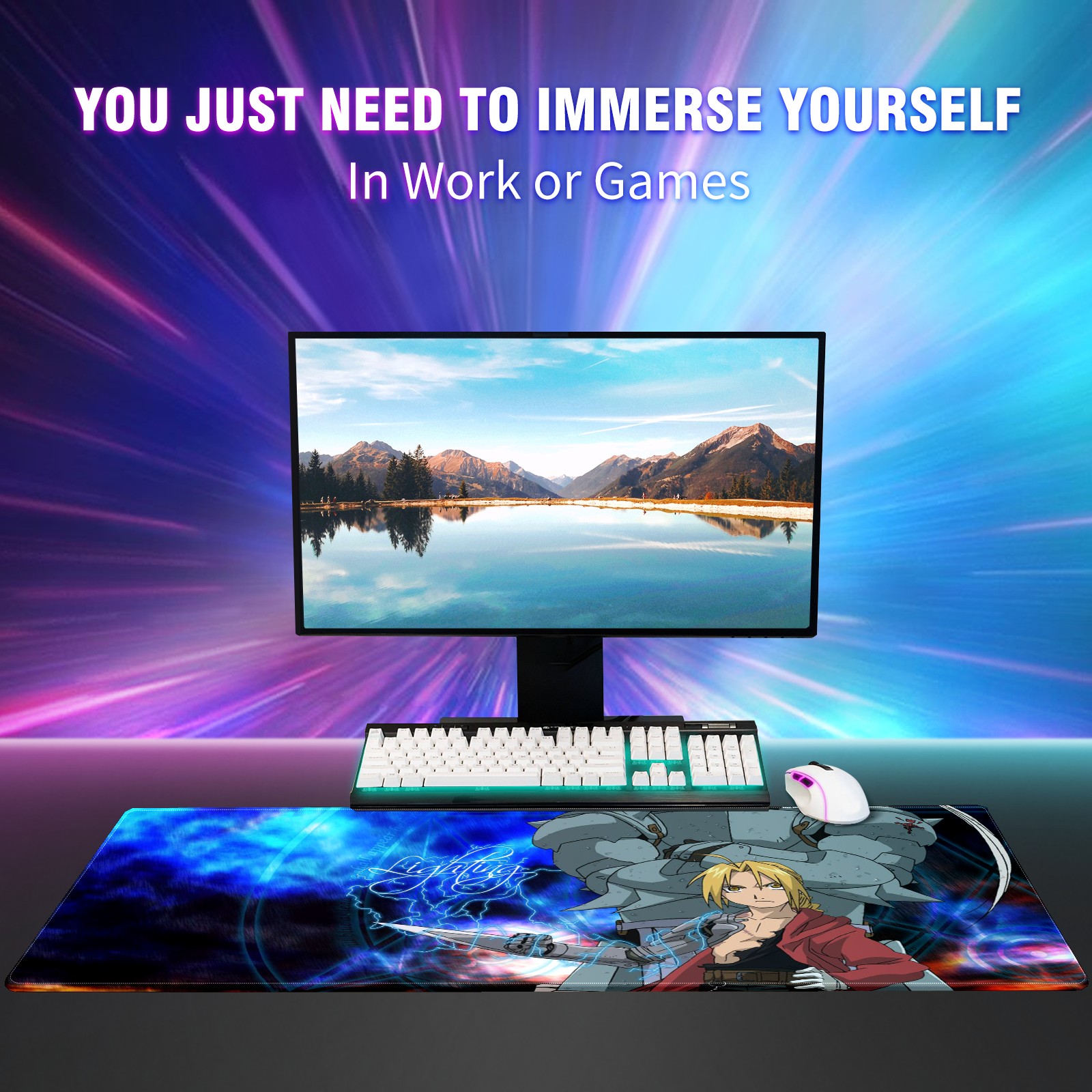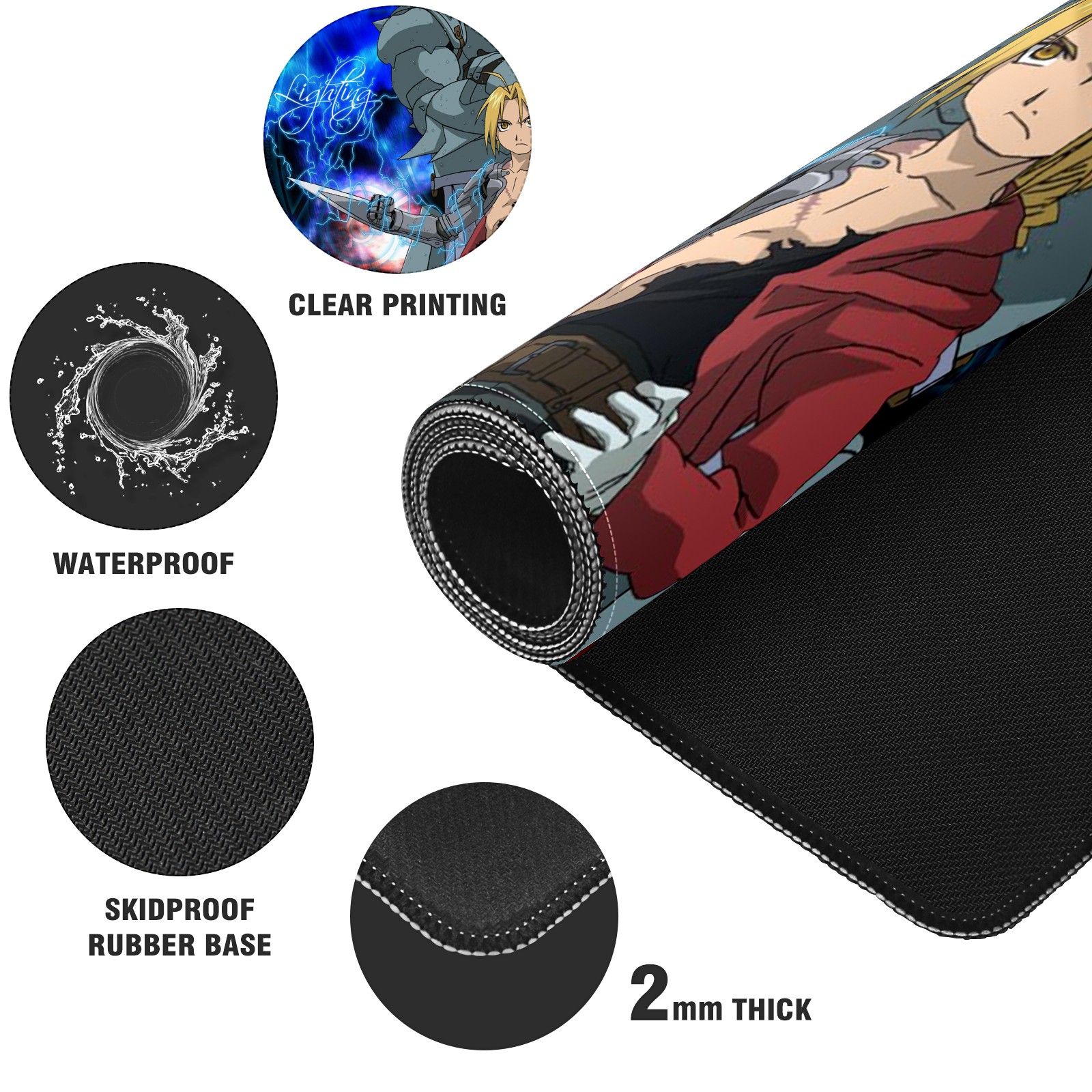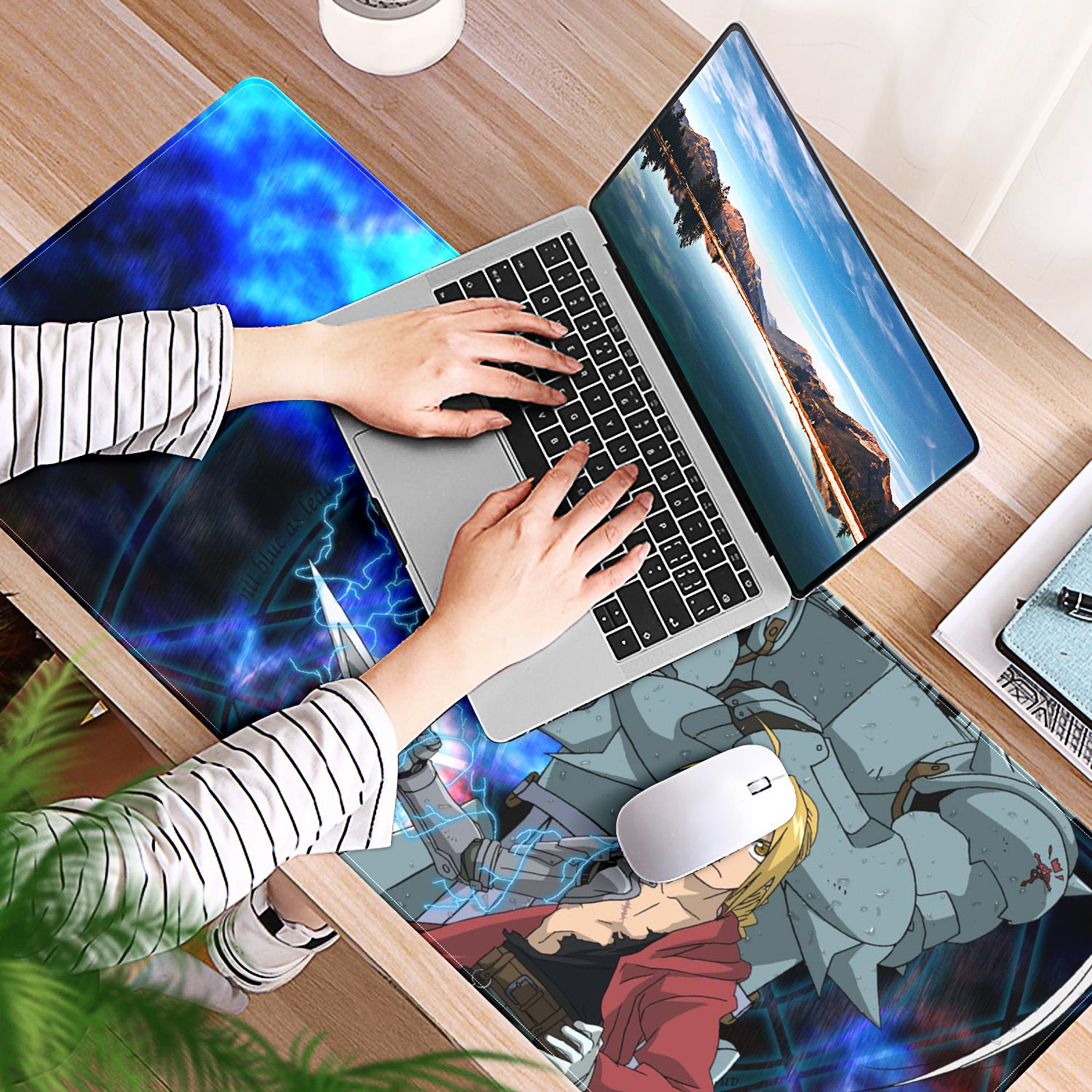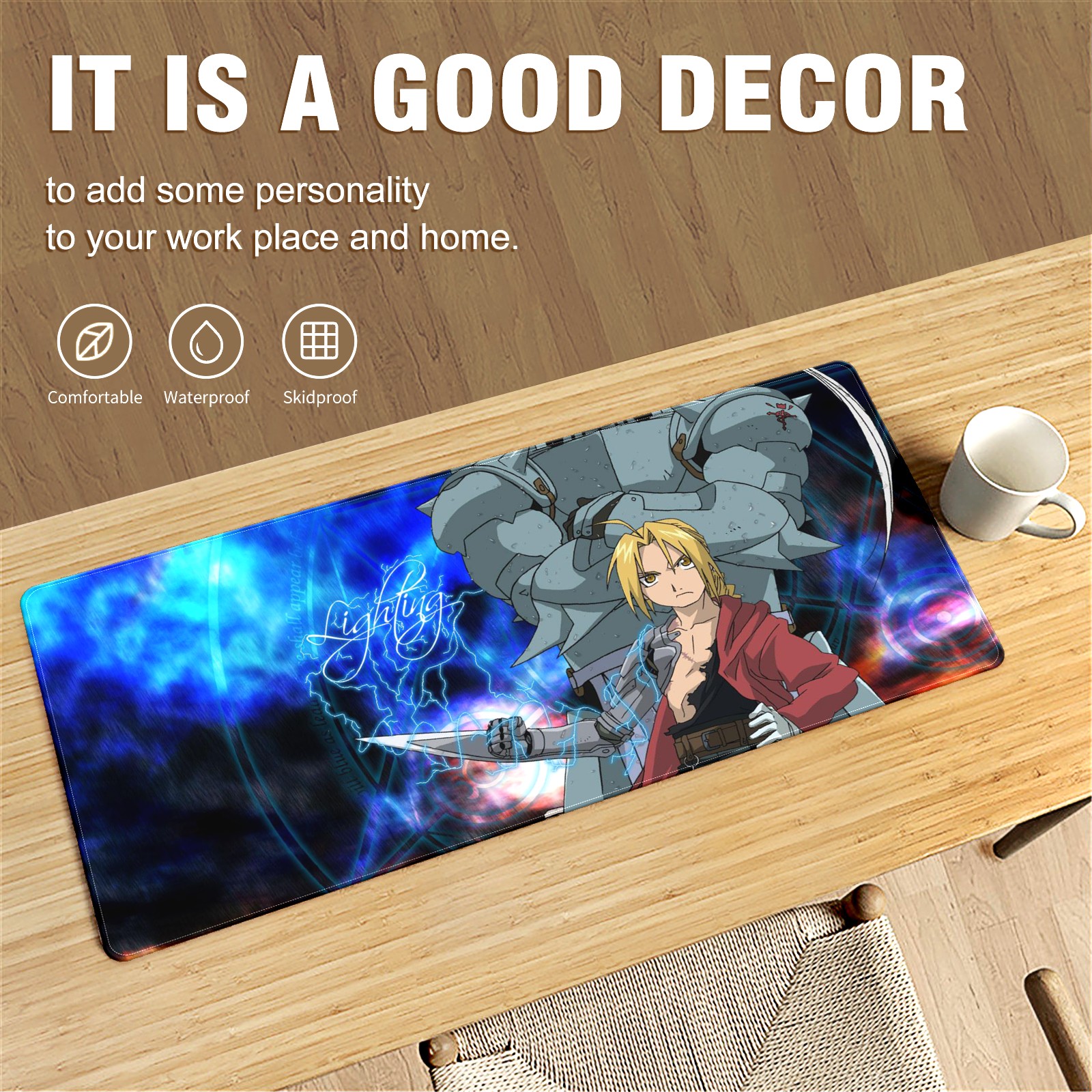 Large Mouse Pad for Desktop, Cute Desk Mat Pad Protector for Work & Gaming, Aesthetic Pretty Anti-Slip Laptop Blotter Cover for Office School Home Supplies, Full-metal Alchem-ist , 35.4inx15.7in