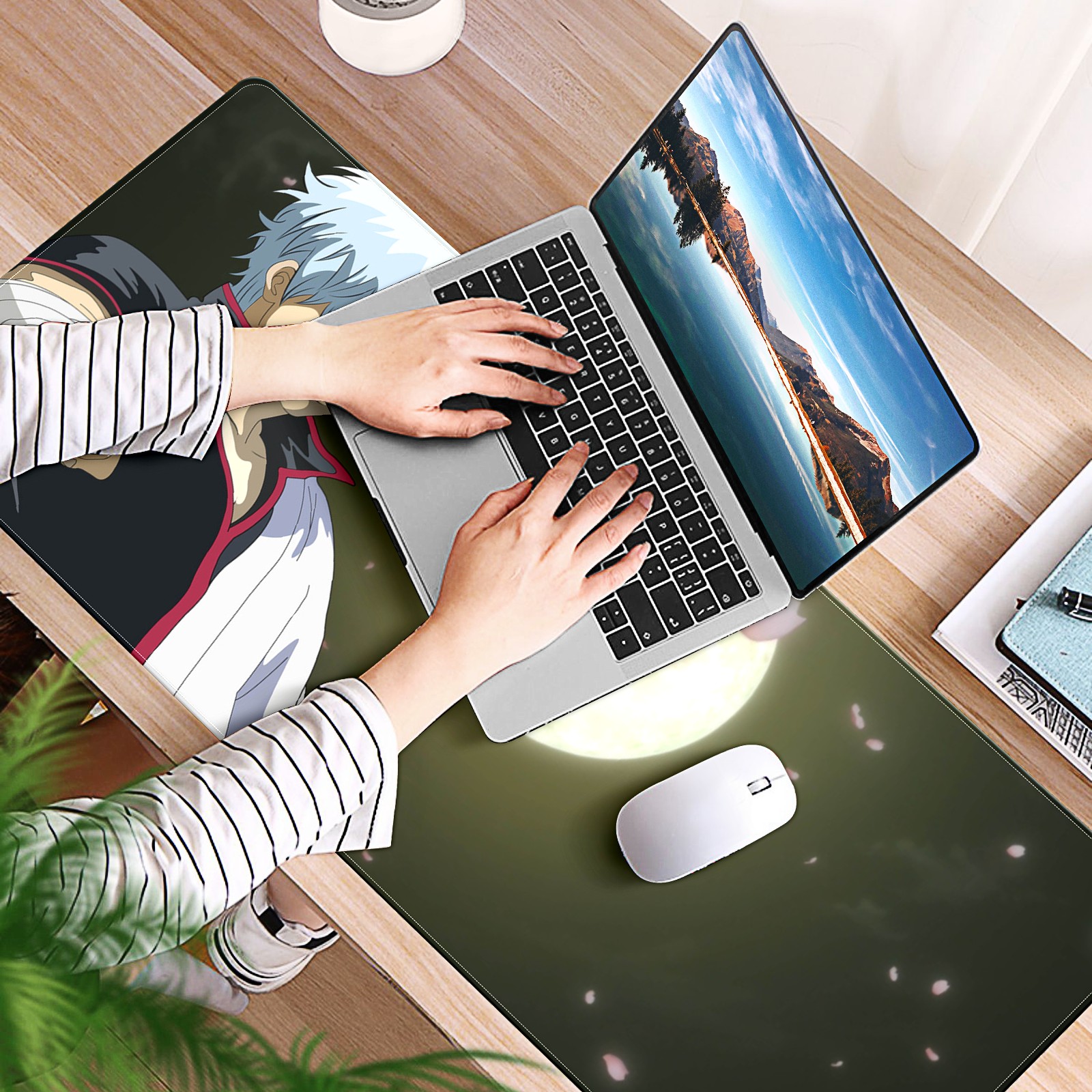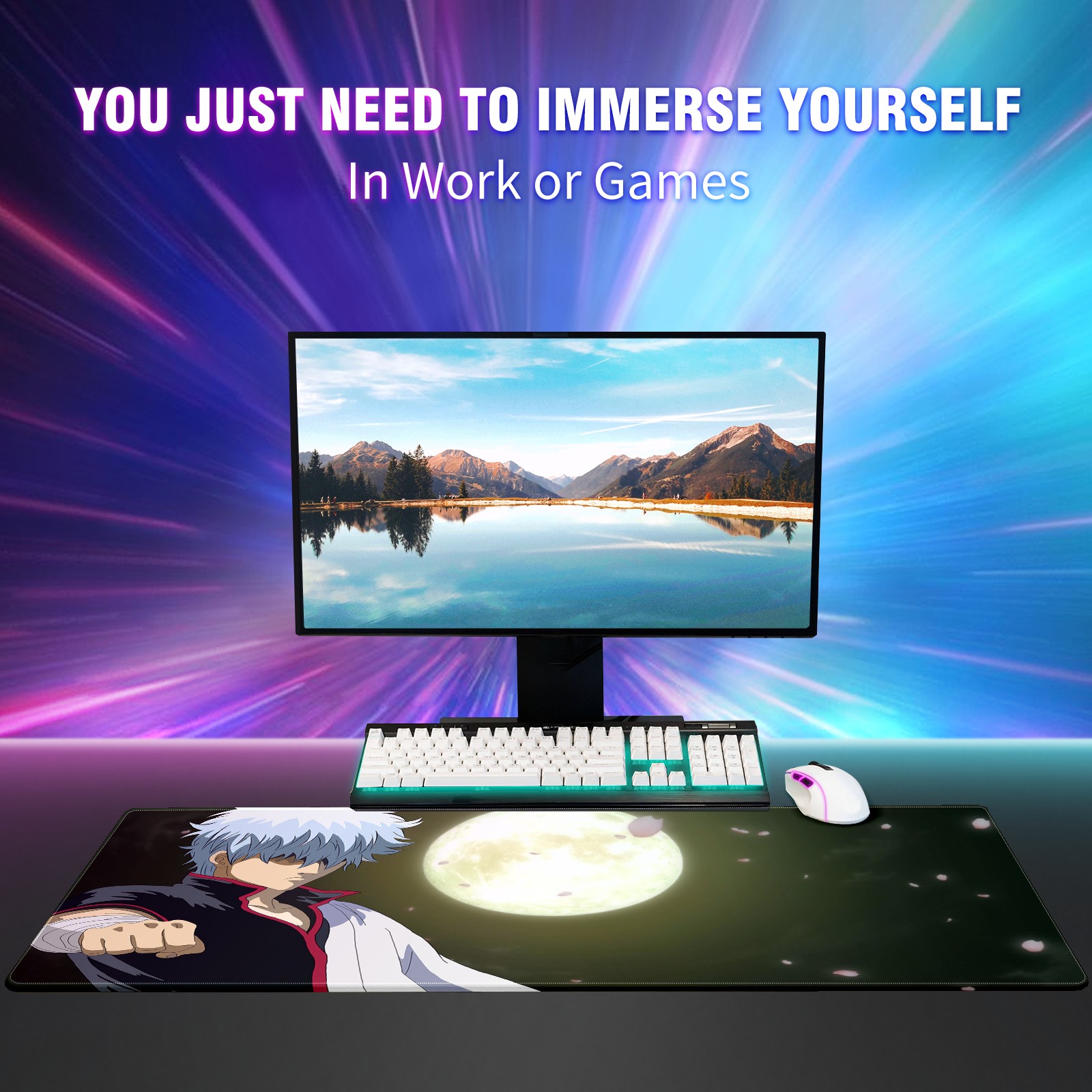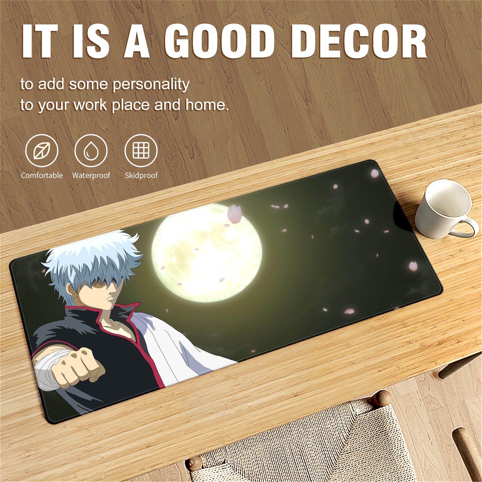 Large Mouse Pad for Desktop, Cute Desk Mat Pad Protector for Work & Gaming, Aesthetic Pretty Anti-Slip Laptop Blotter Cover for Office School Home Supplies, Gin-tama , 35.4inx15.7in