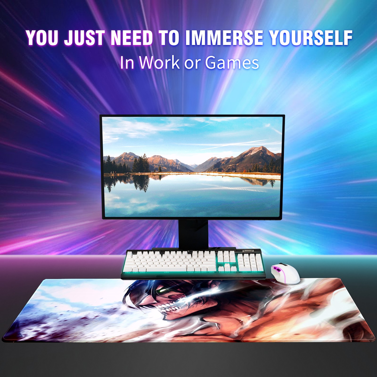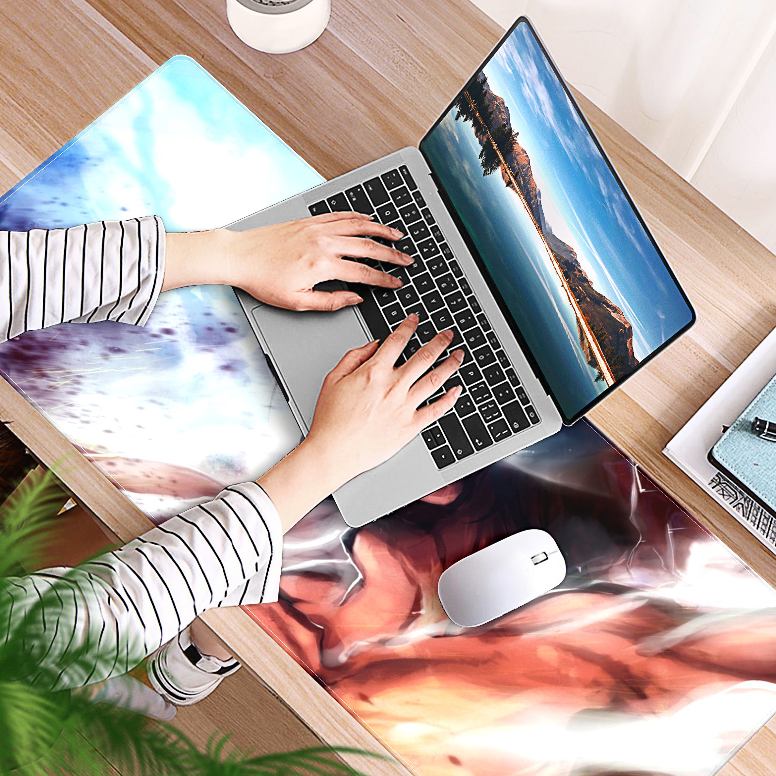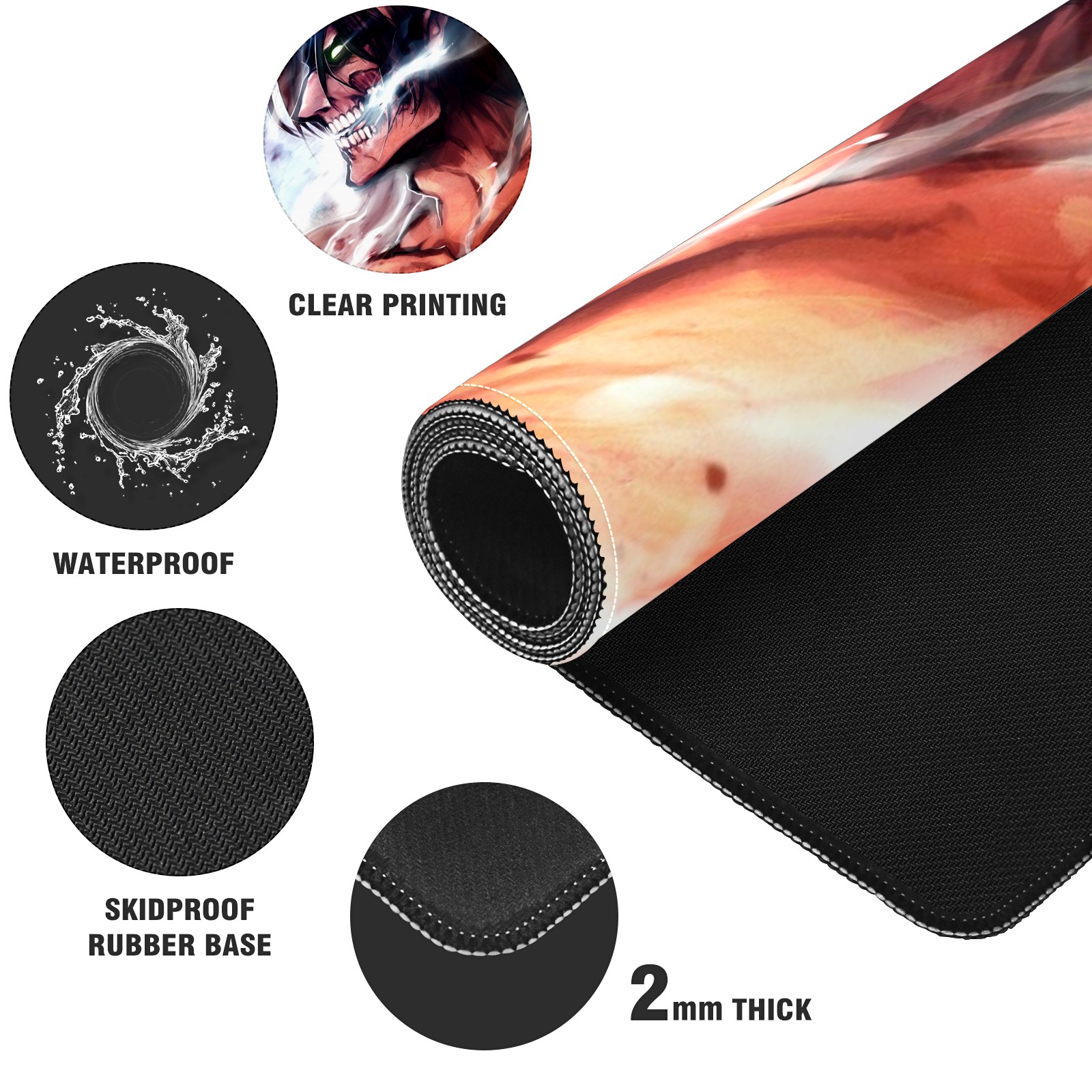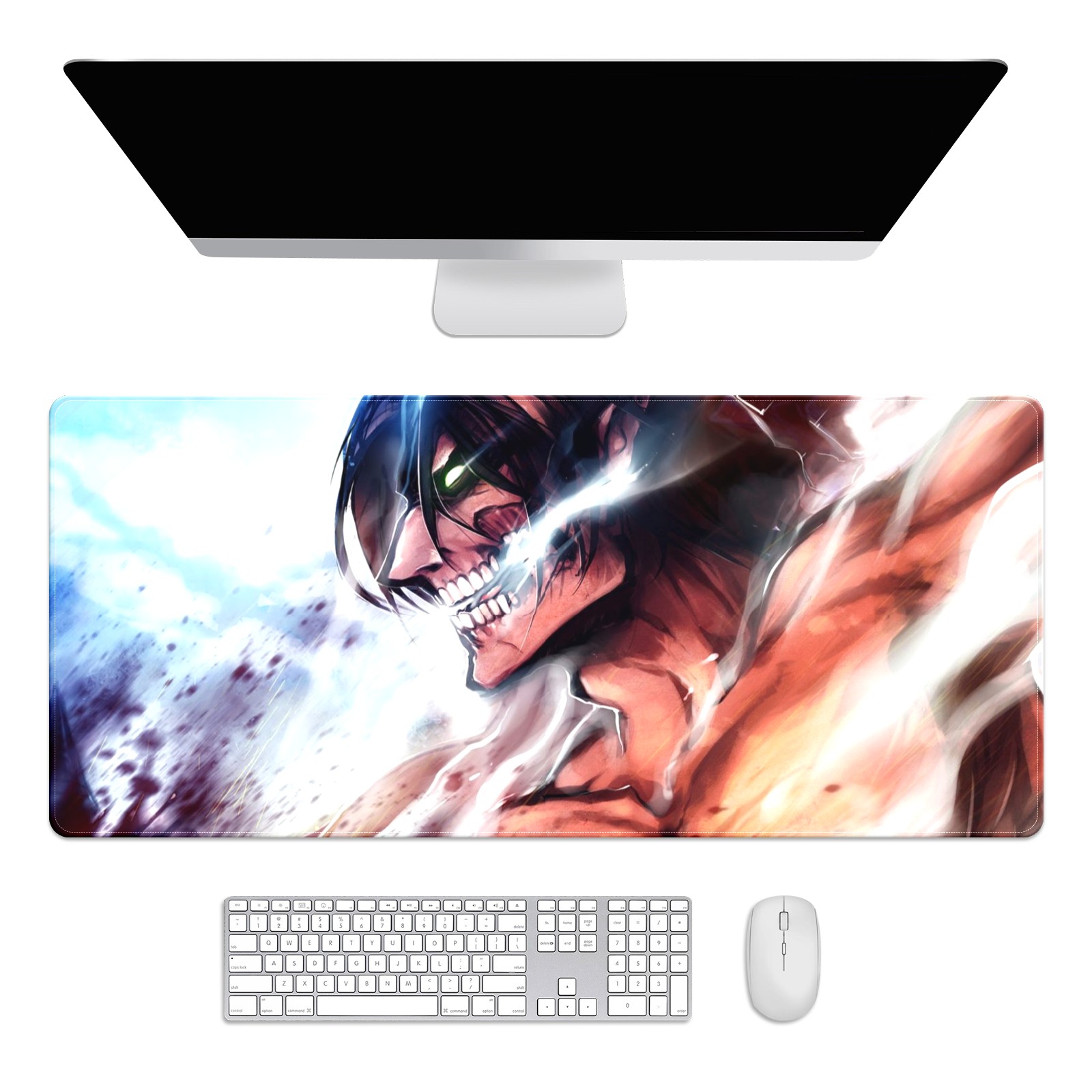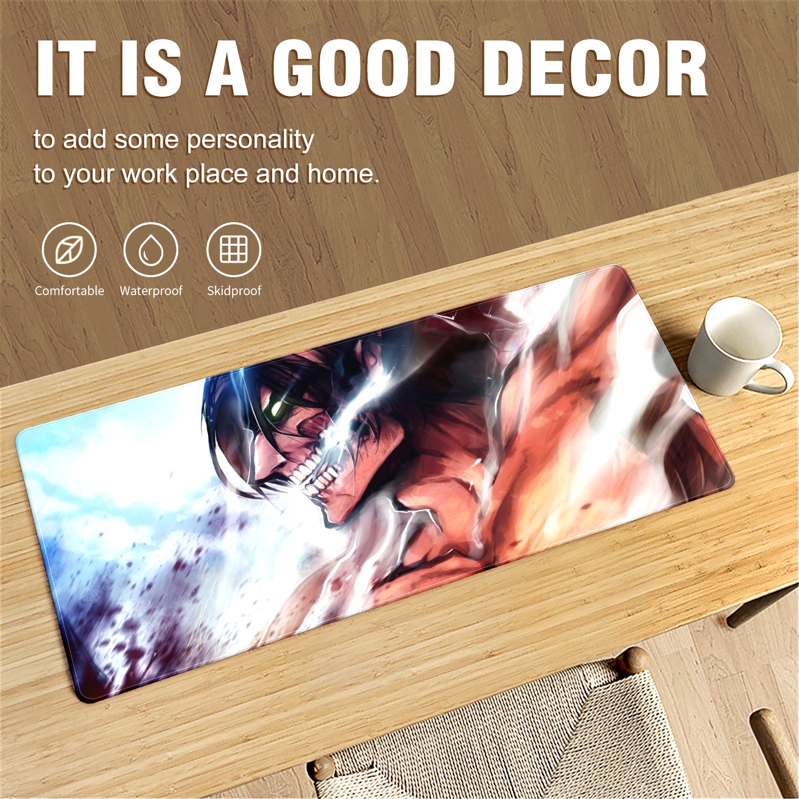 Large Mouse Pad for Desktop, Cute Desk Mat Pad Protector for Work & Gaming, Aesthetic Pretty Anti-Slip Laptop Blotter Cover for Office School Home Supplies, Attack On Titan (9) , 35.4inx15.7in