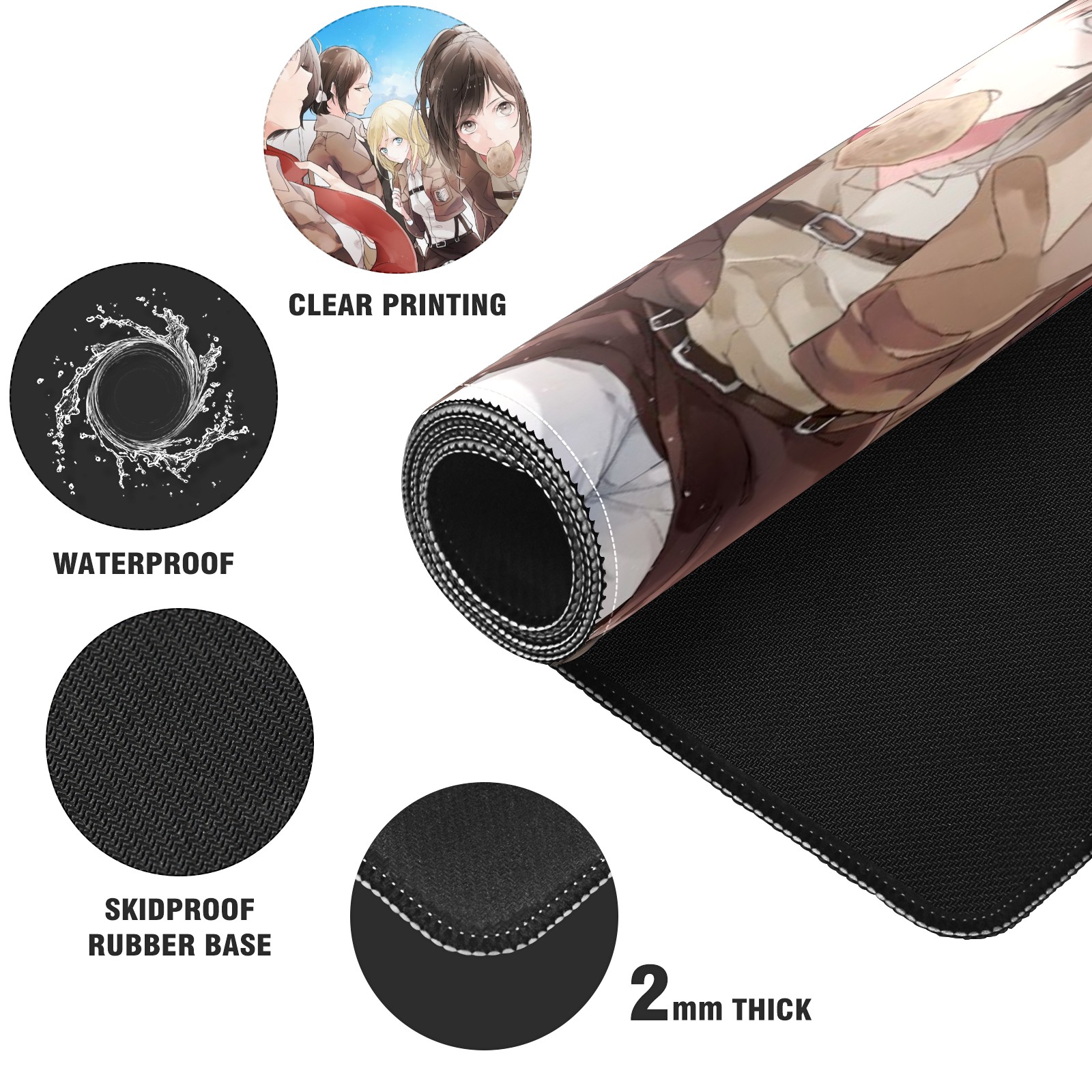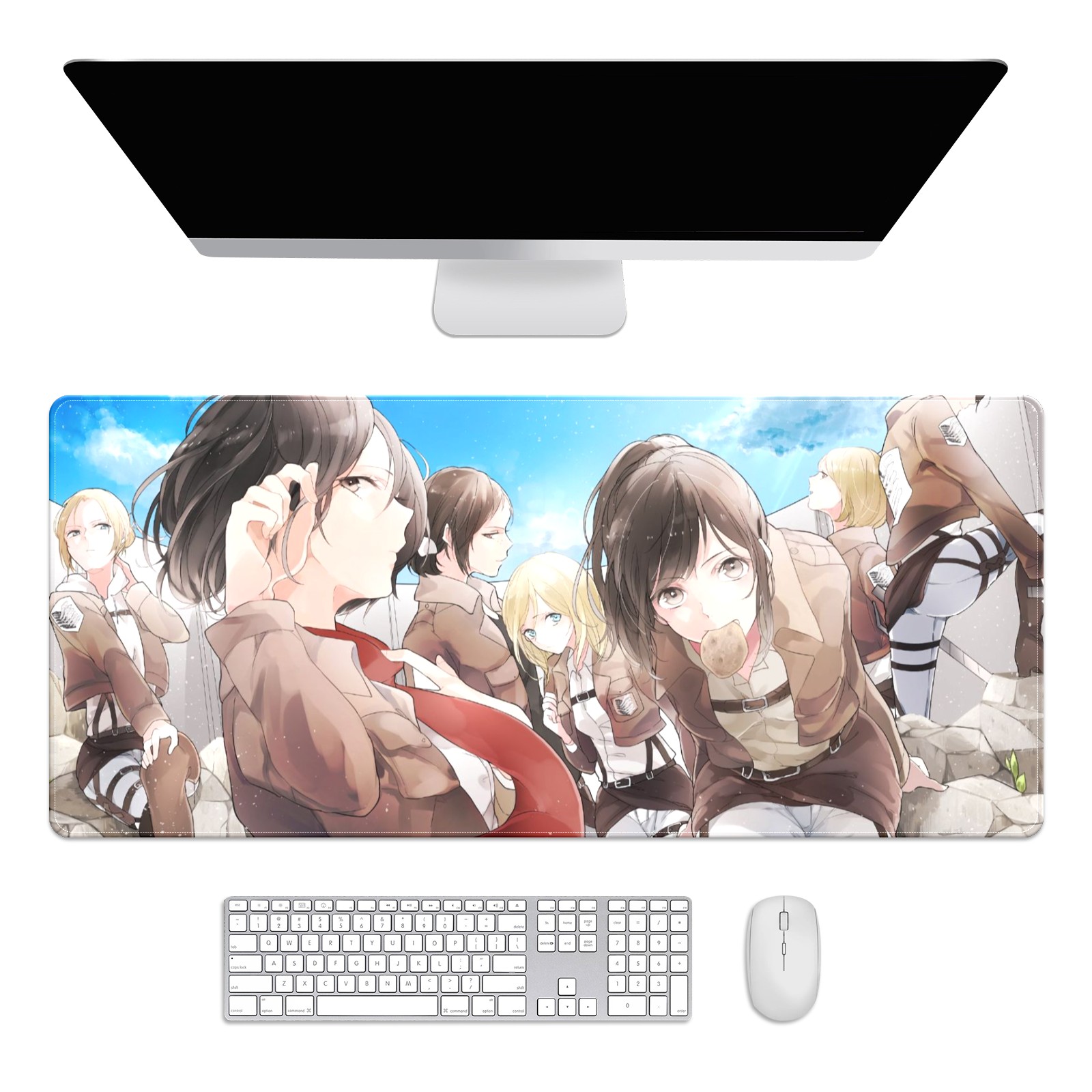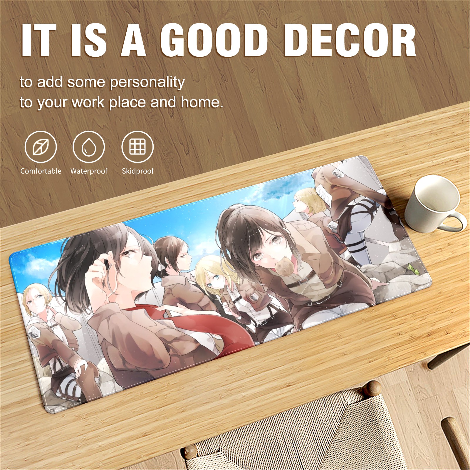 Large Mouse Pad for Desktop, Cute Desk Mat Pad Protector for Work & Gaming, Aesthetic Pretty Anti-Slip Laptop Blotter Cover for Office School Home Supplies, Attack On Titan (6) , 35.4inx15.7in